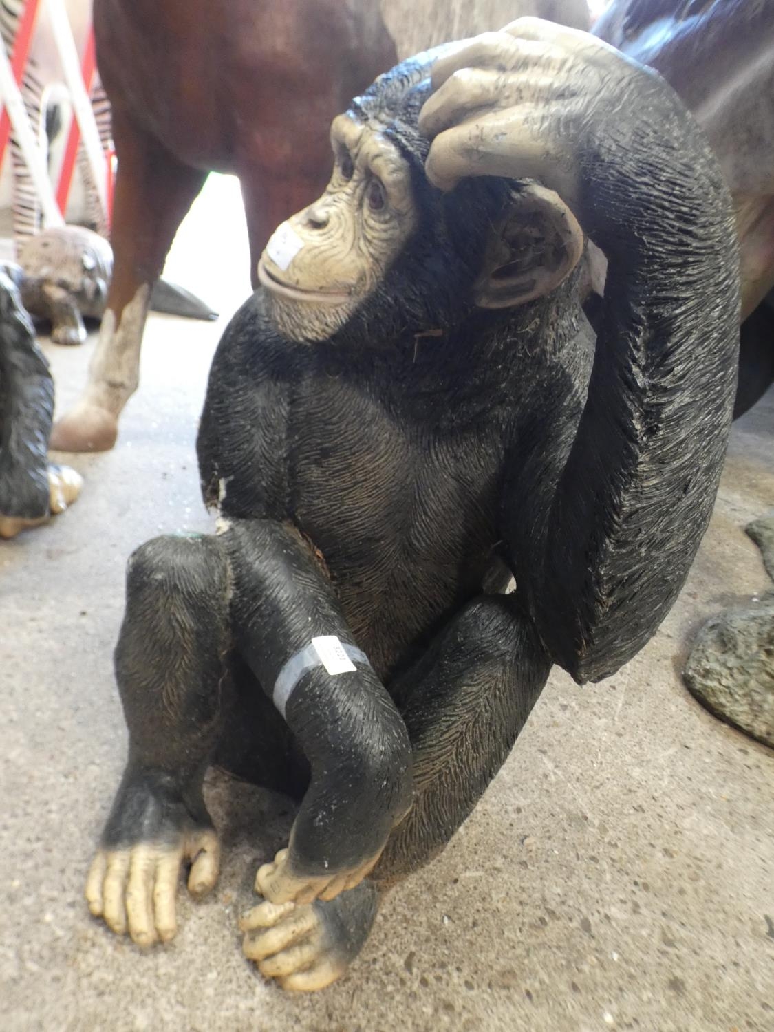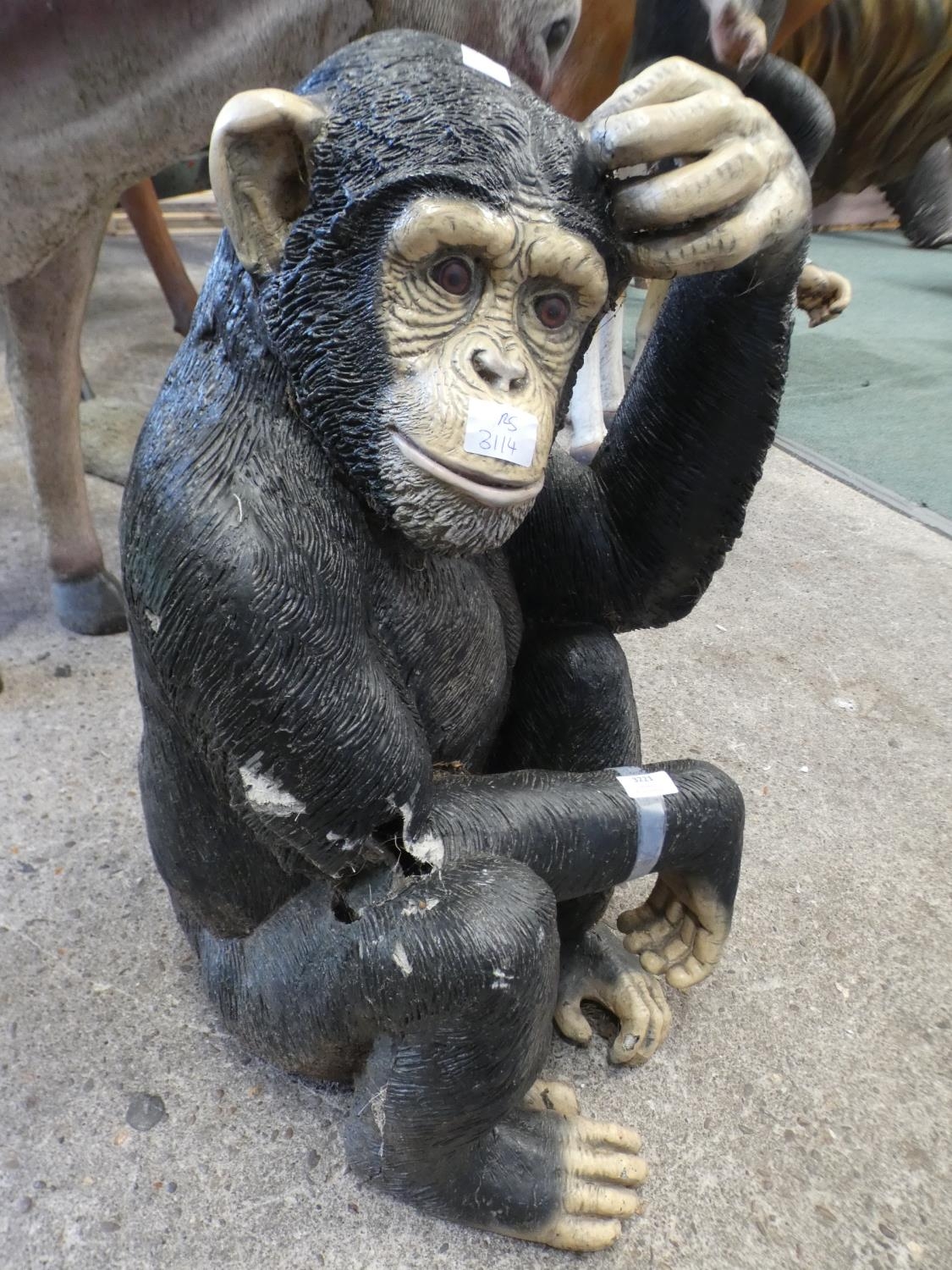 A fibreglass chimp (approx. 2' 4" tall) - (wear marks/damaged arm)