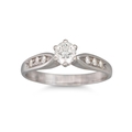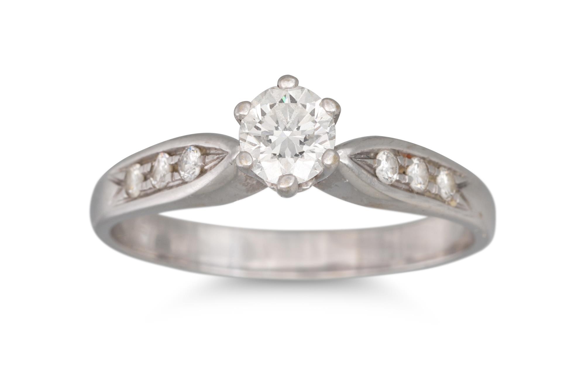 A DIAMOND SOLITAIRE RING, the brilliant cut diamond to diamond shoulders, mounted in18ct white gold. Estimated: weight of diamond: 0.40 ct. colour and clarity: H/I, VS, size O – P