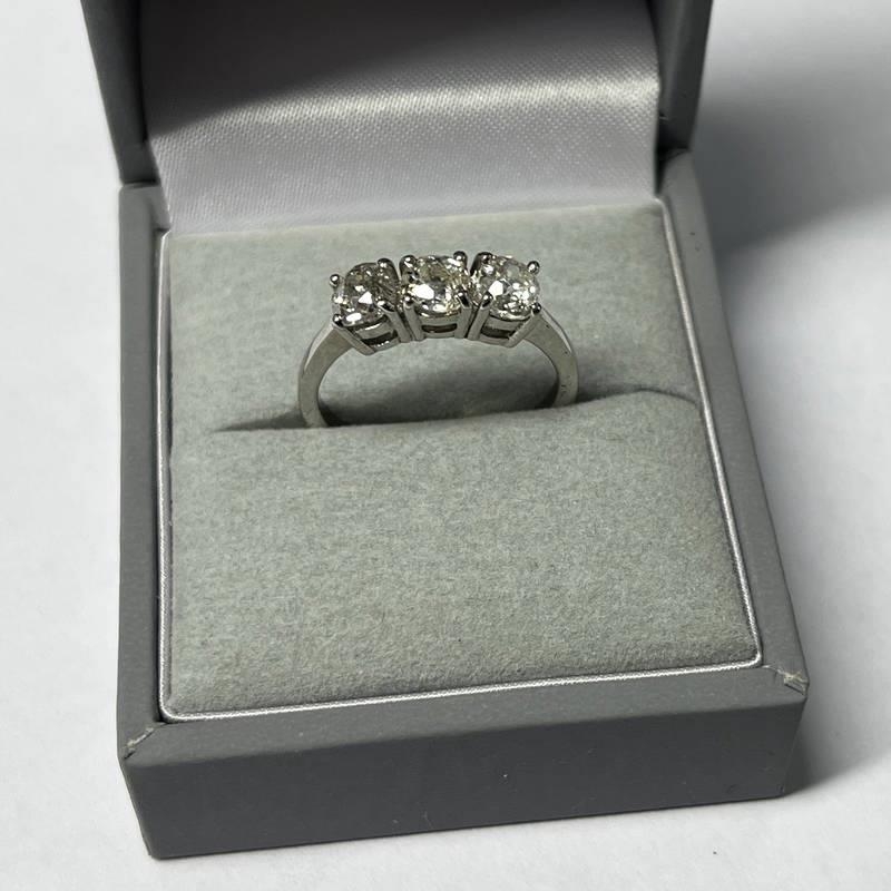 18CT GOLD 3-STONE DIAMOND SET RING, THE BRILLIANT CUT DIAMONDS APPROX 1.05 CARATS IN TOTAL - RING SIZE M