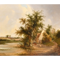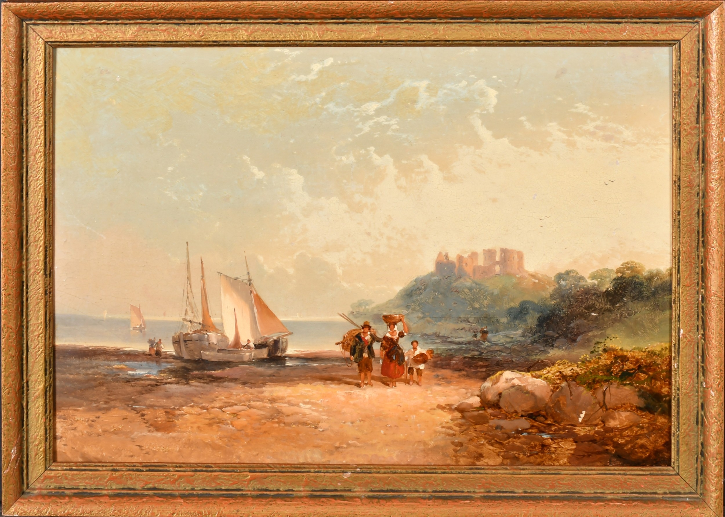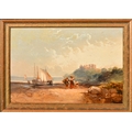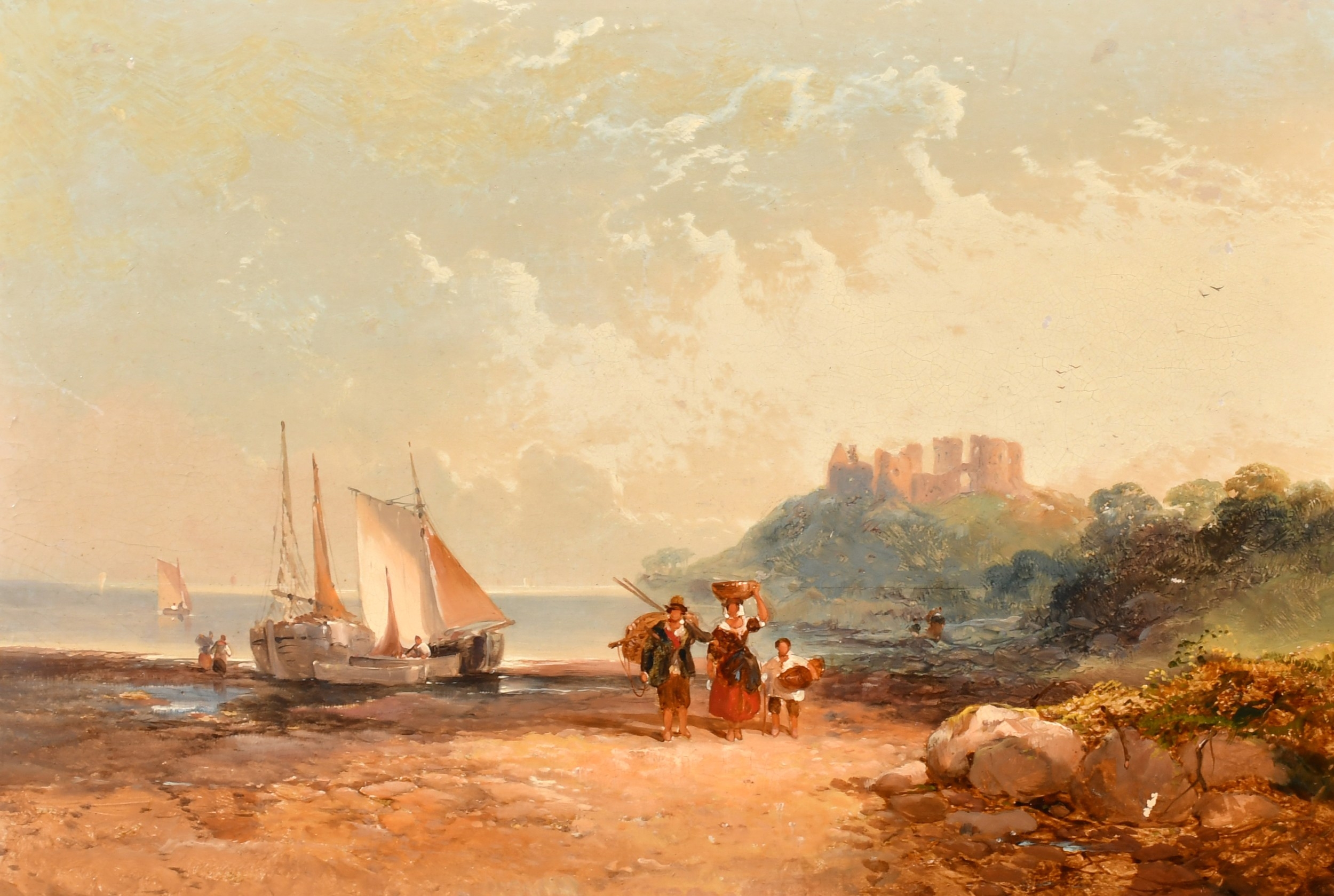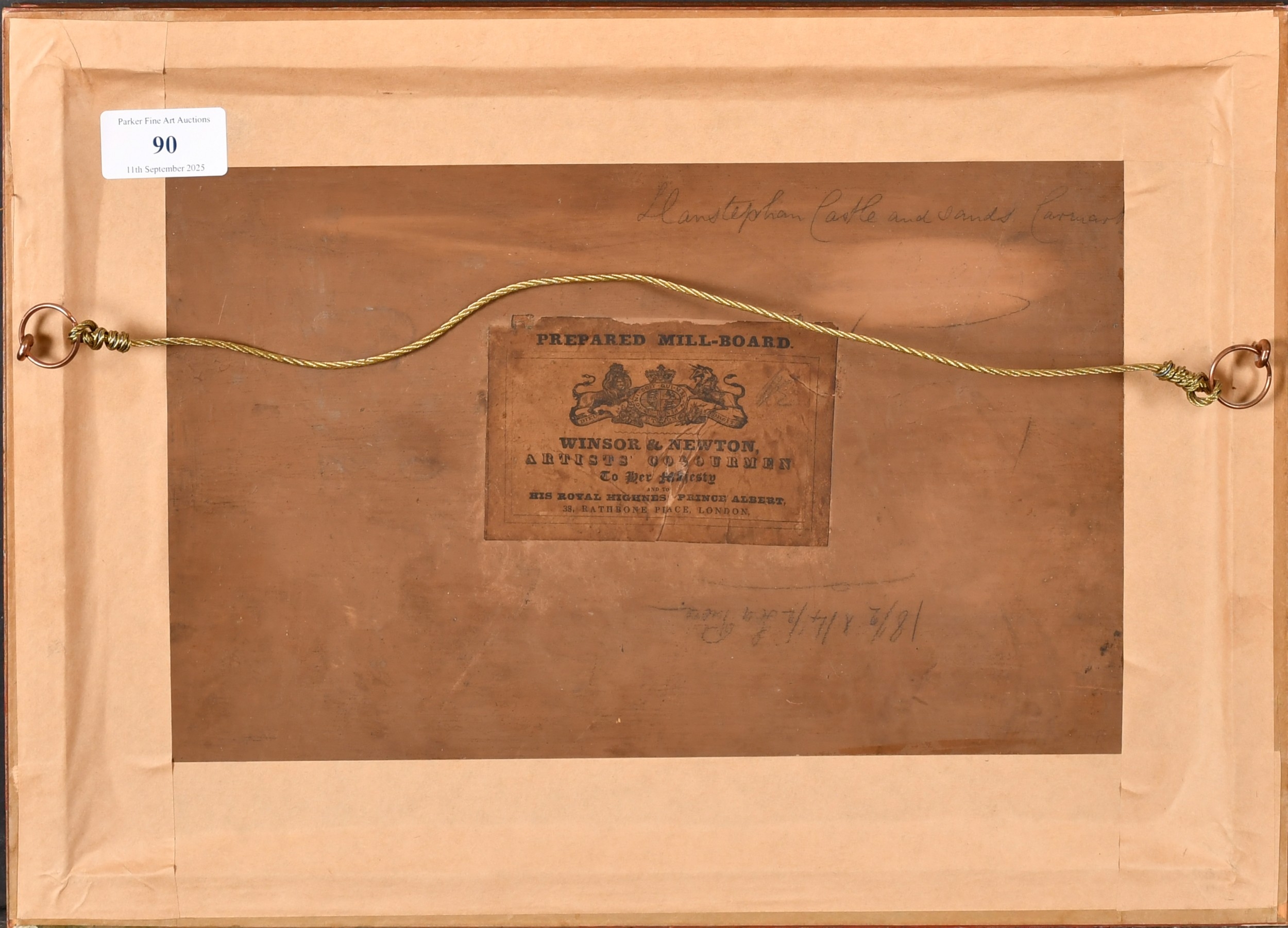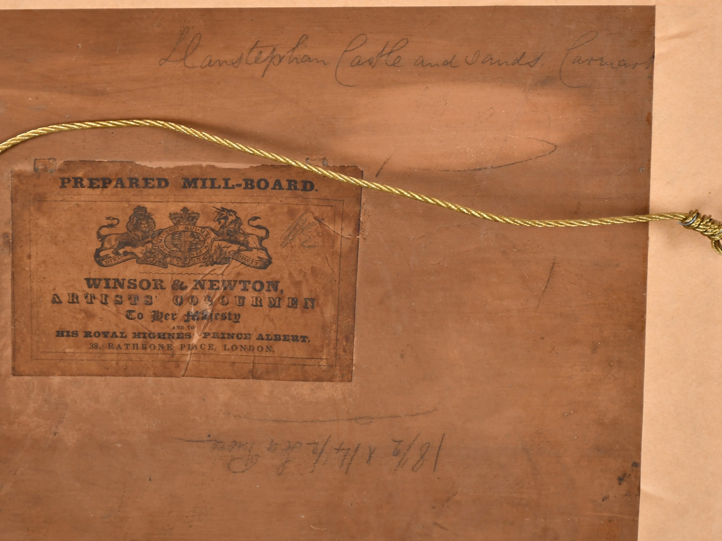 Joseph Horlor (1809-1887) British. "Llanstephan Castle and Sands, Carmarthenshire", Oil on board, Inscribed in pencil verso, 9.5" x 13.75" (24.2 x 34.8cm)