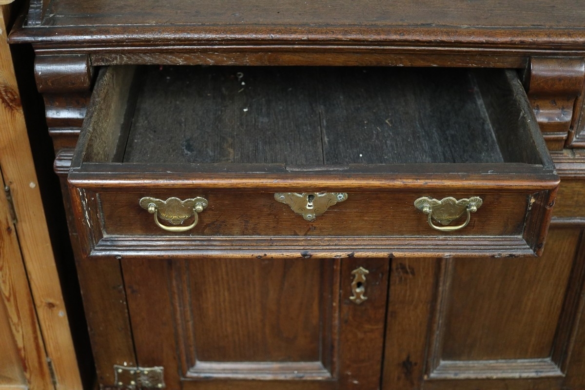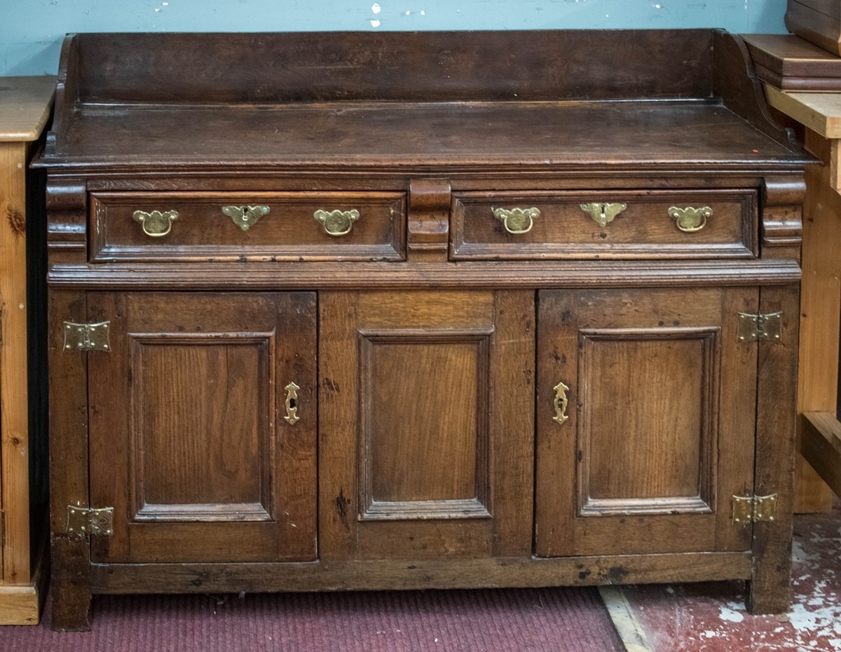 Antique oak sideboard/dresser base - Approx W: 139cm D: 51cm H: 100cm