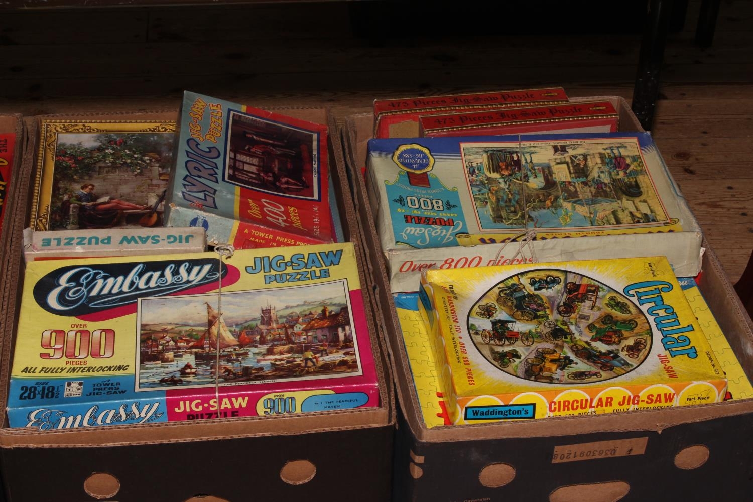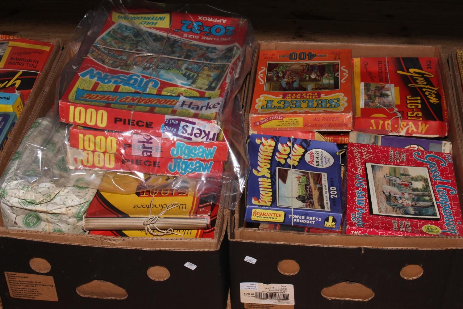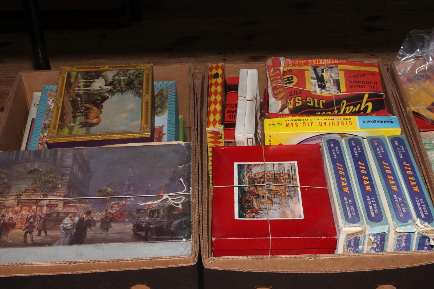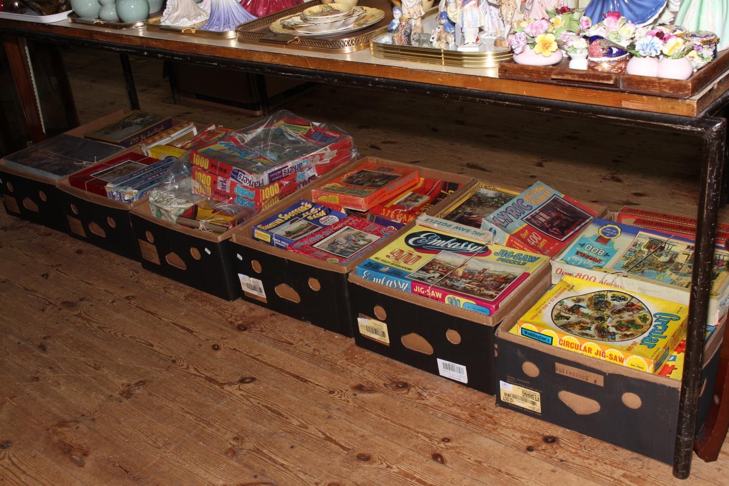 Six boxes of vintage jigsaw puzzles.