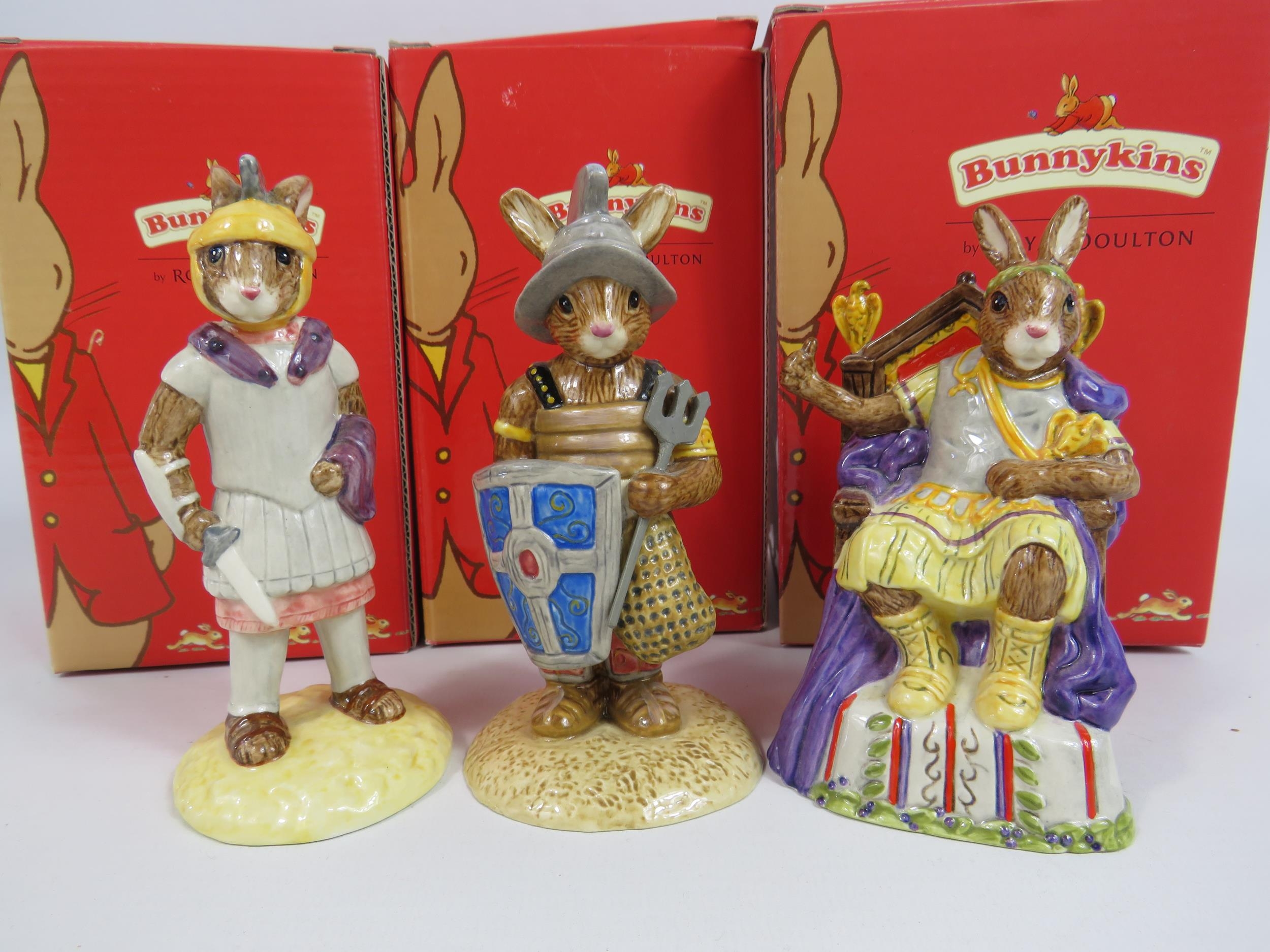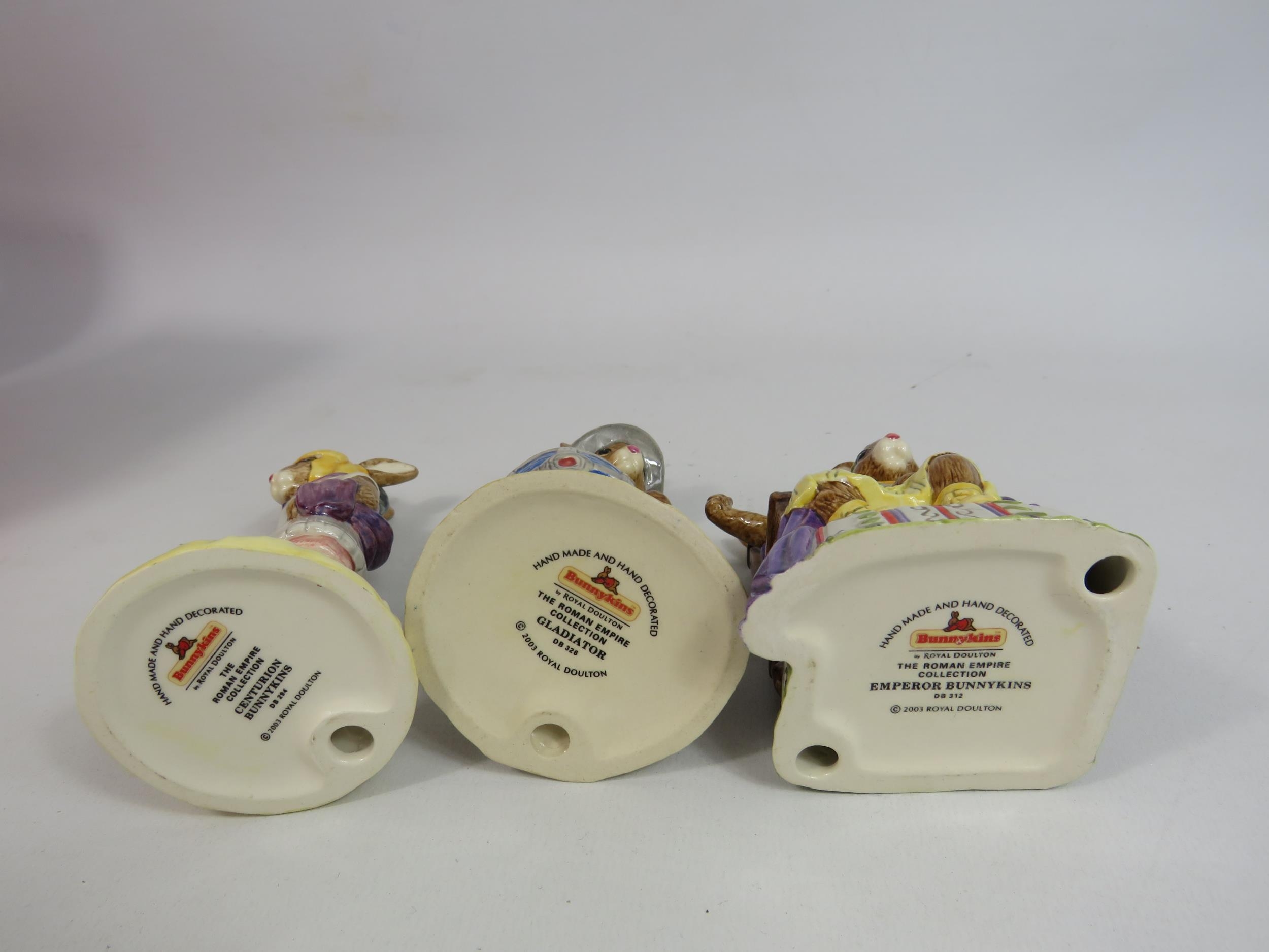 3 Royal Doulton Bunnykins The Roman empire collection figurines all with boxes.