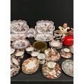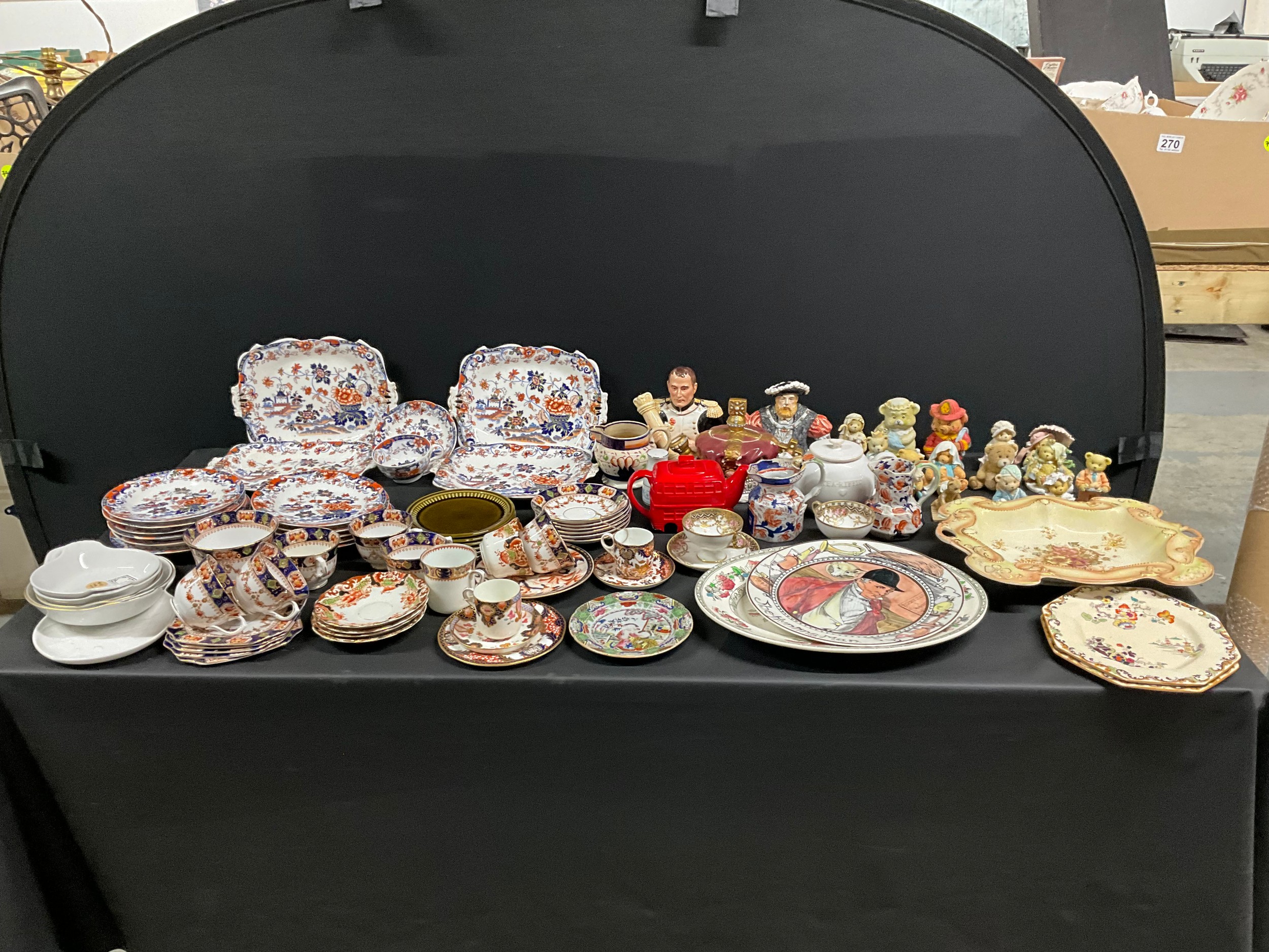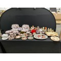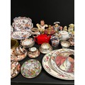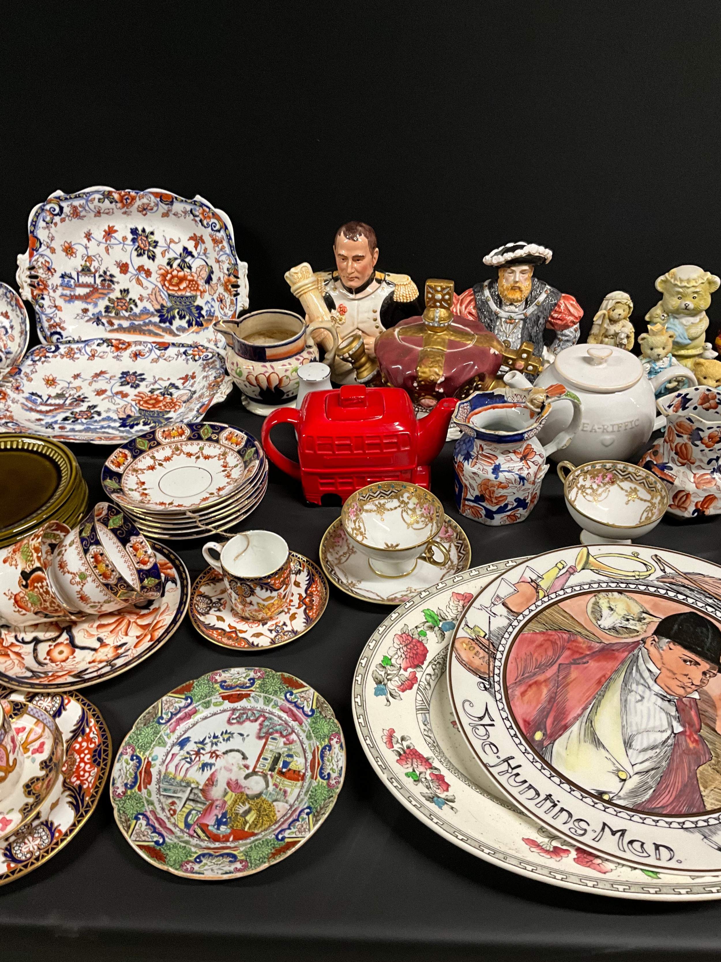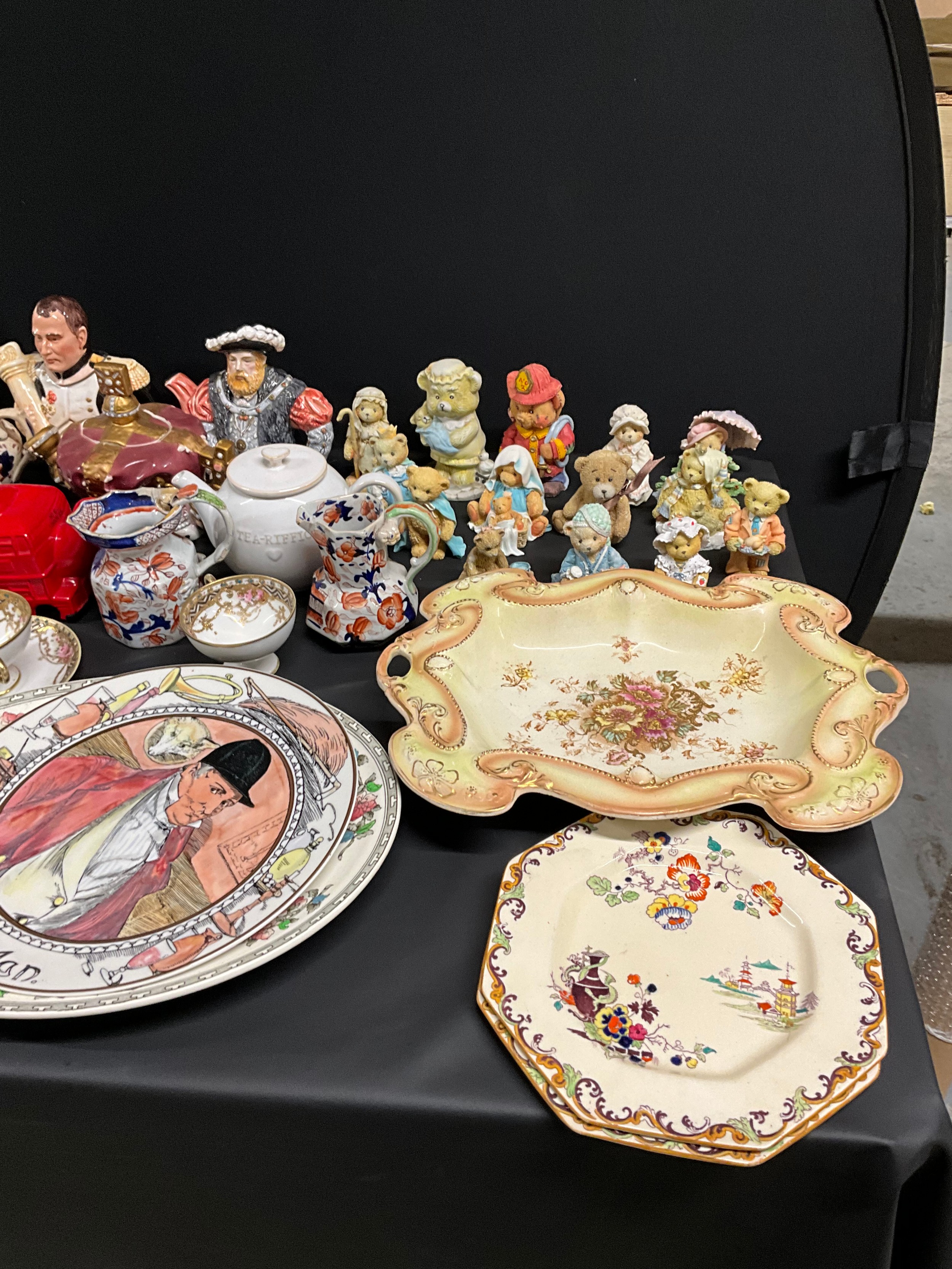 2 BOXES OF CHINA TO INCLUDE TEAPOTS, CHERISHED TEDDIES FIGURES, MASONS PLATES, CROWN DARBY ETC