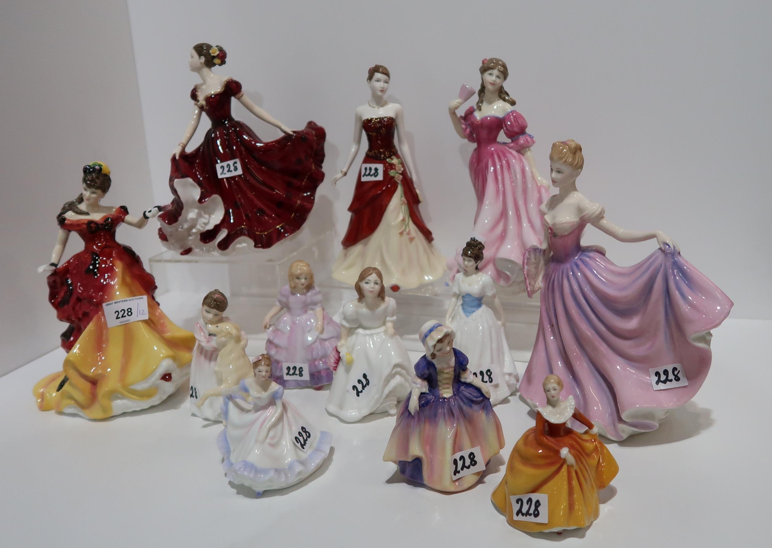 A collection of Royal Doulton figures including Sophie, Belle, Rachel, Emily and Lauren together with seven smaller figures