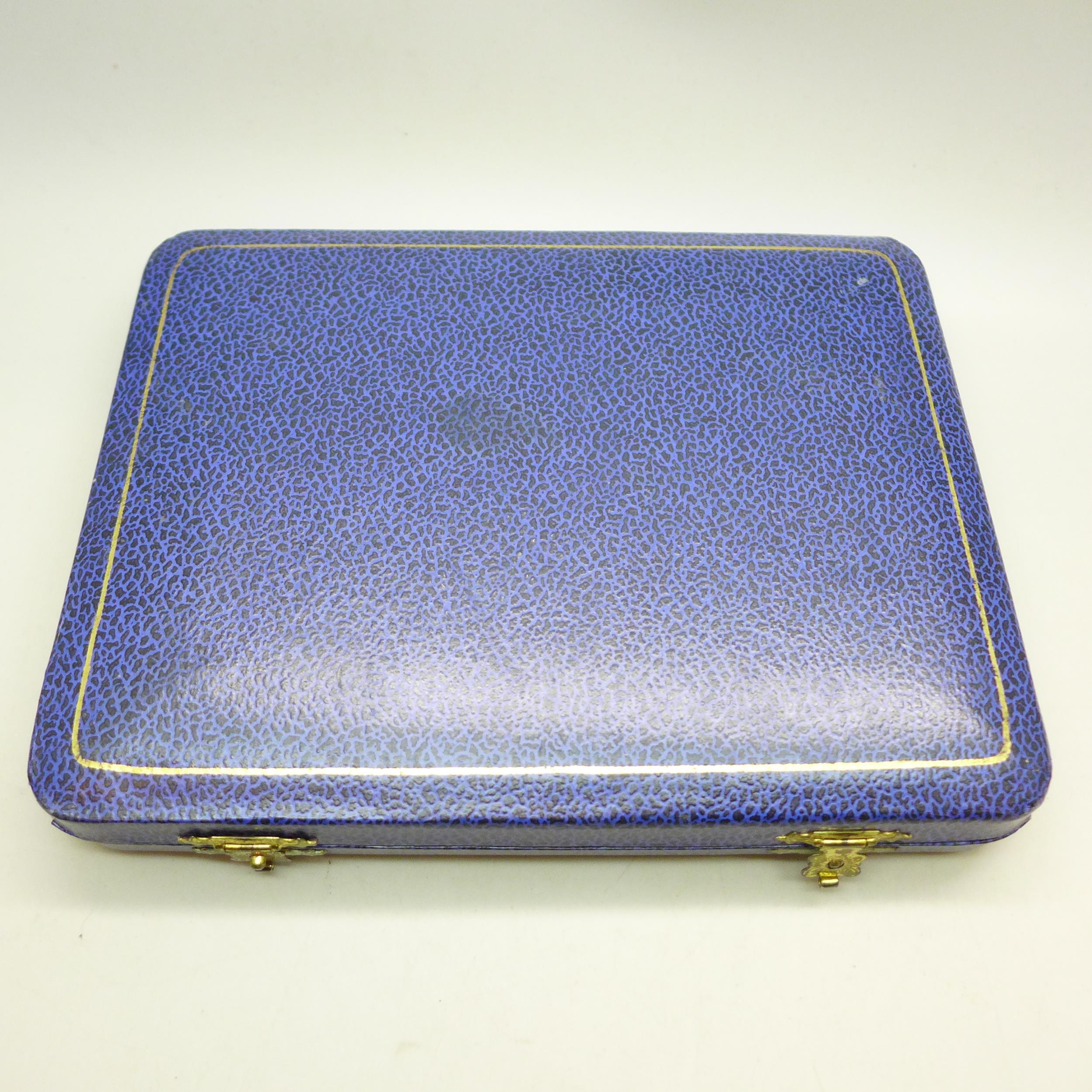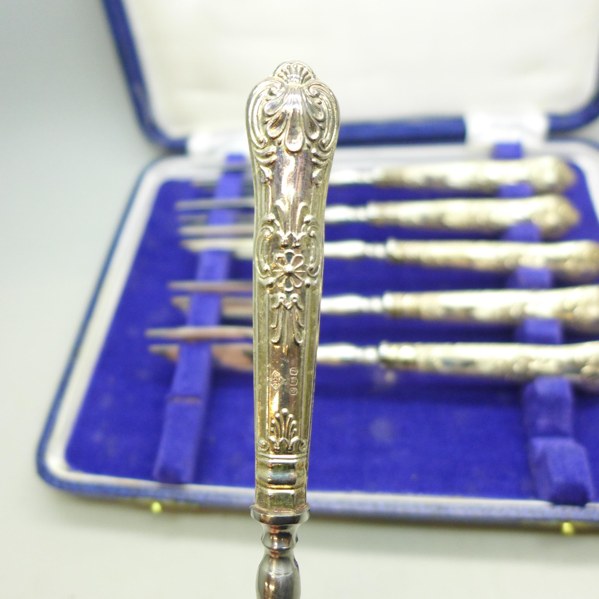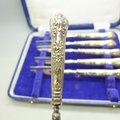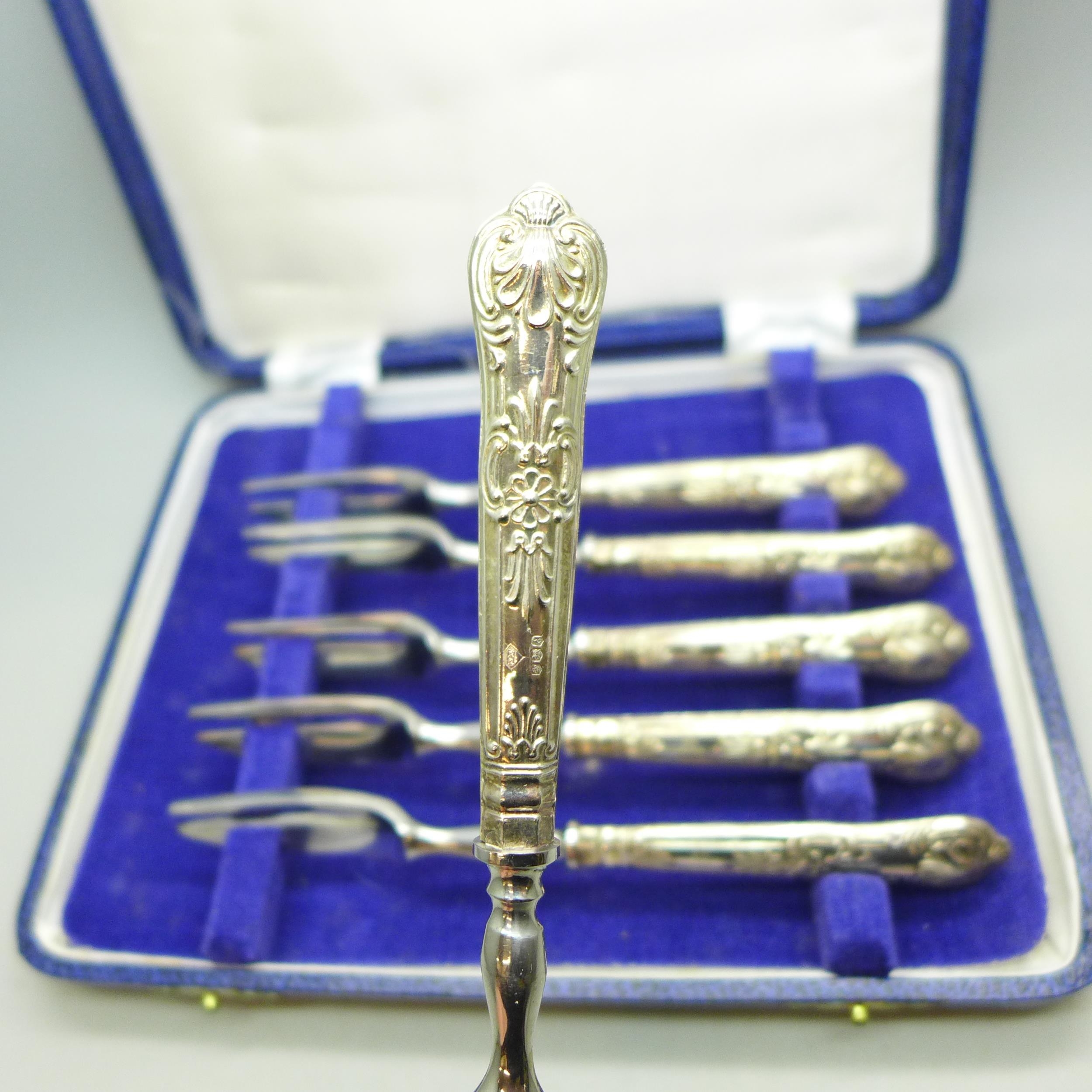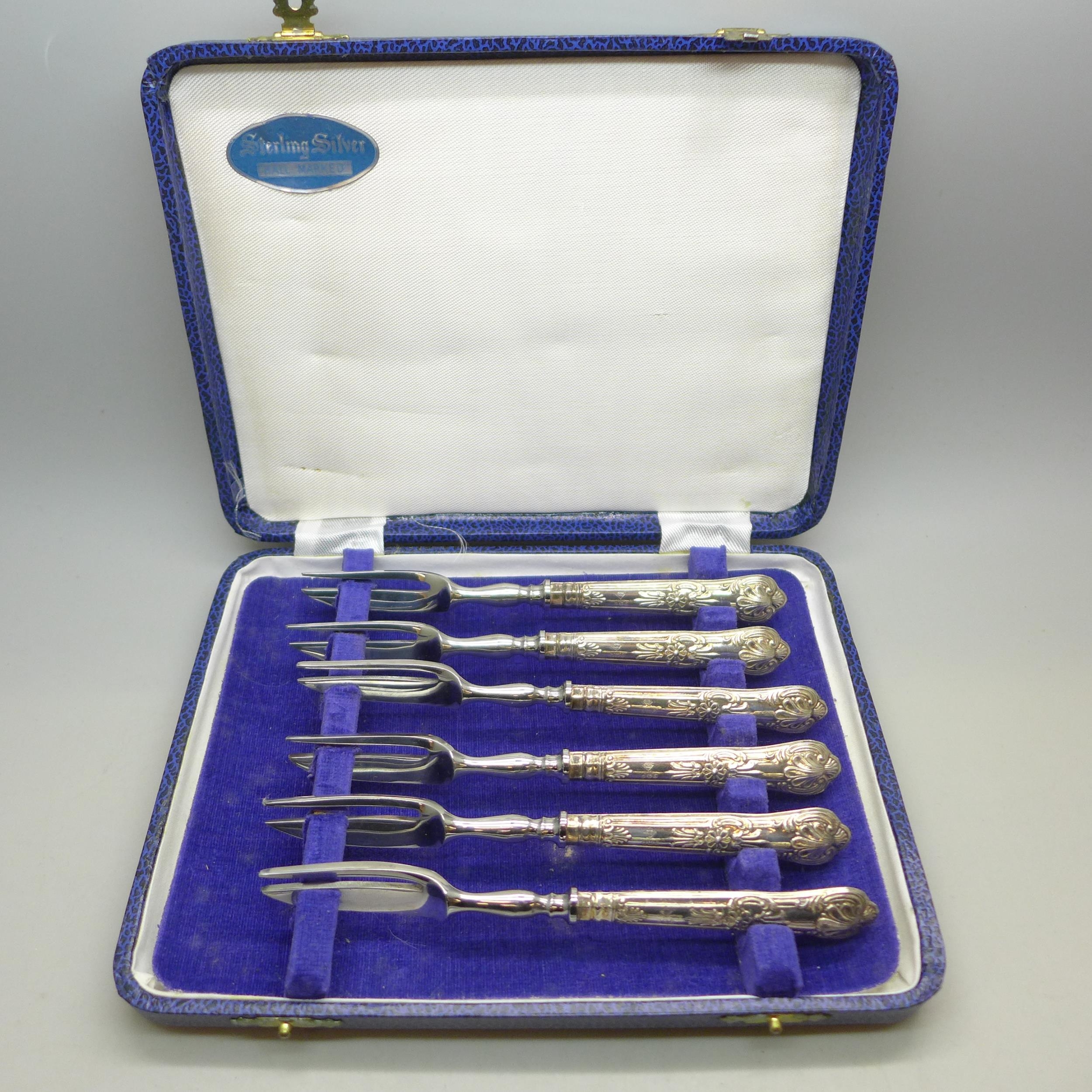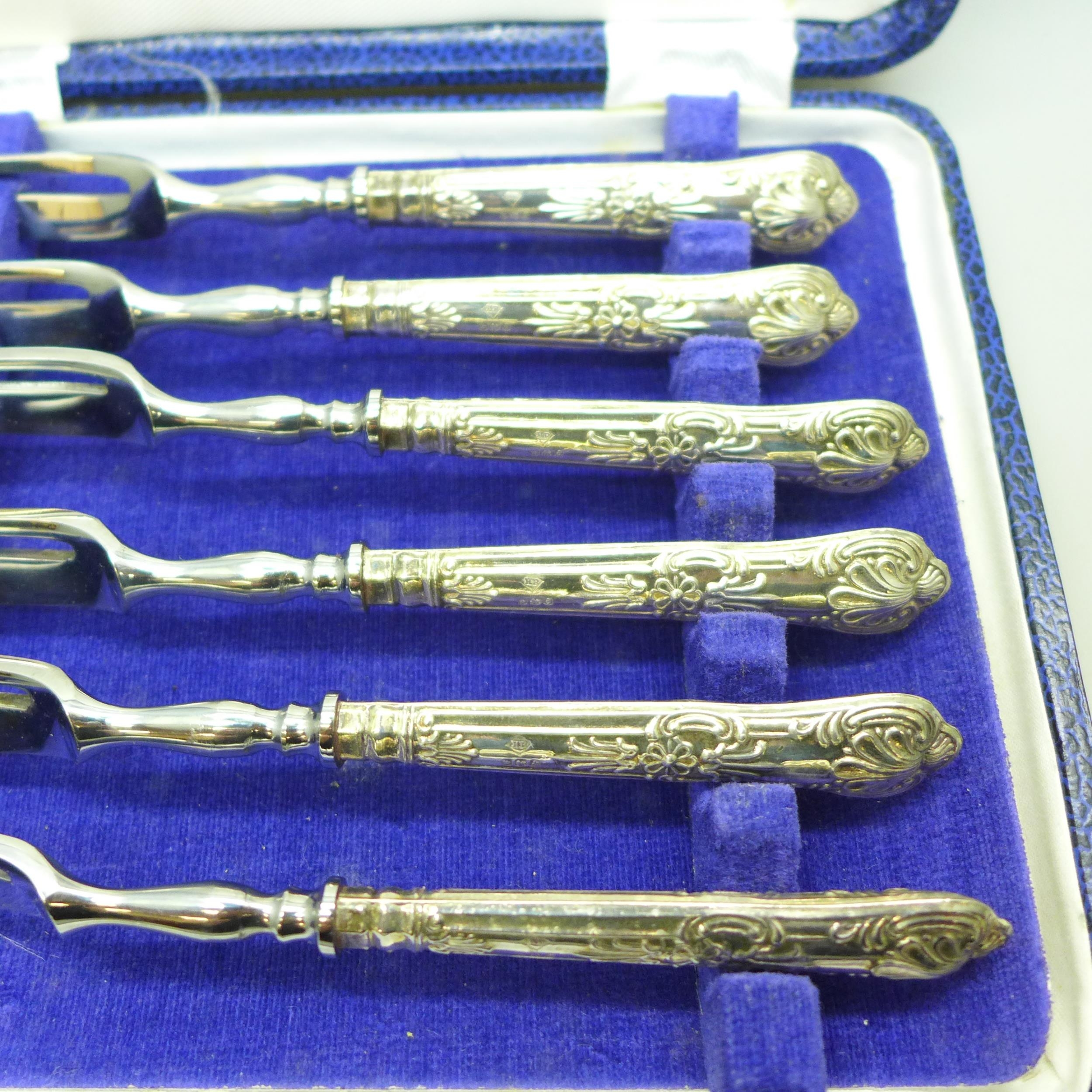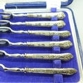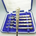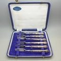 A set of silver handled cake forks, boxed