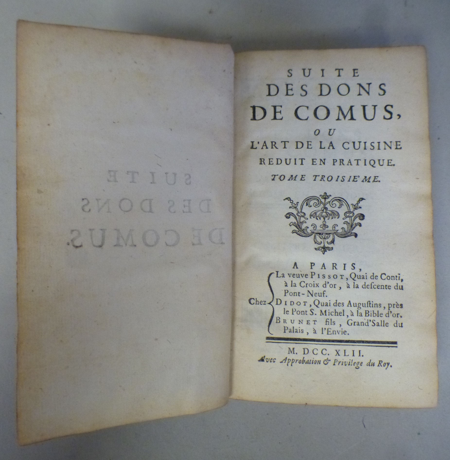 Book: 'Suite Des Dons De Comus L'Arf De La Cuisine' 1742