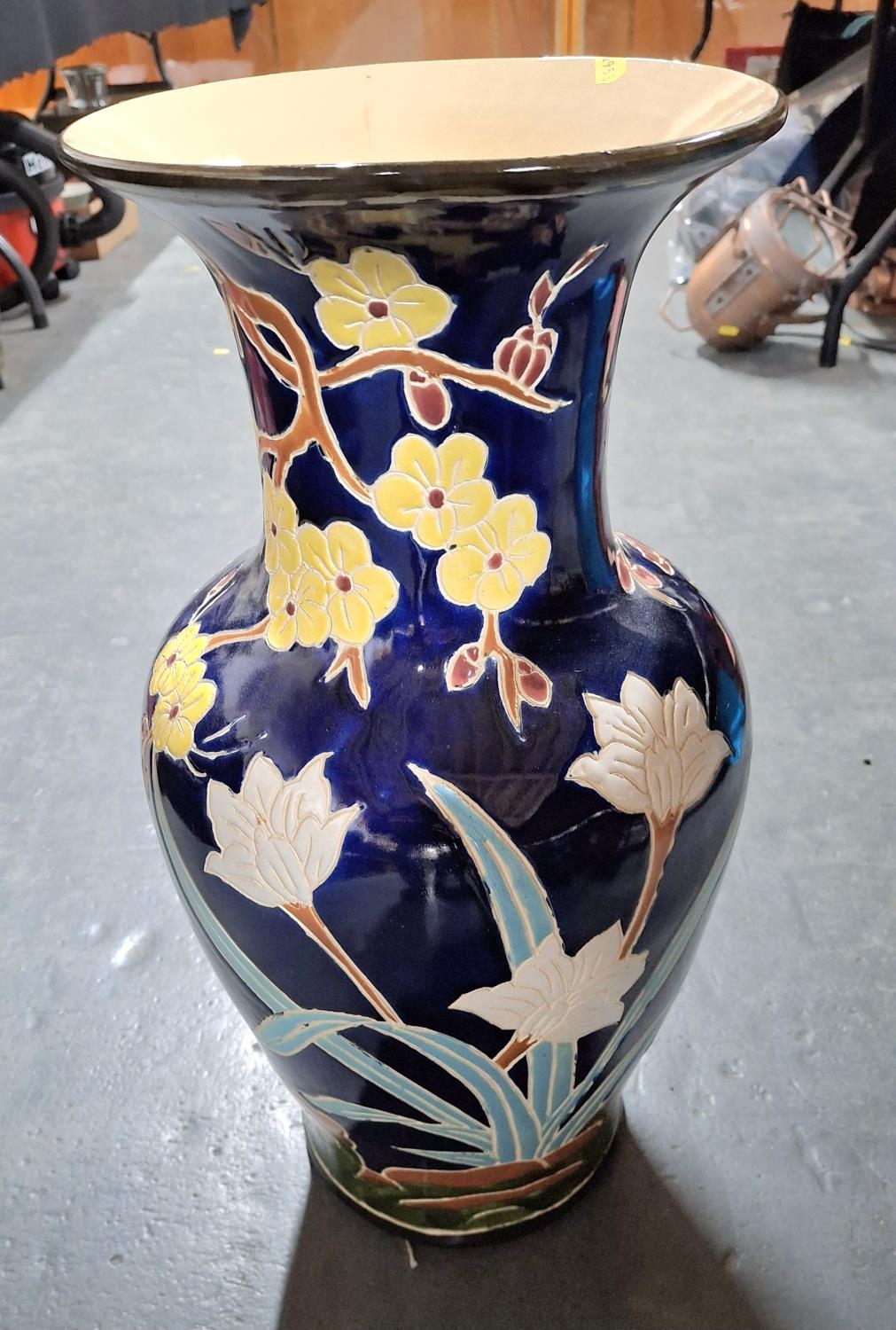 Large modern floor vase with Oriental style floral decoration,53 cm tall