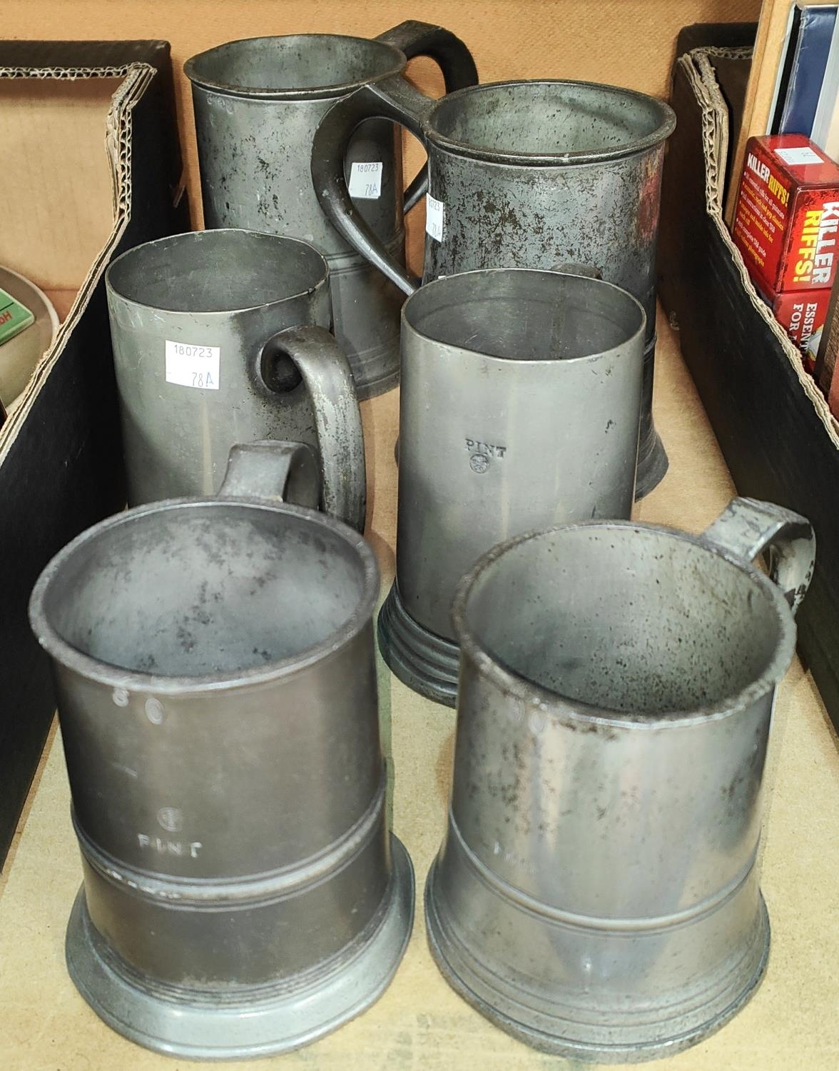 Six 19th century Pewter tankards of various sizes