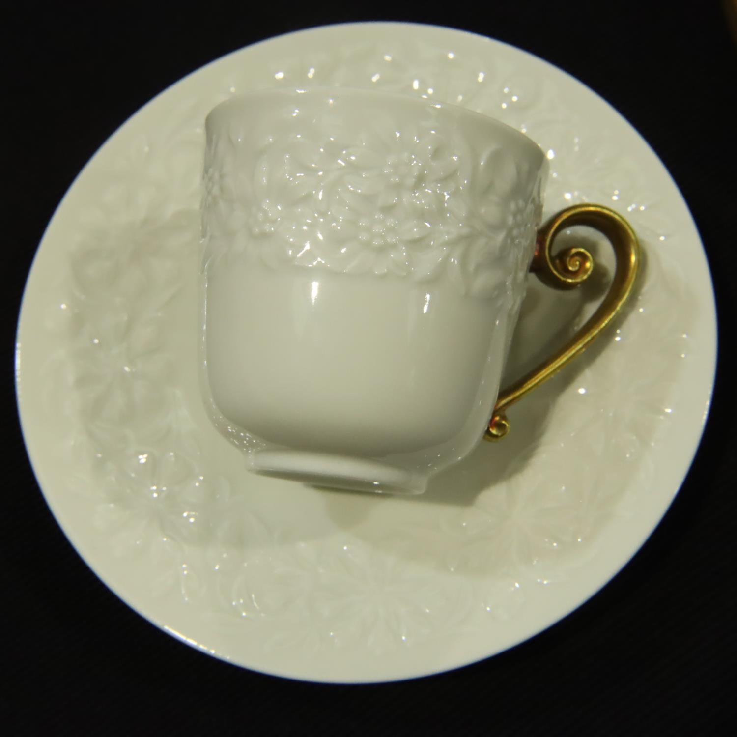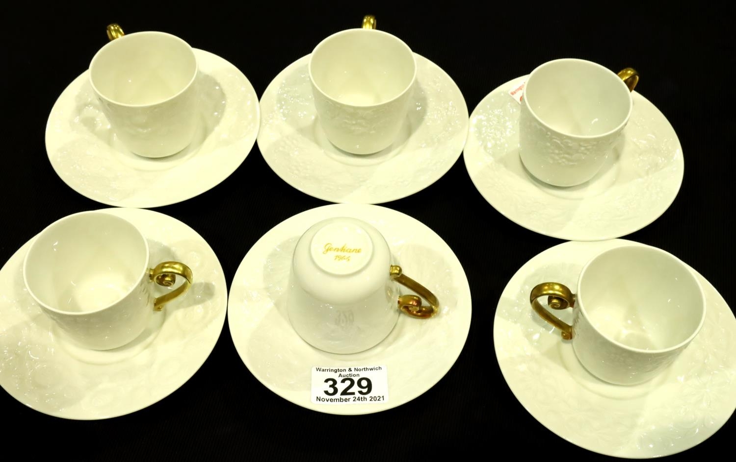 Set of six Langenthal white and gold porcelain coffee cups and saucers, each with different flower names to bottom of cups. Not available for in-house P&P, contact Paul O'Hea at Mailboxes on 01925 659133