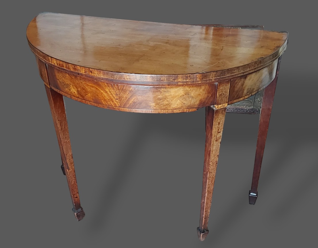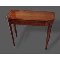 A 19th Century mahogany card table, the hinged top with baize lined interior raised upon square tapering legs together with another similar card table