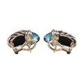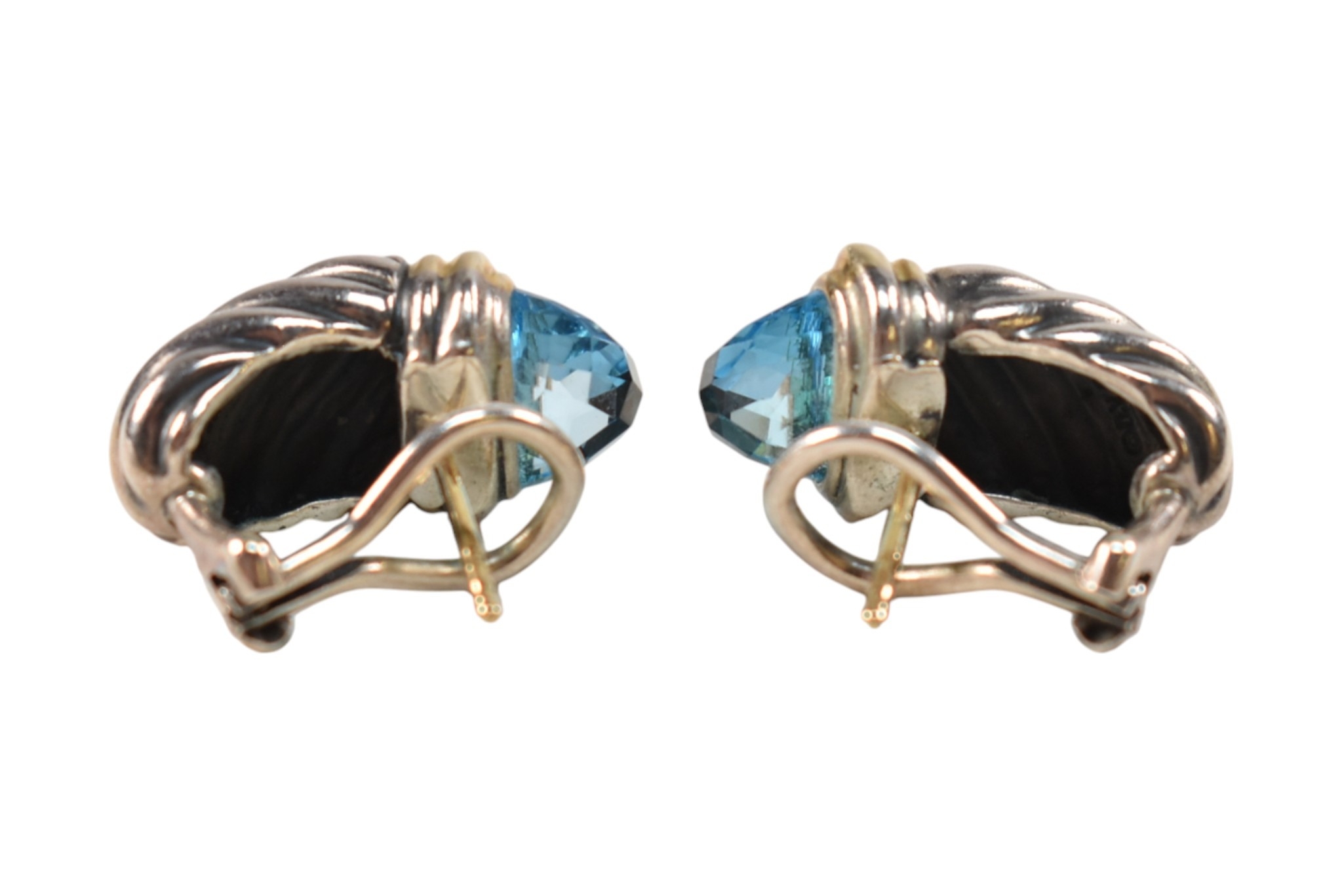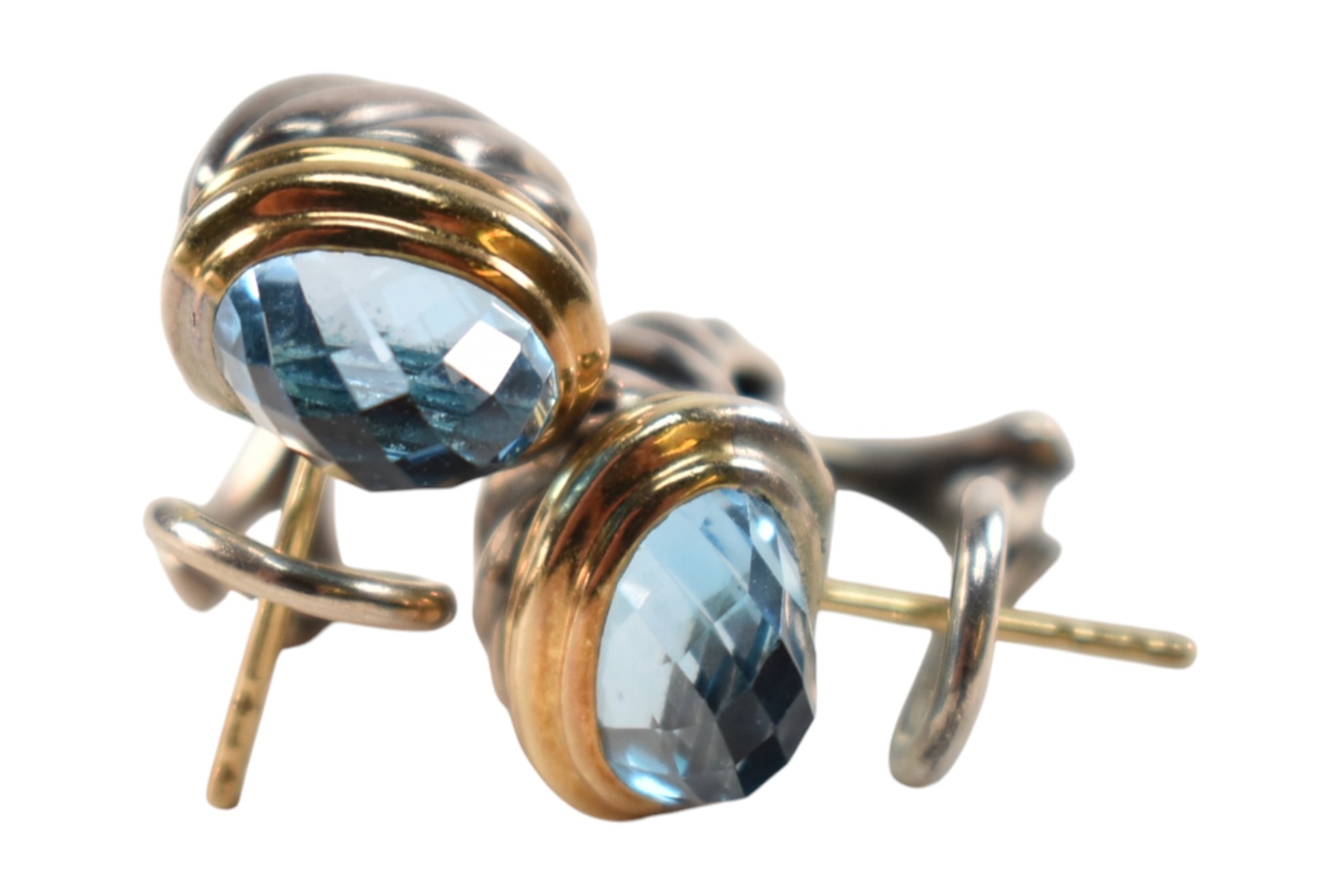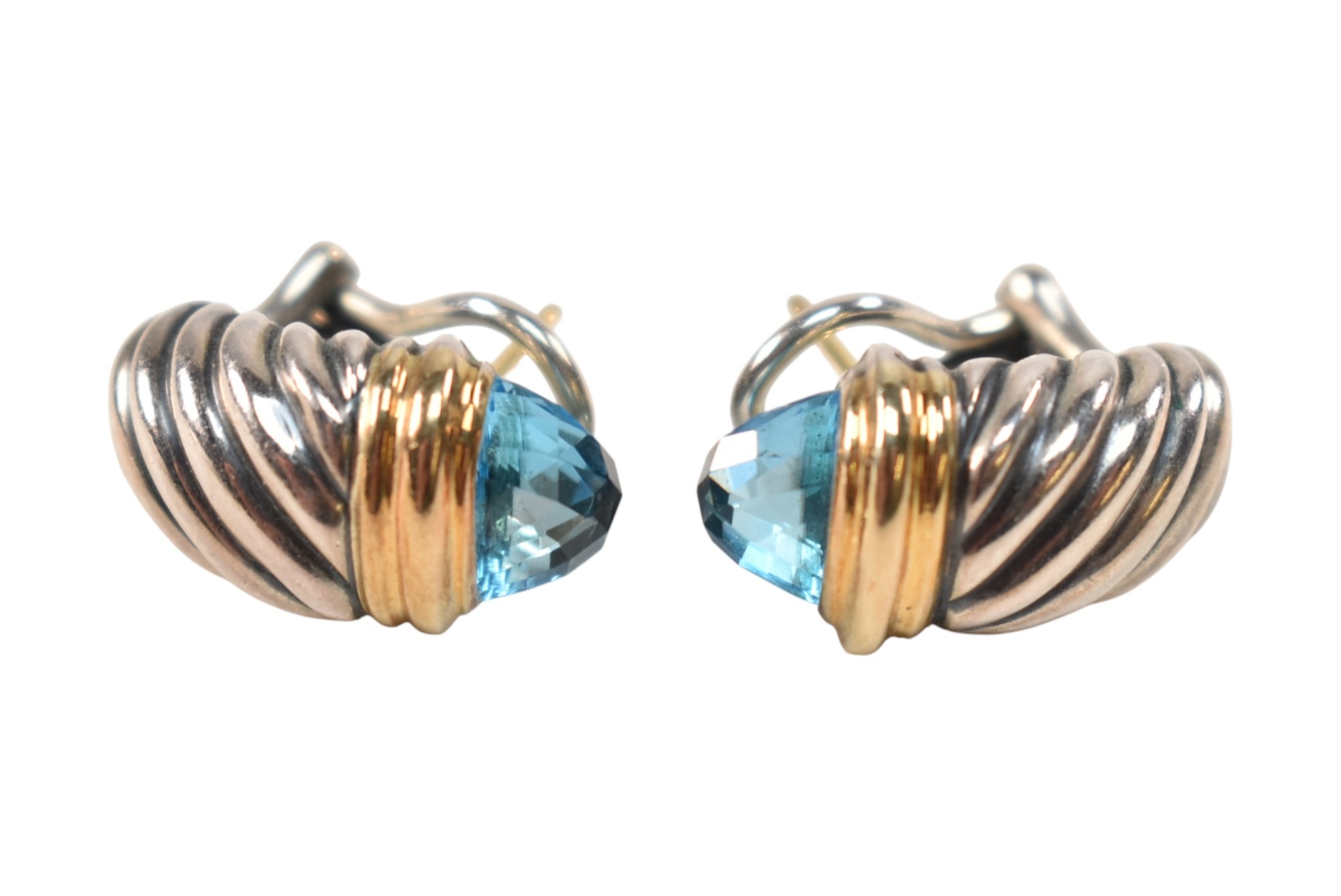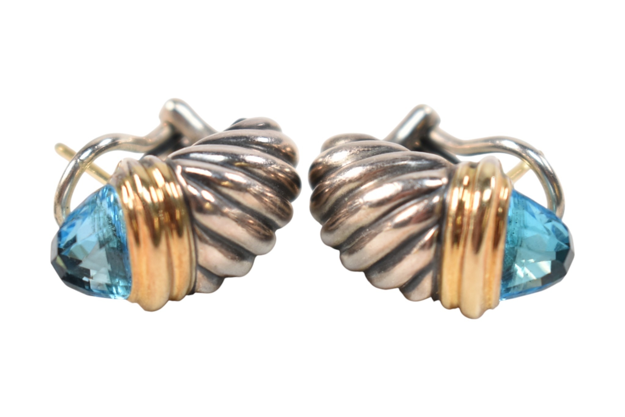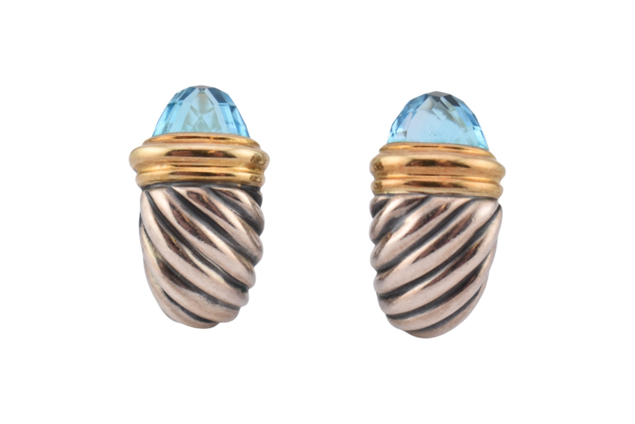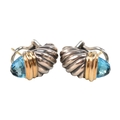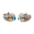 A pair of David Yurman silver, 18ct gold and topaz Shrimp earrings. Signed D.Y 925 750. weight 9.7g. Measures 2cm.