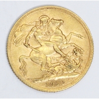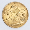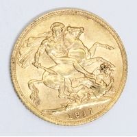 George V 1911 sovereign, 10% buyer's premium (inclusive of VAT), normal online bidding fees apply.