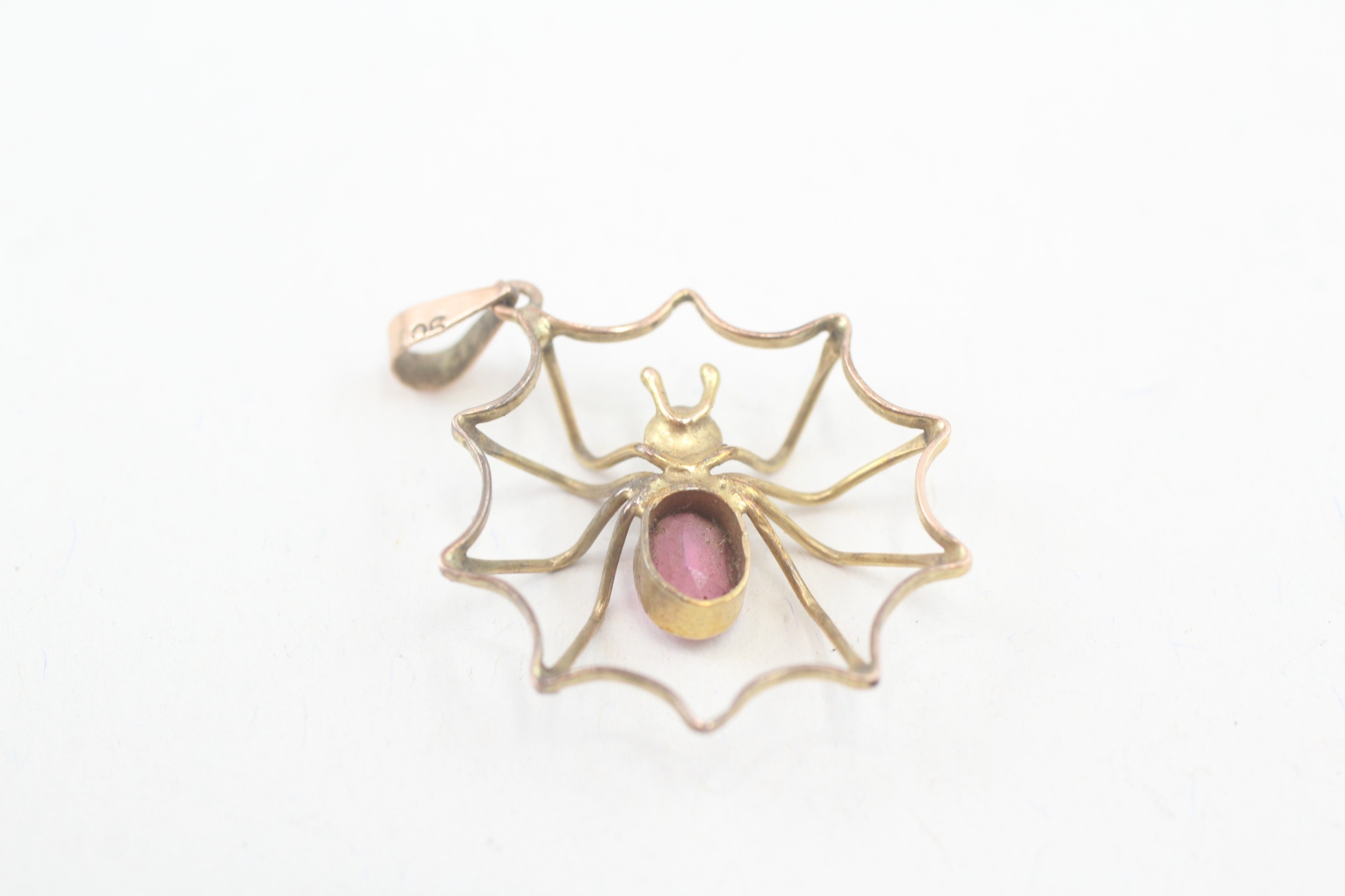 9ct gold antique pink paste spider pendant (condition: missing stone) (1.7g)
