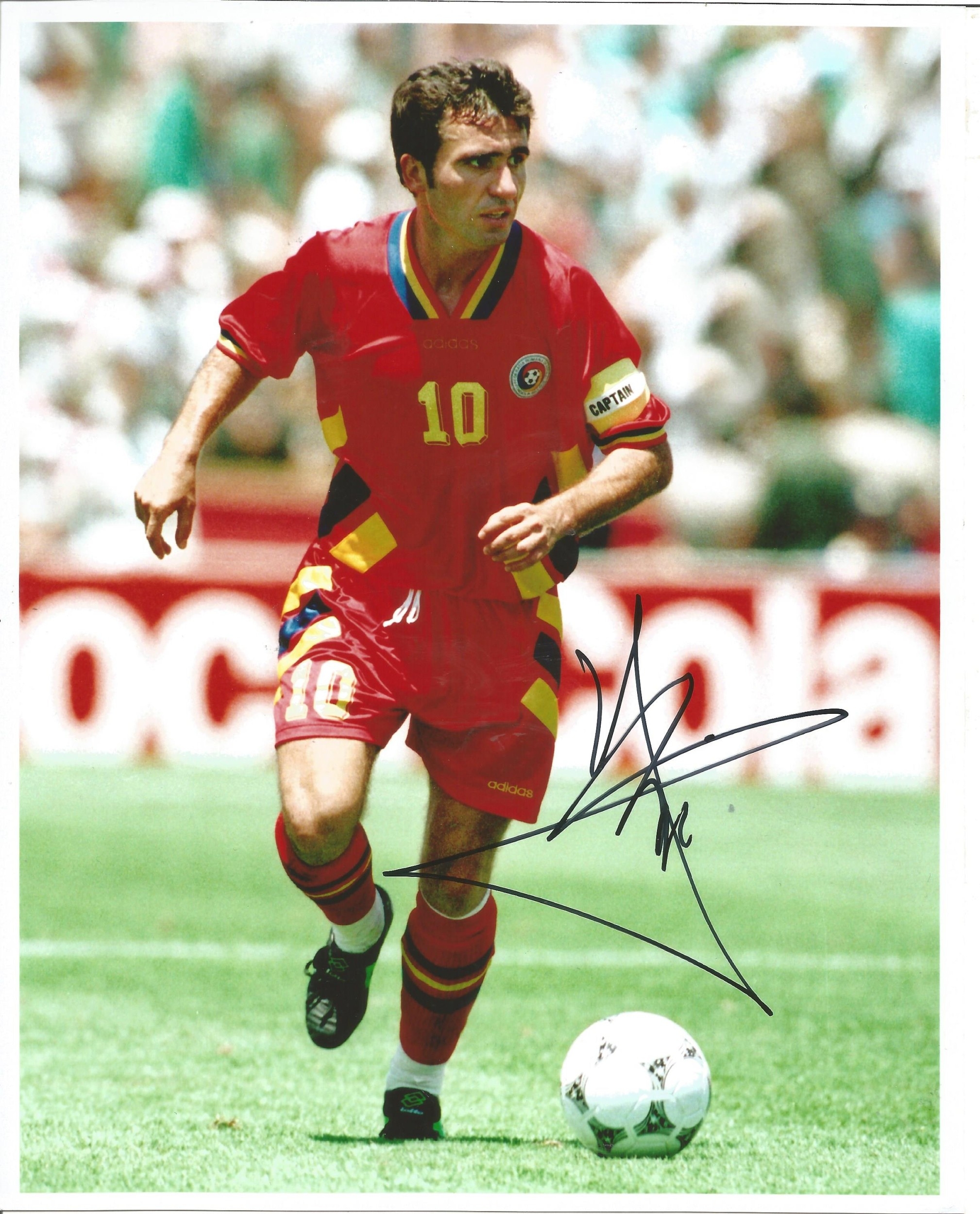 Gheorghe Hagi signed 10x8inch colour photo pictured in action for Romainia.