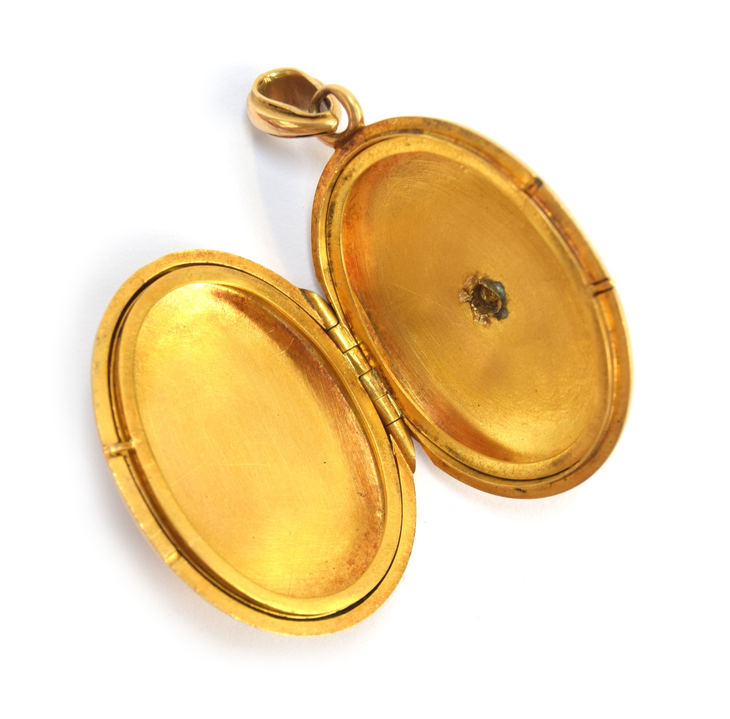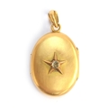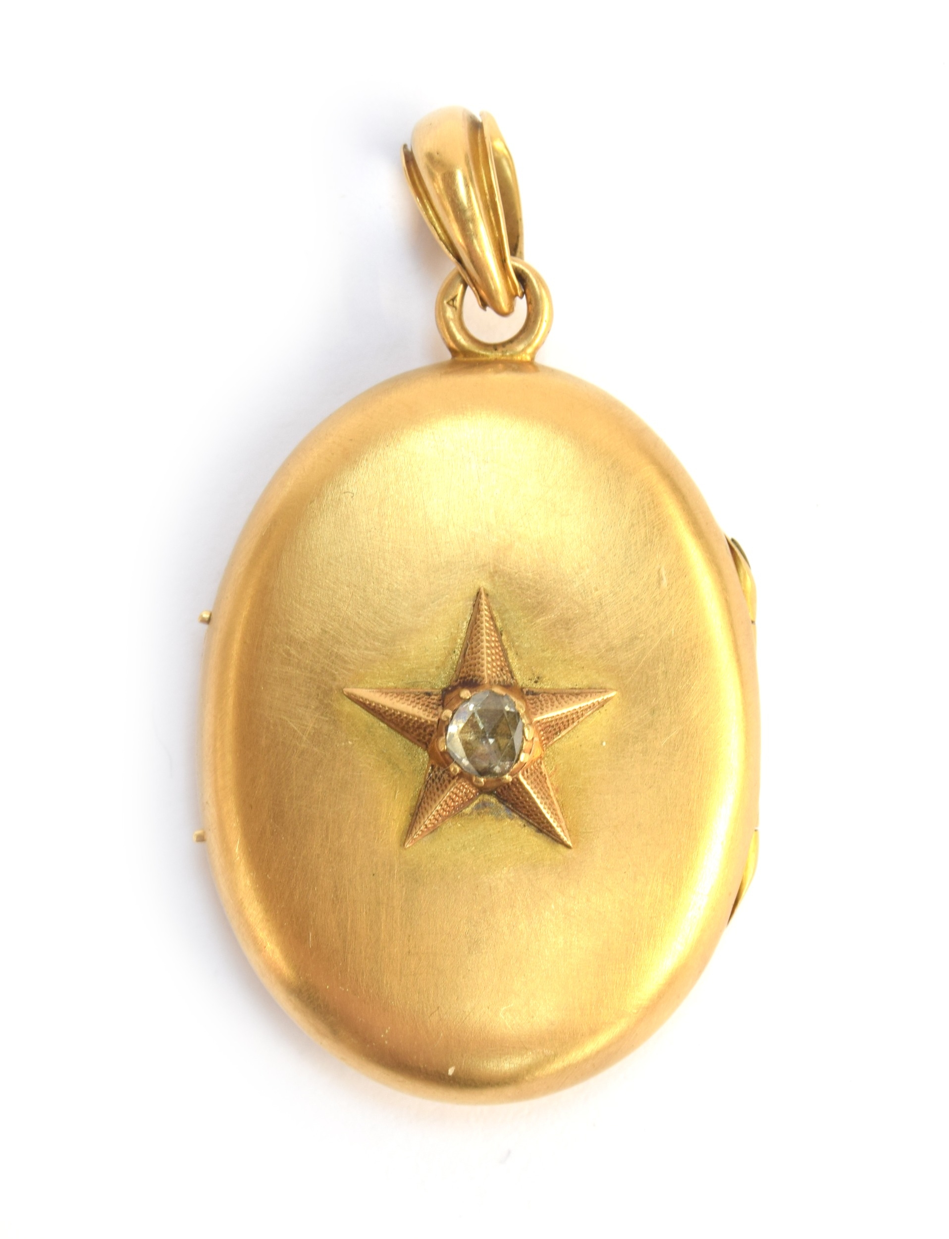 A heavy Victorian gold locket, the front with applied star set with a rose cut diamond in cut down collet setting, the diamond 4x3.5mm, the locket 3x5x2.3cm excluding bail, 17.7g