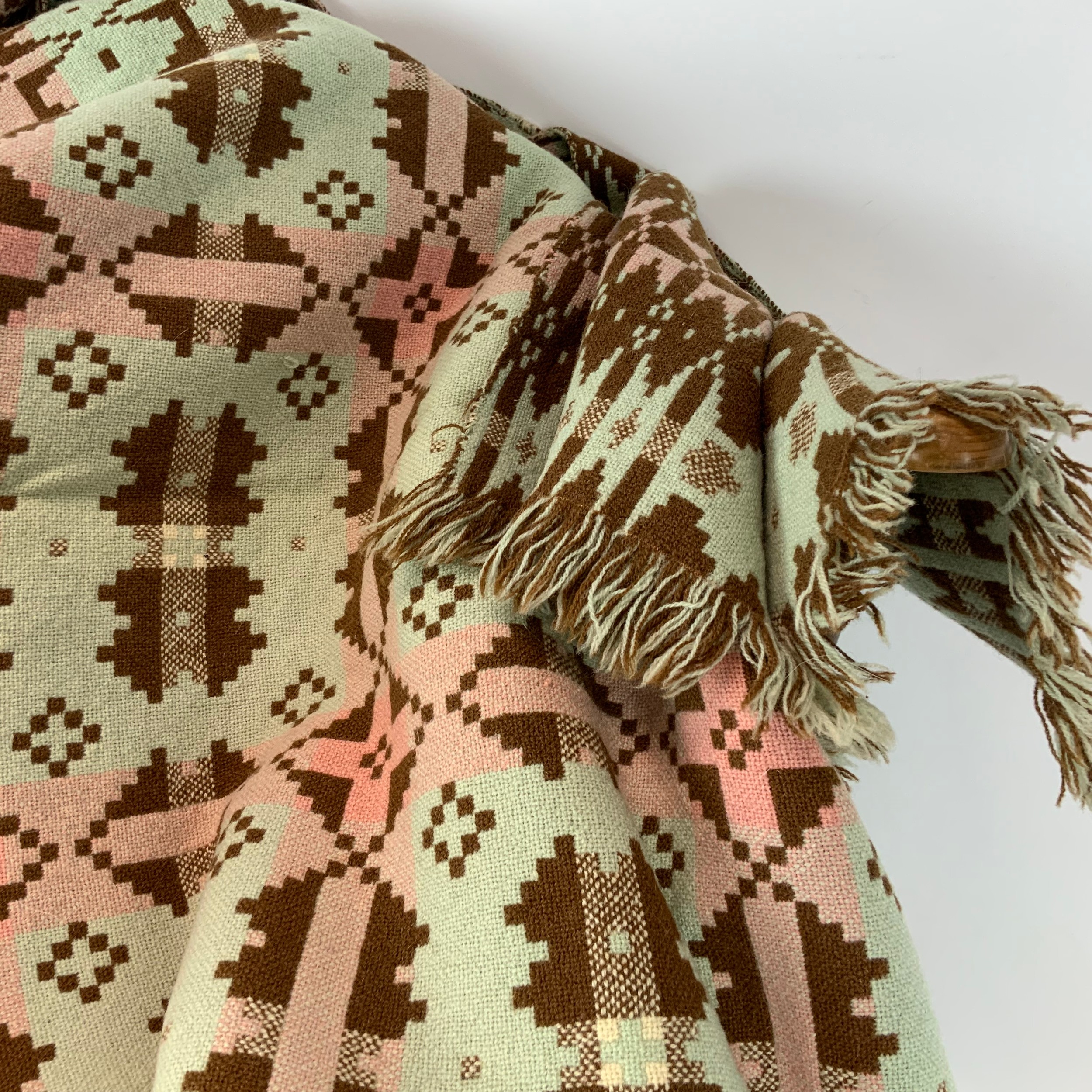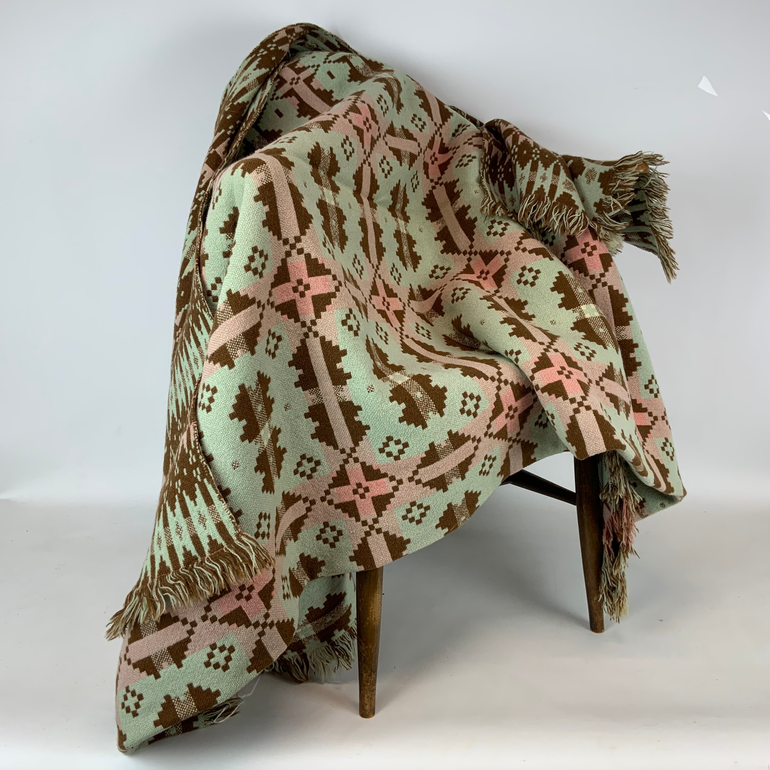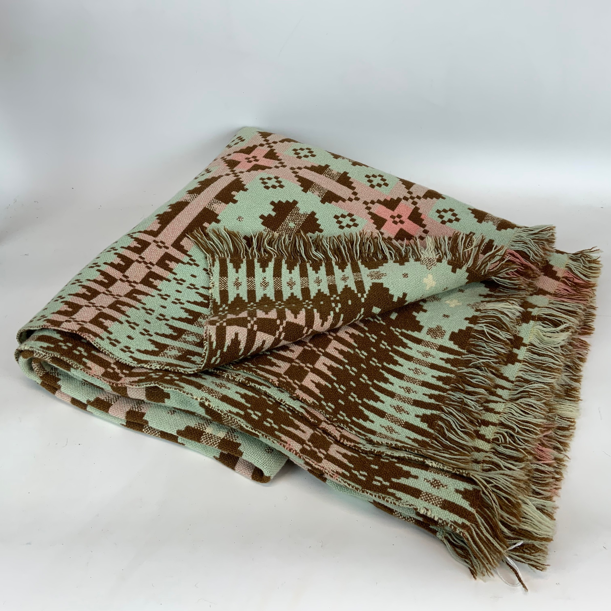 A 20th-century green and pink Welsh woven blanket, 207cm x 168cm.
