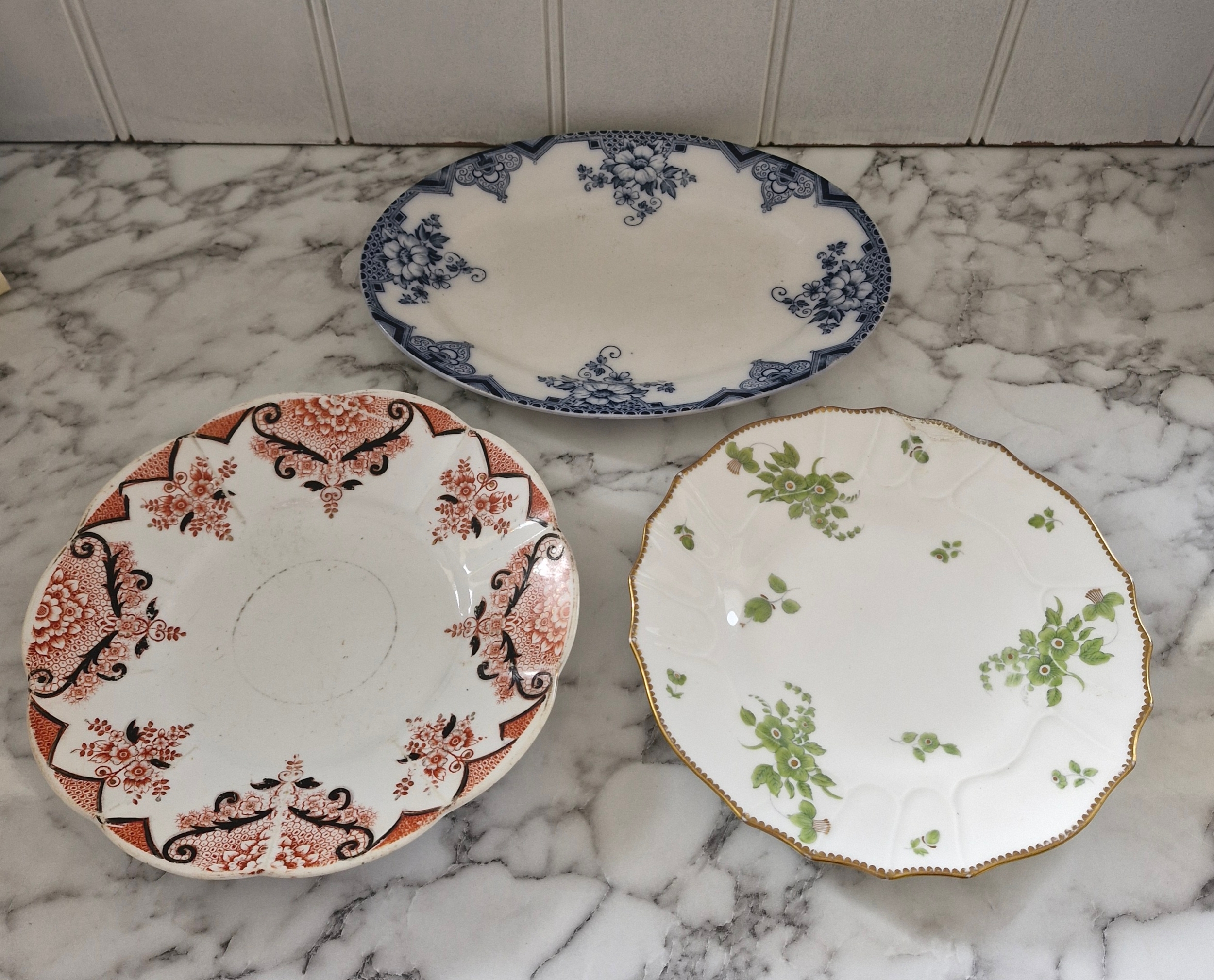 12' Hollinshead and Kirkham Blue and White serving dish and 2 others
