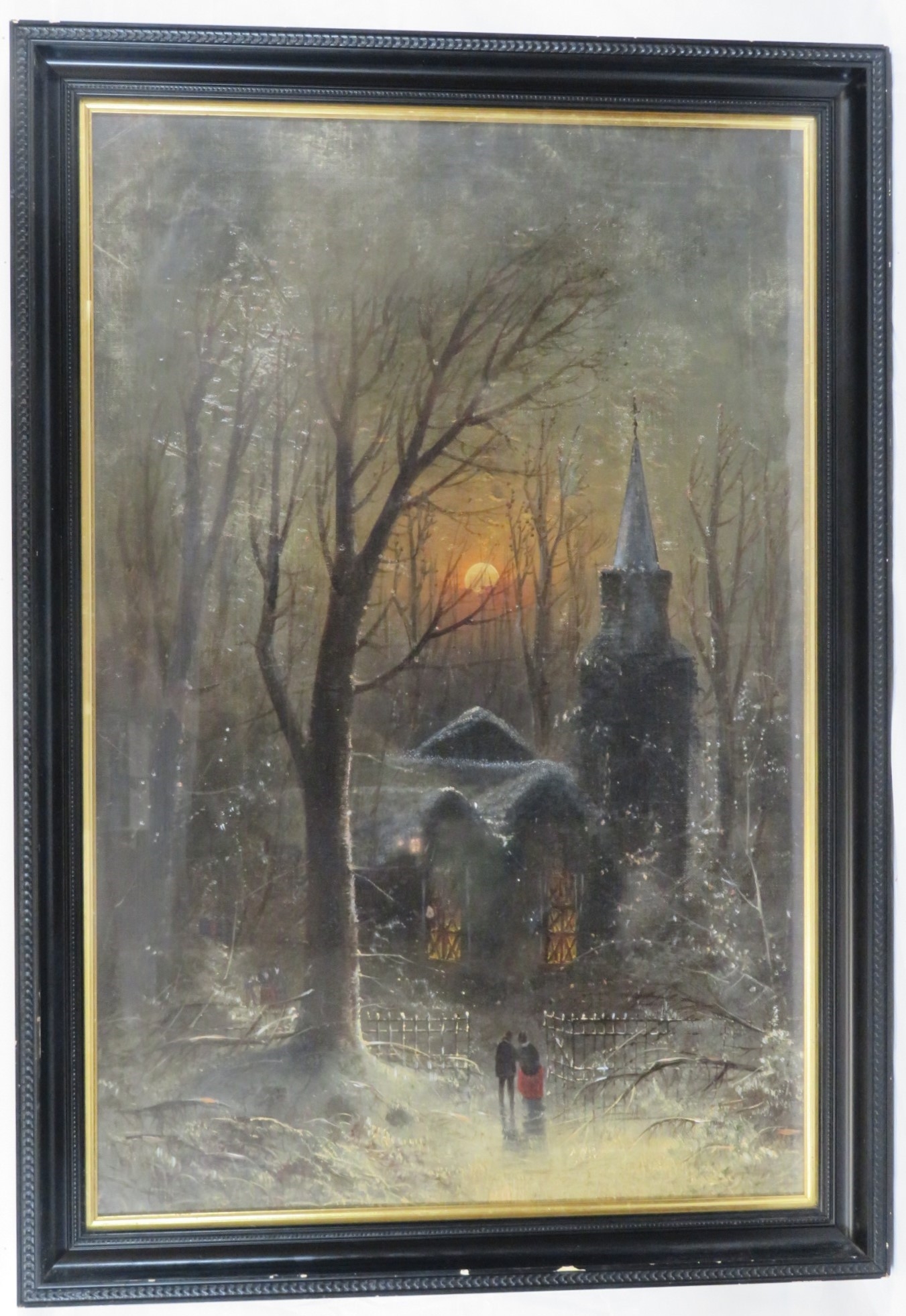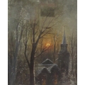 George Wilson (Scottish,1848-1890) 'Moonlit scene with church' pastels, 58x88cm, signed