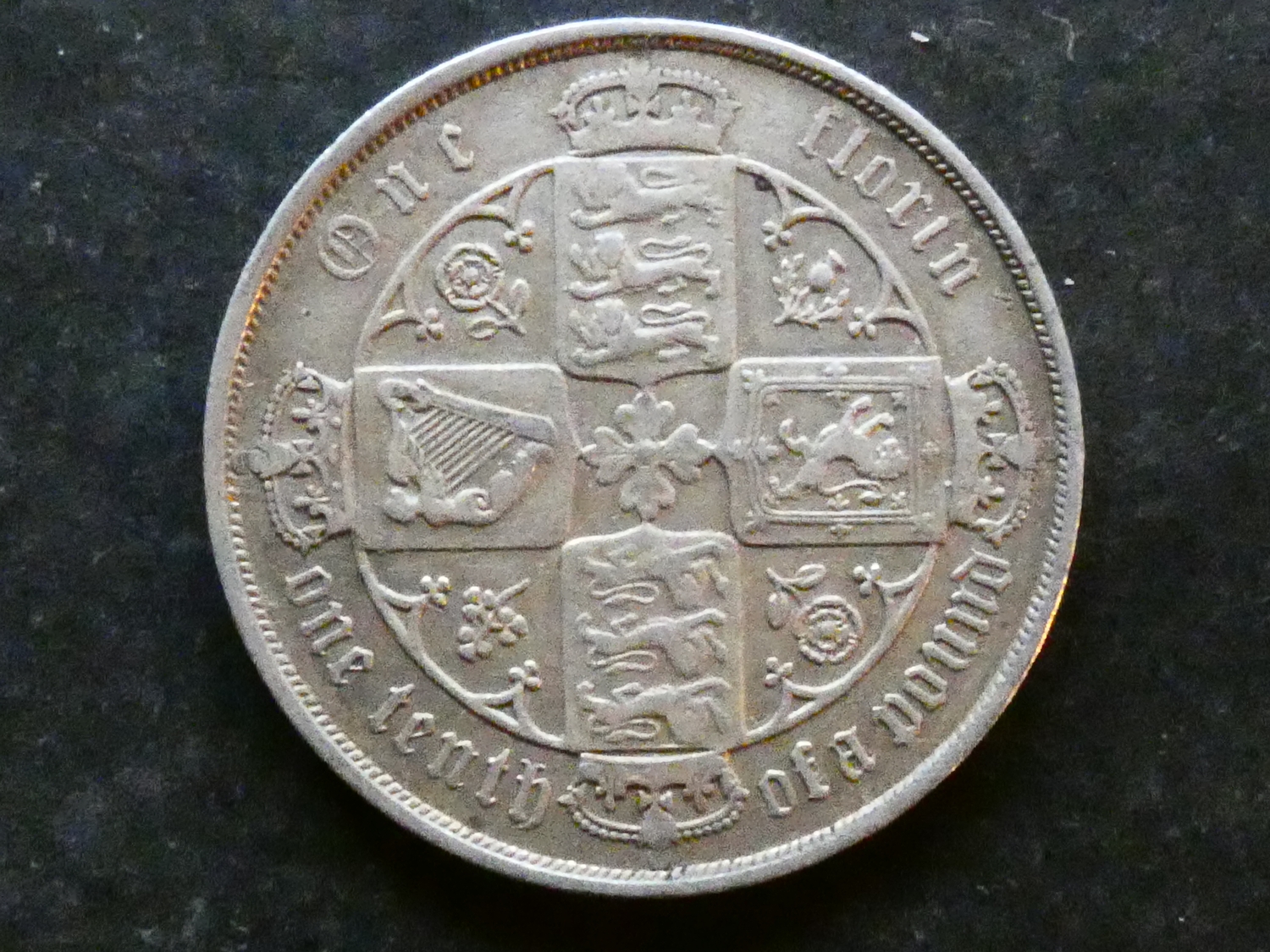 COIN. United Kingdom, Victoria (1837-1901), silver "gothic" Florin, mdccclxxxiii (1883), S-3900, NF