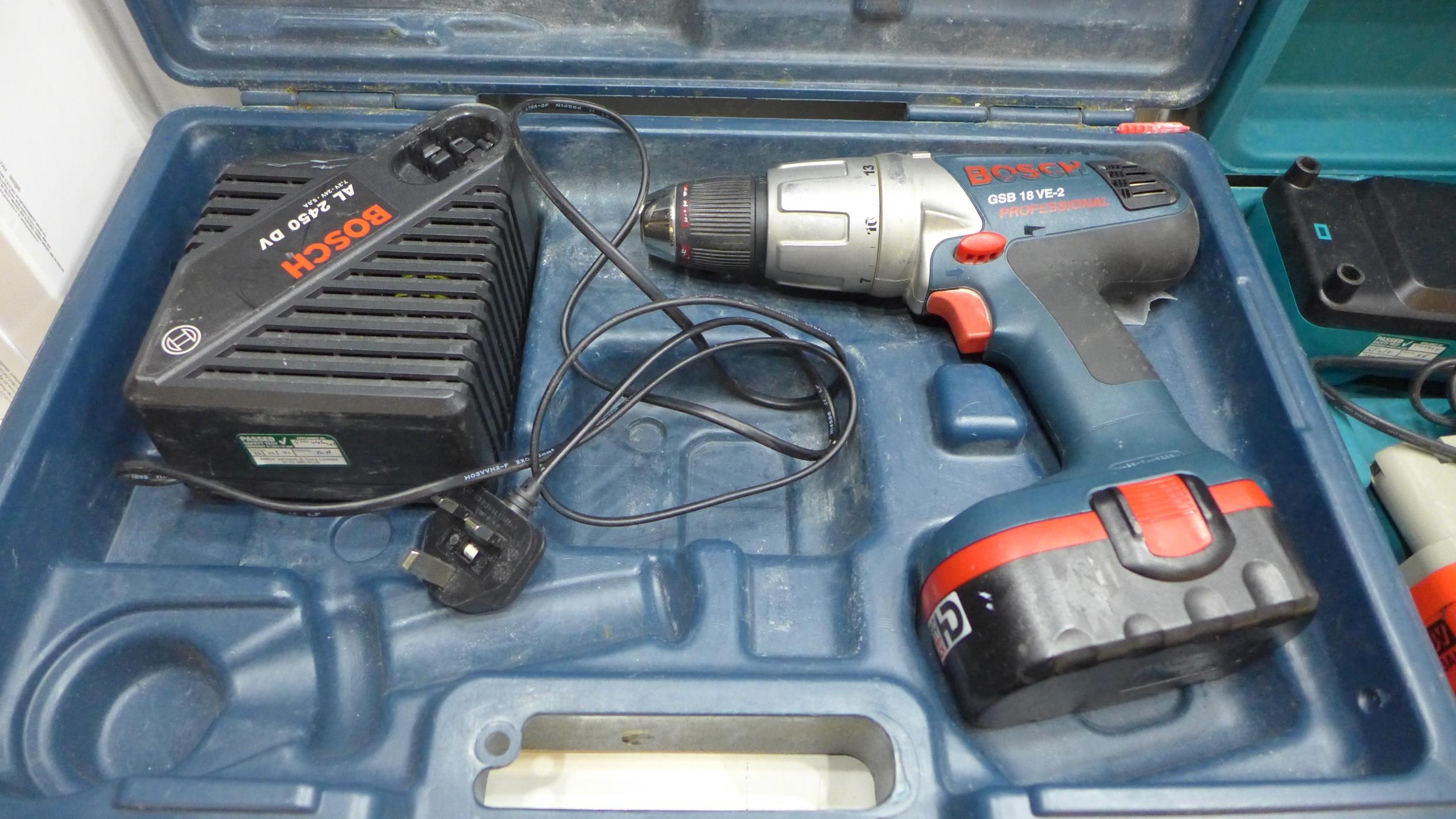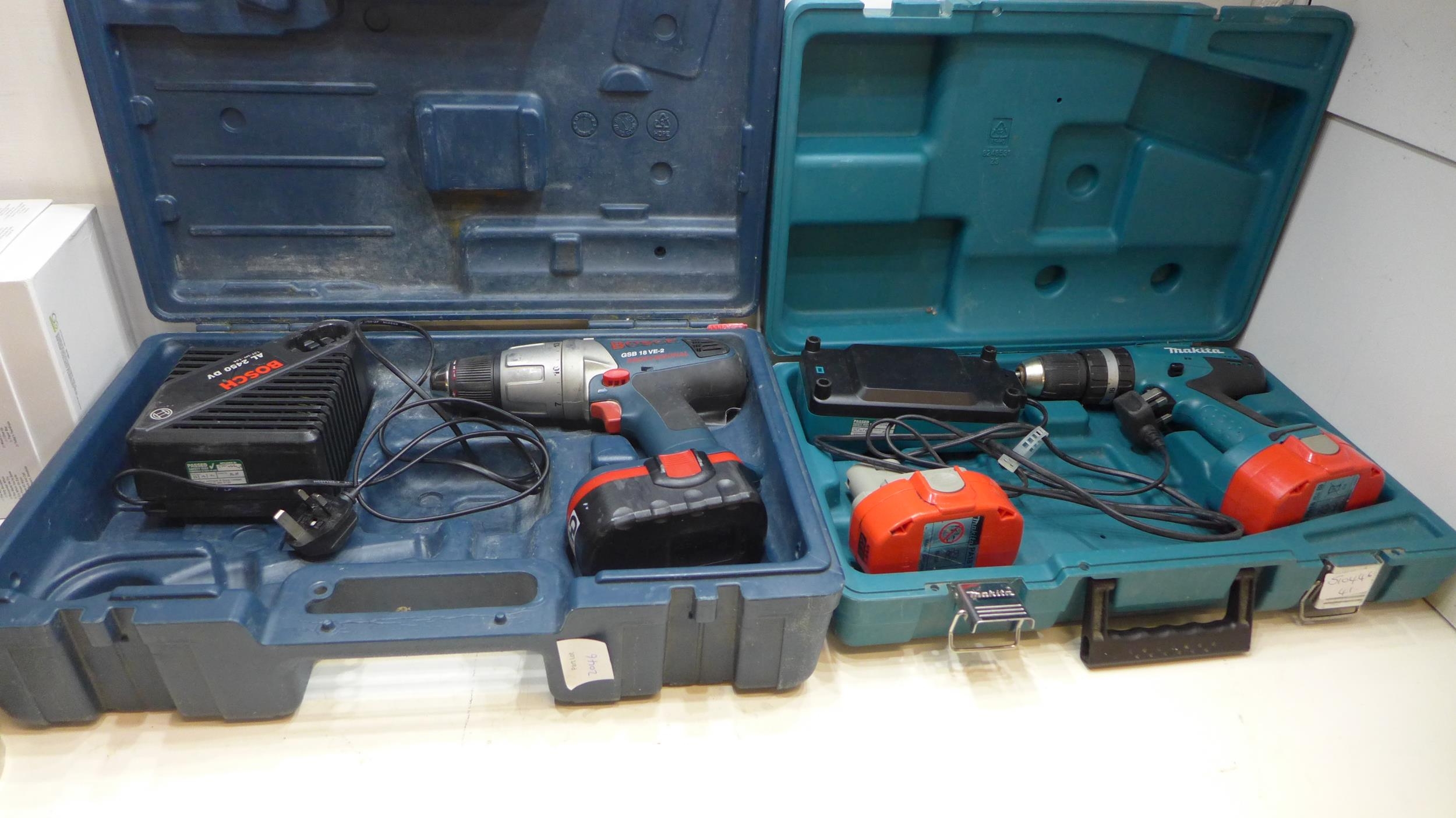 Makita & Bosch cordless drills with chargers & batteries