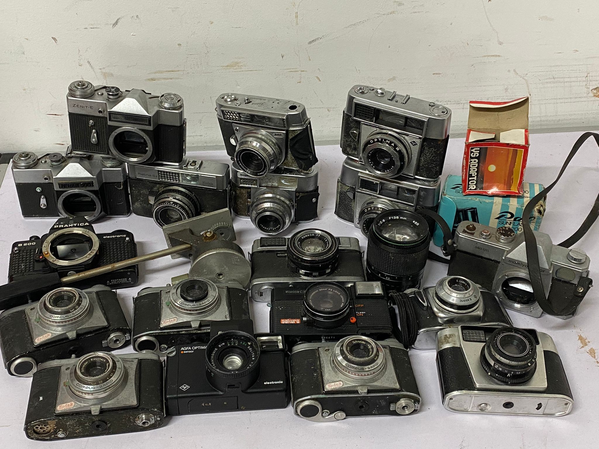 Two trays of assorted cameras, unchecked