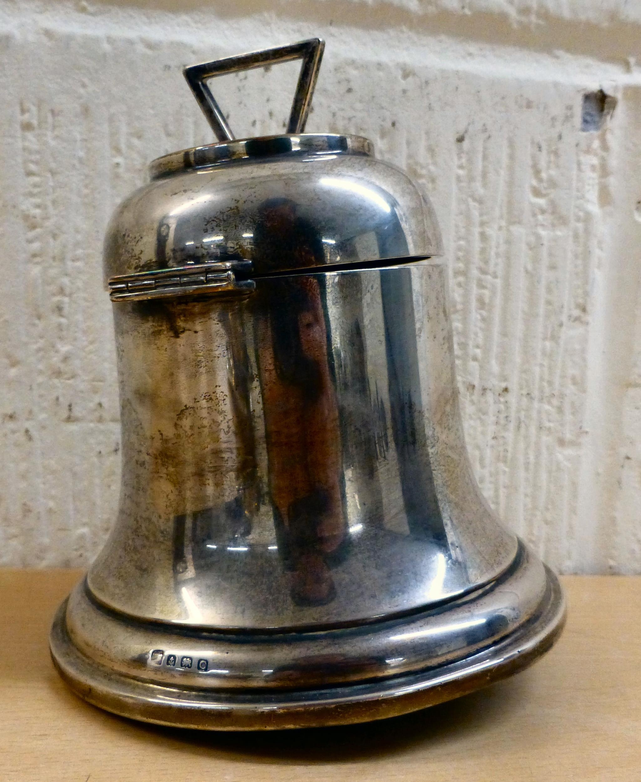 A loaded silver, bell design inkwell with a hinged lid Birmingham 1927