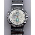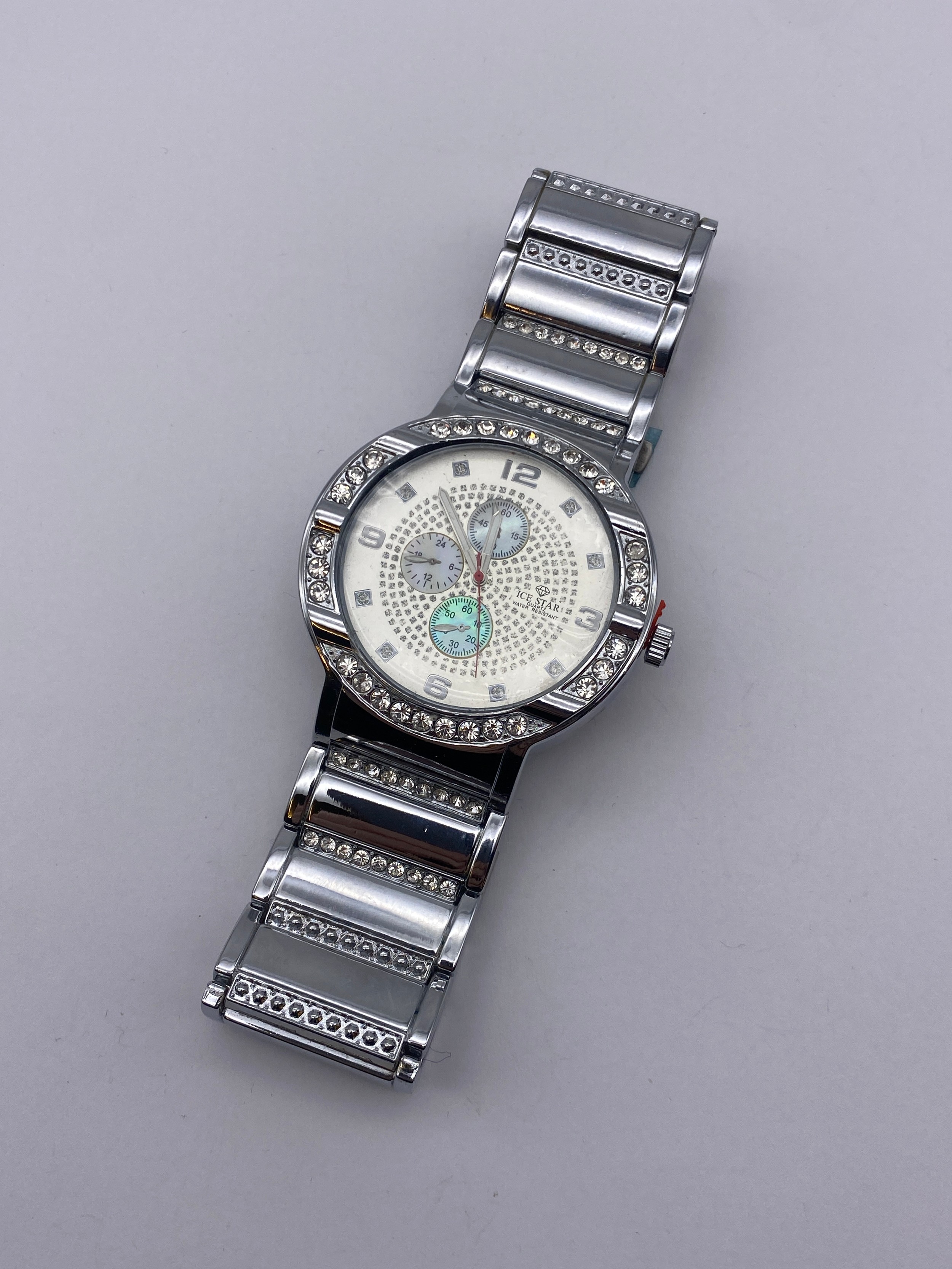 STAINLESS STEEL ICE STAR 4499 OVERSIZED WRIST WATCH WITH DIAMANTE BEZEL AND LINKS