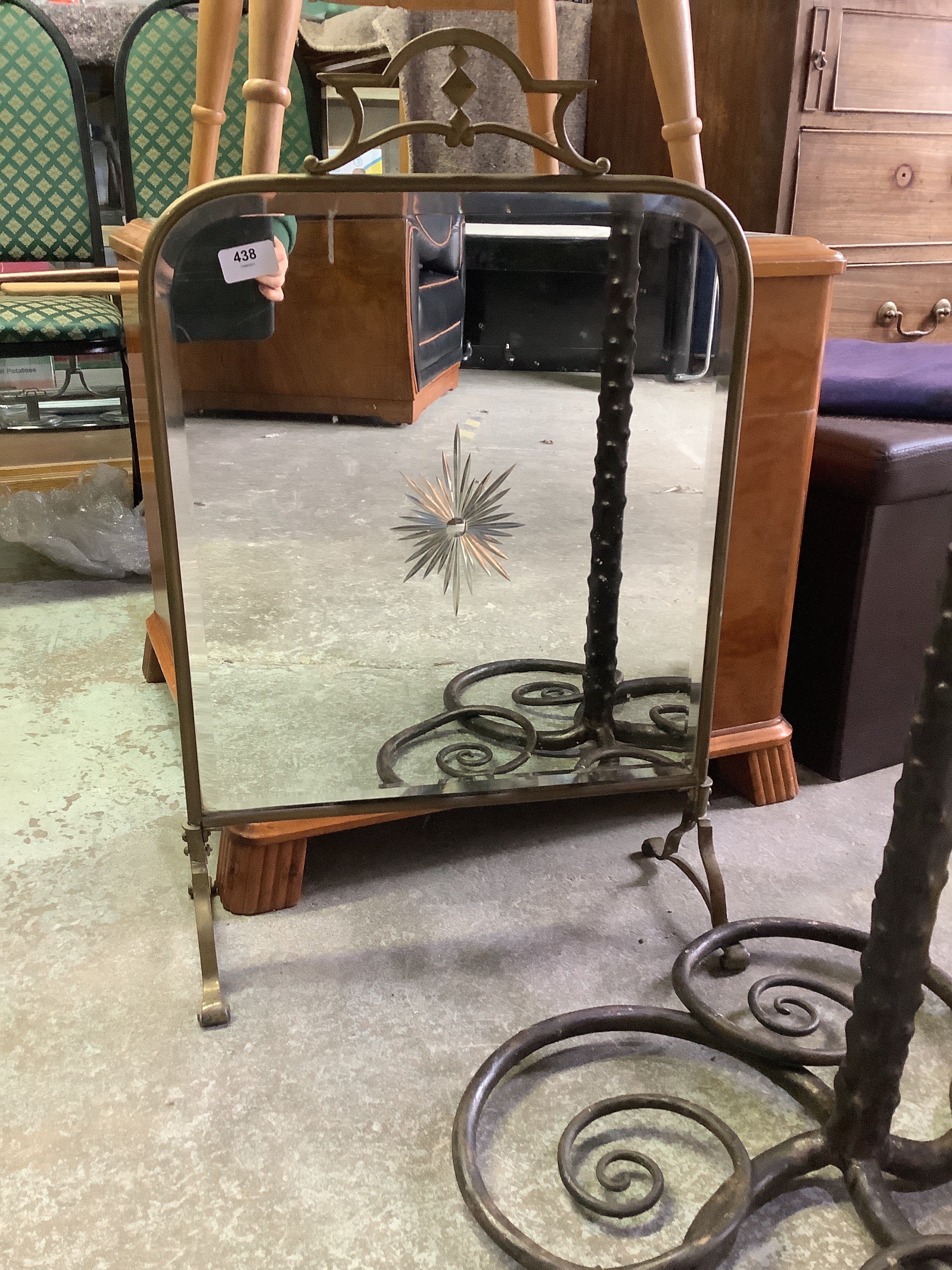 C20th brass framed bevel edge mirror fire screen