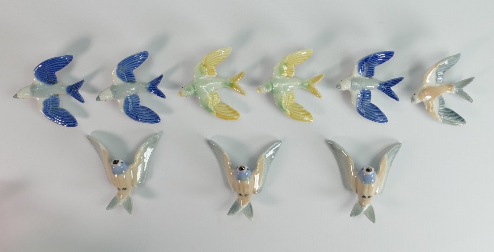A collection of Wade Swallow wall plaques: In different colours and sizes. (9)