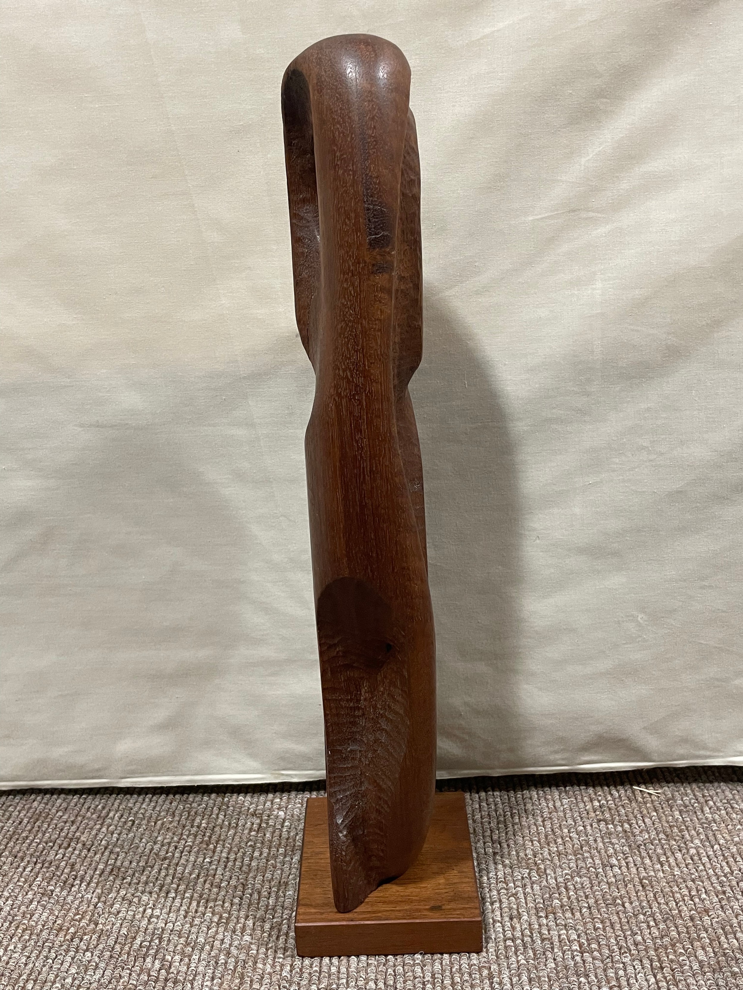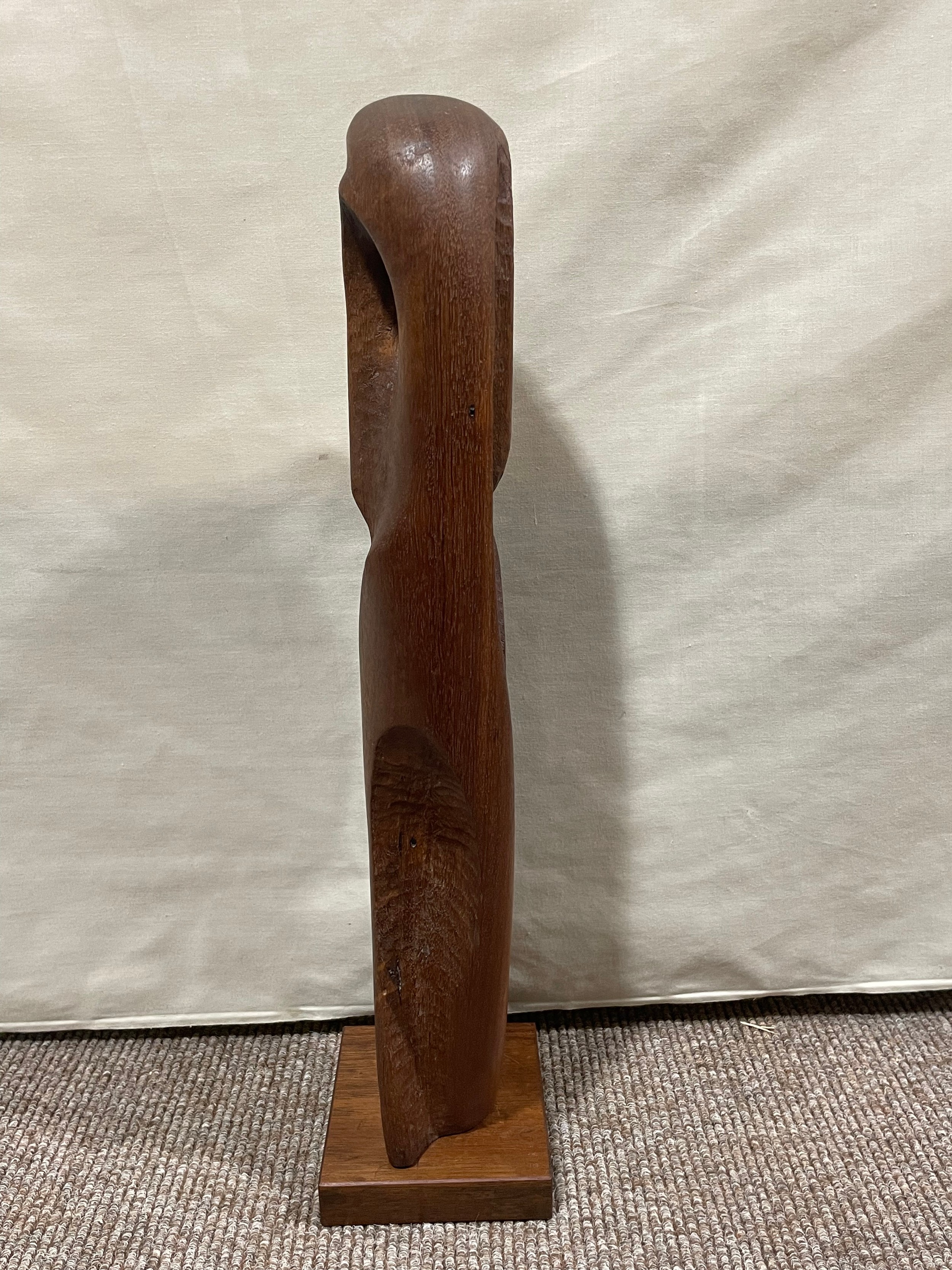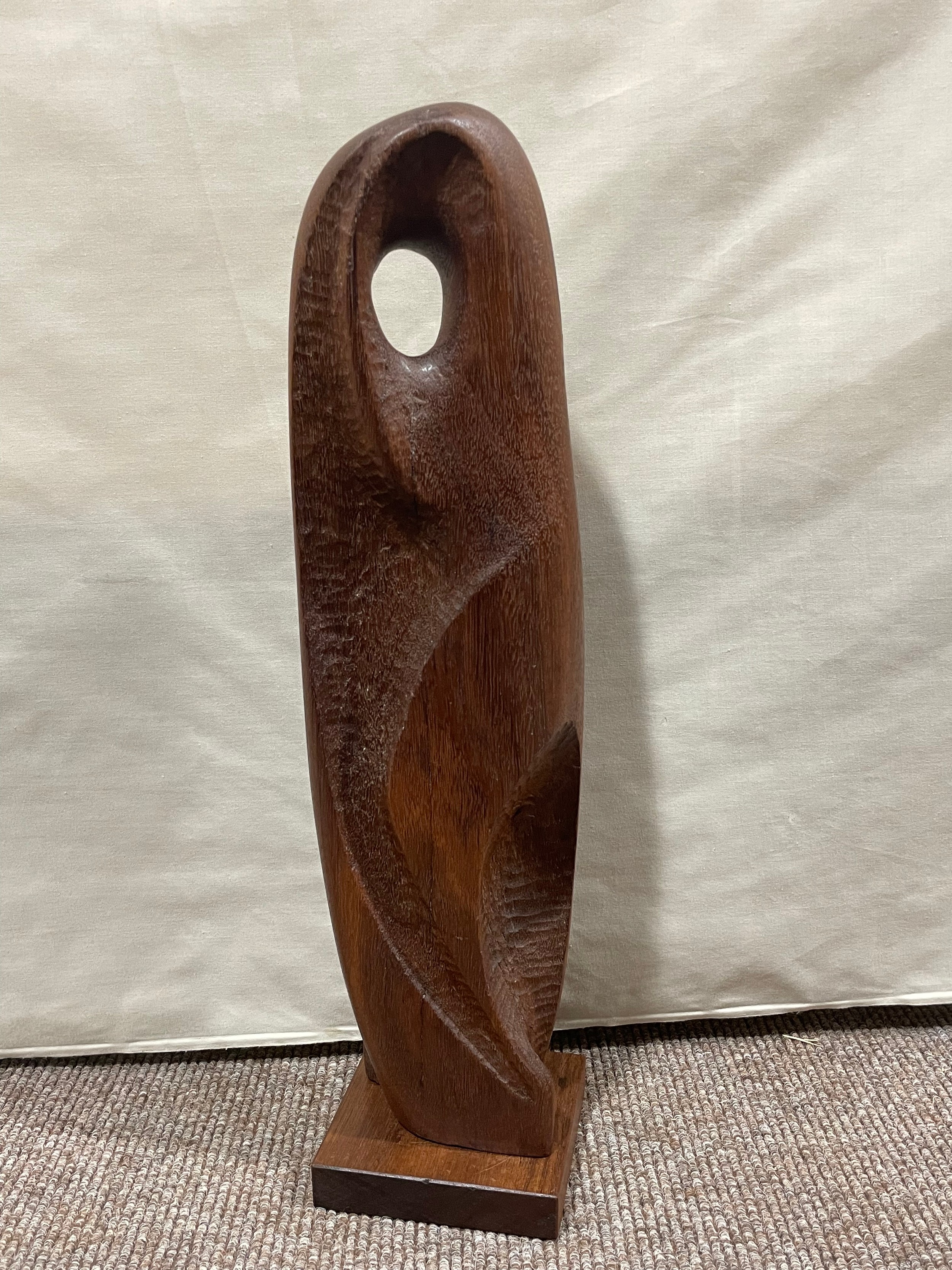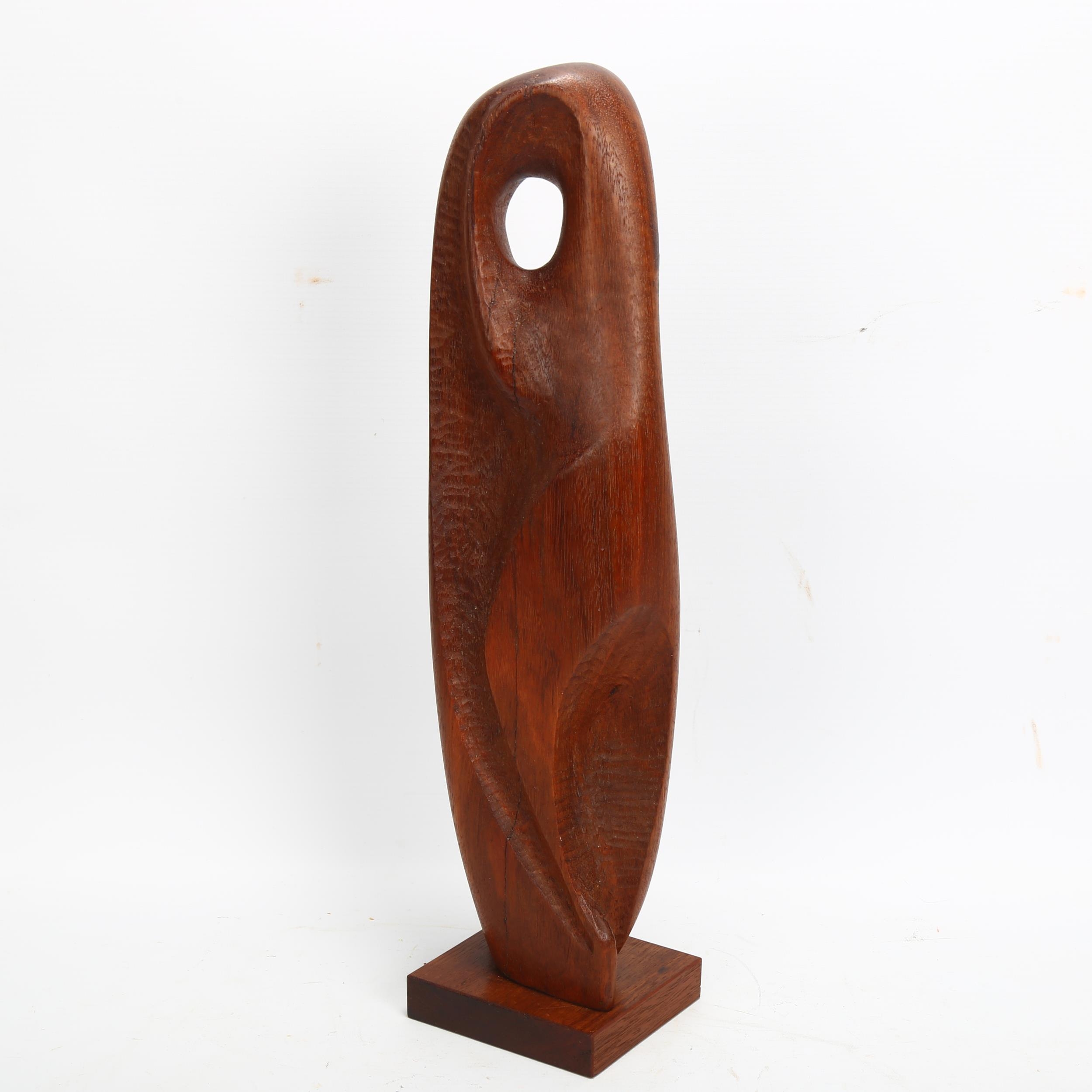 A mid 20th century abstract carved teak sculpture, no makers marks, height 44.5cm