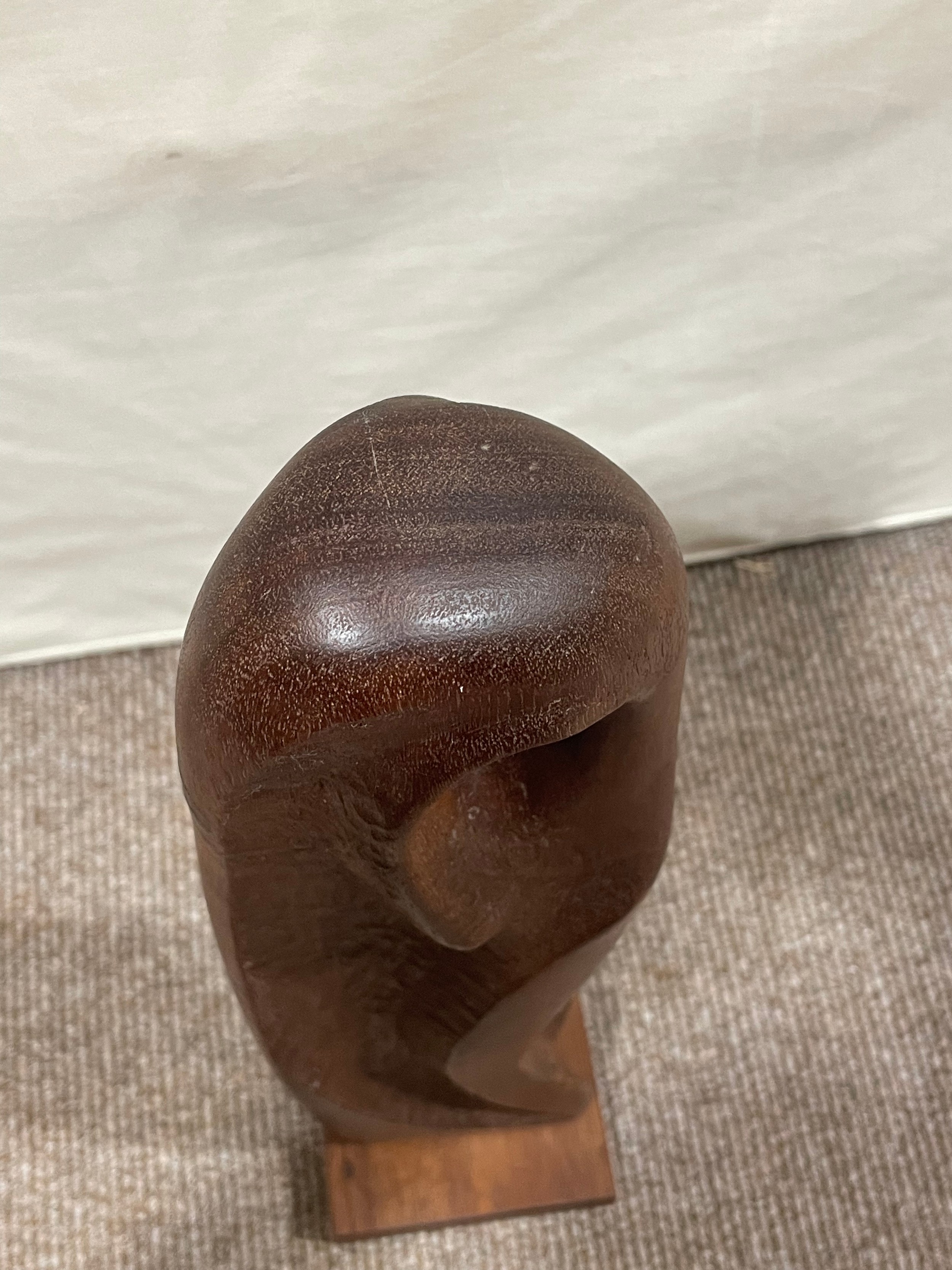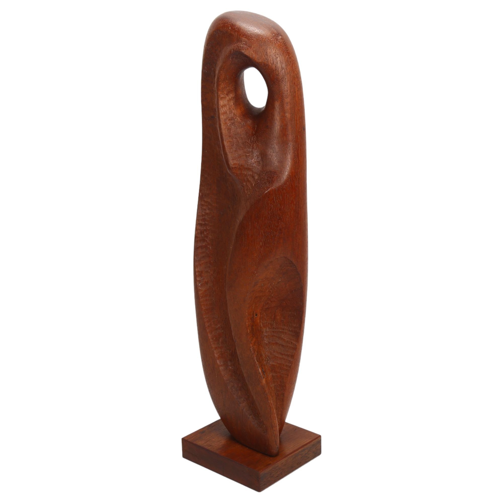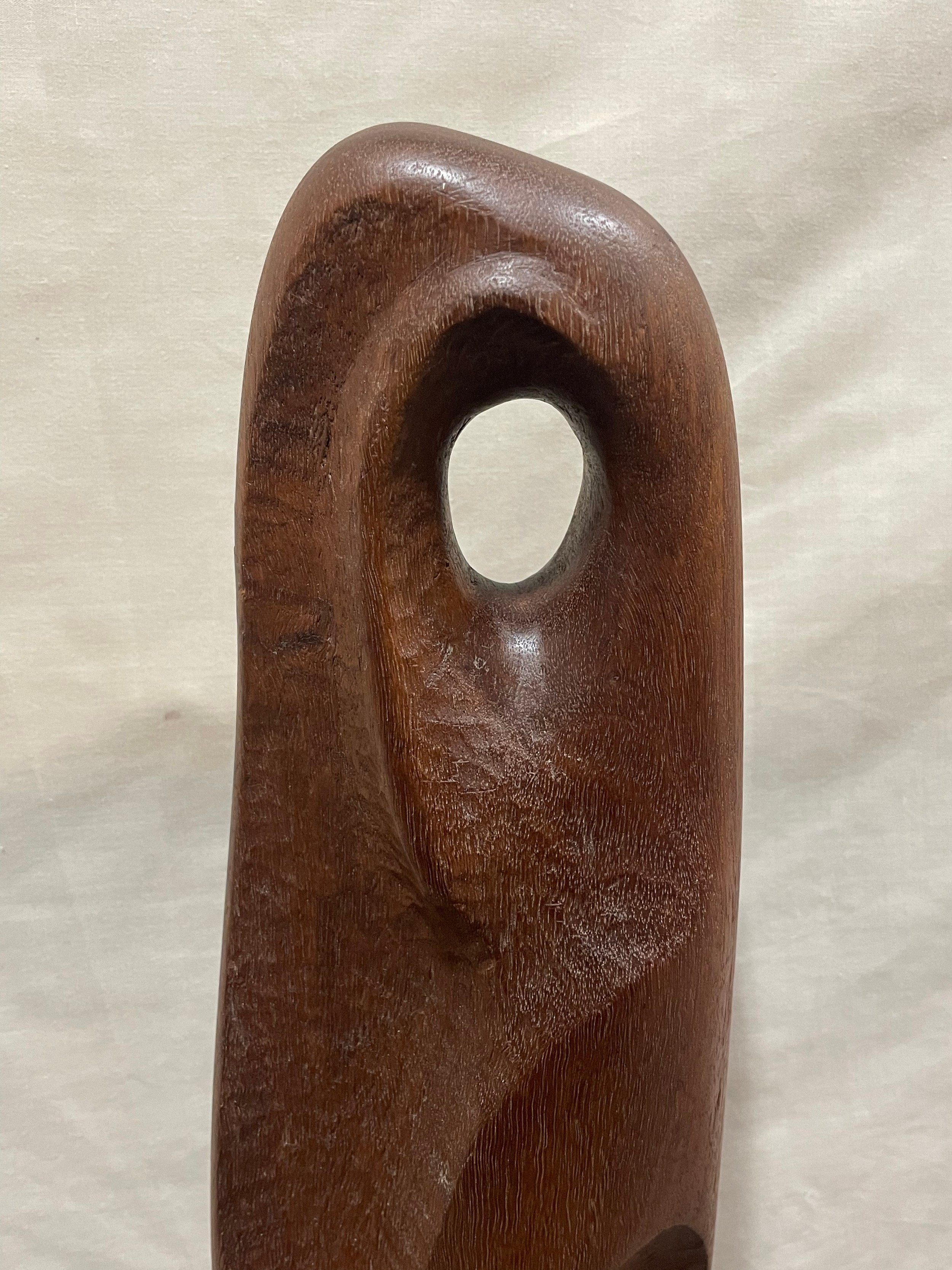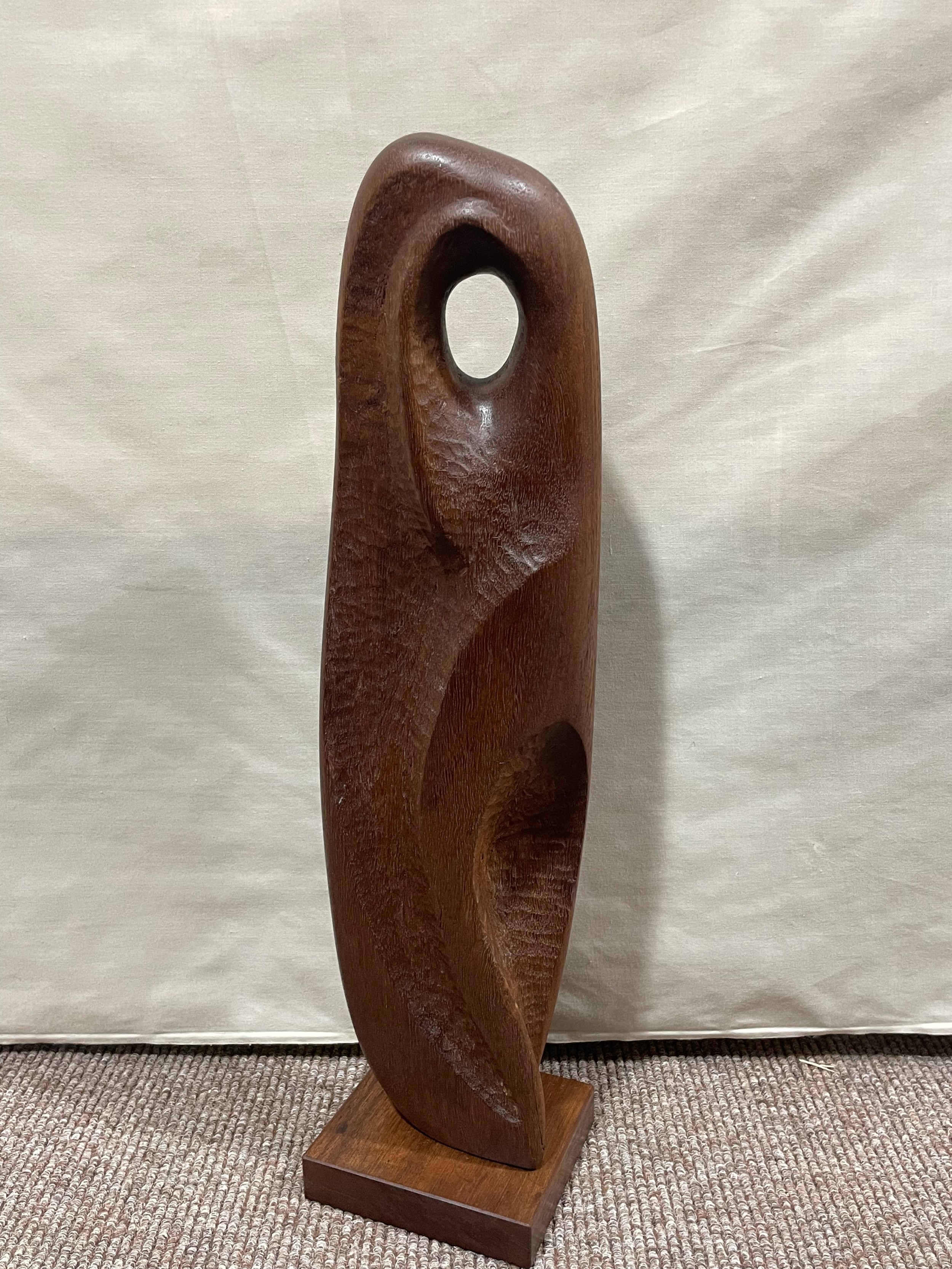 A mid 20th century abstract carved teak sculpture, no makers marks, height 44.5cm