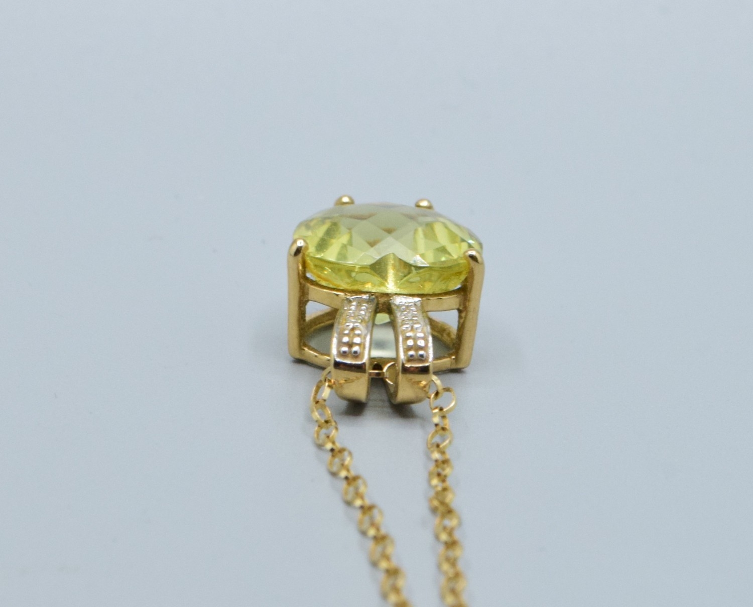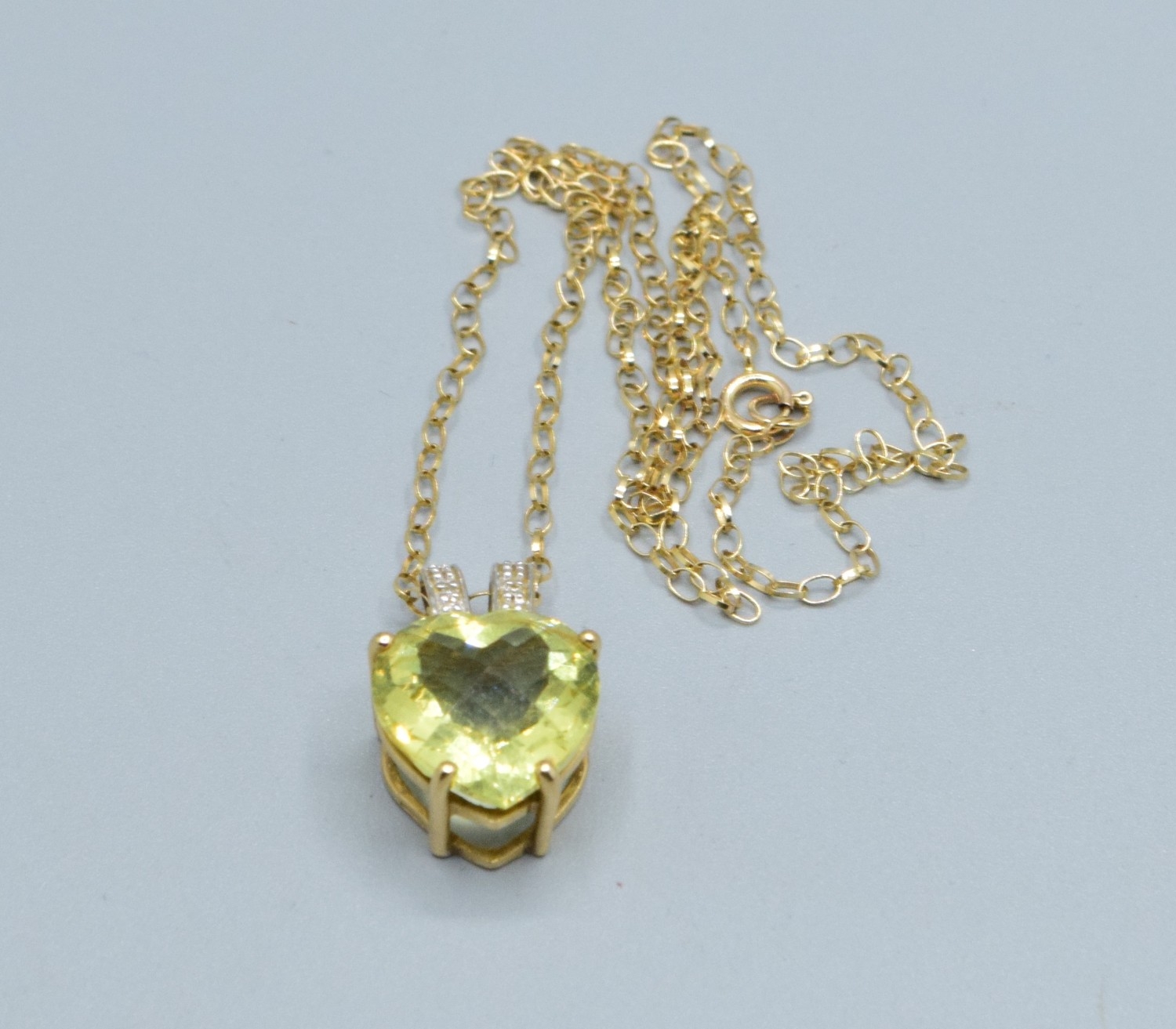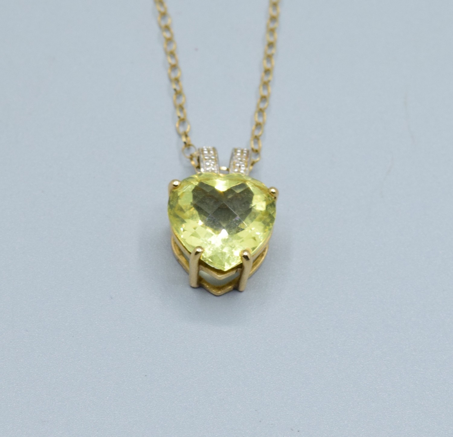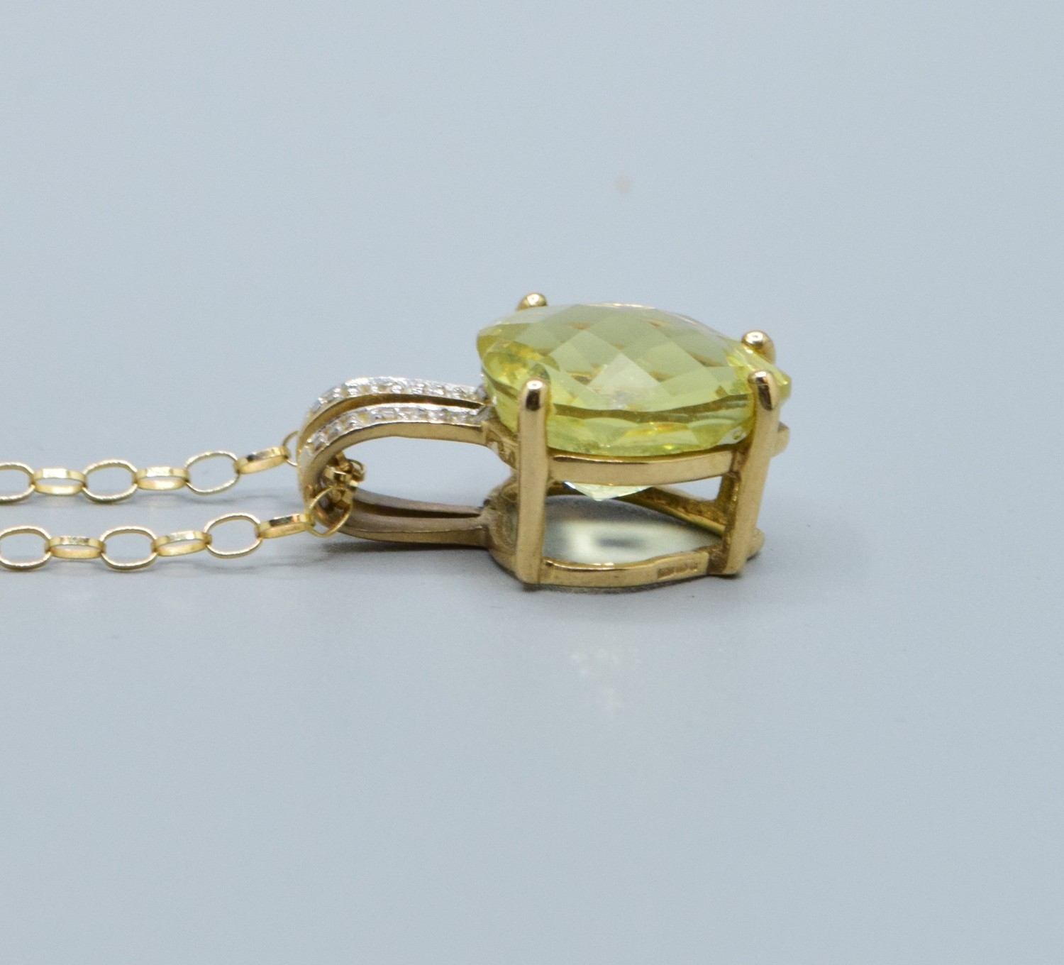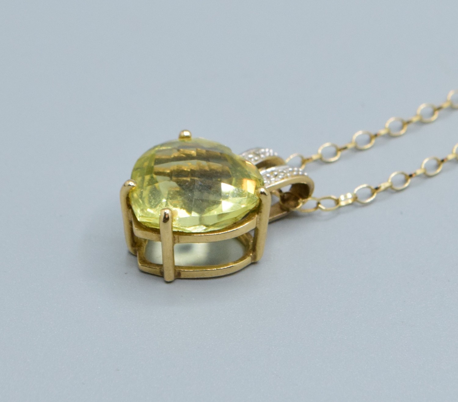 9ct gold ladies Citrine and Diamond pendant necklace of 2.0cm drop on a 9ct gold chain of 44cm long