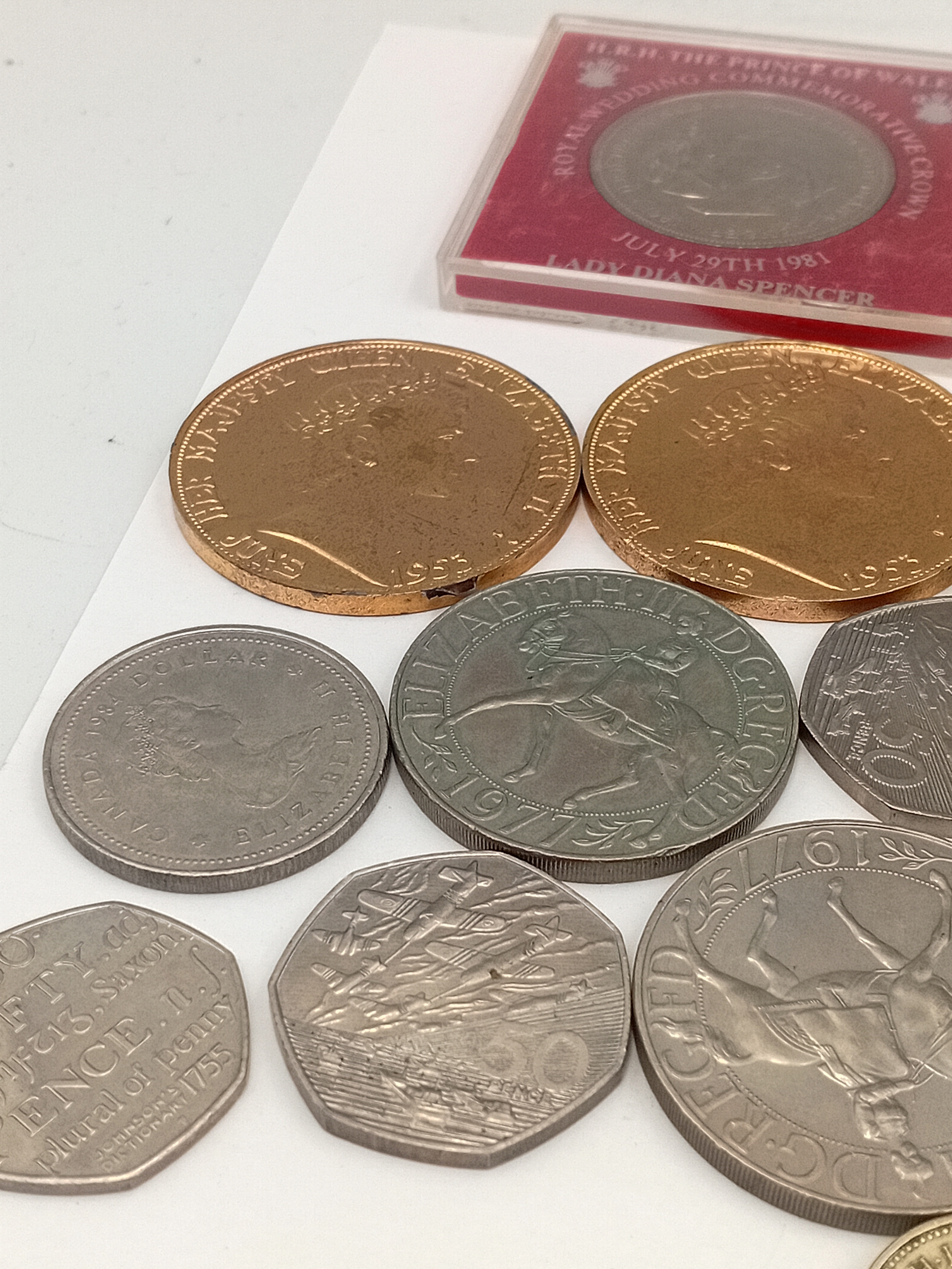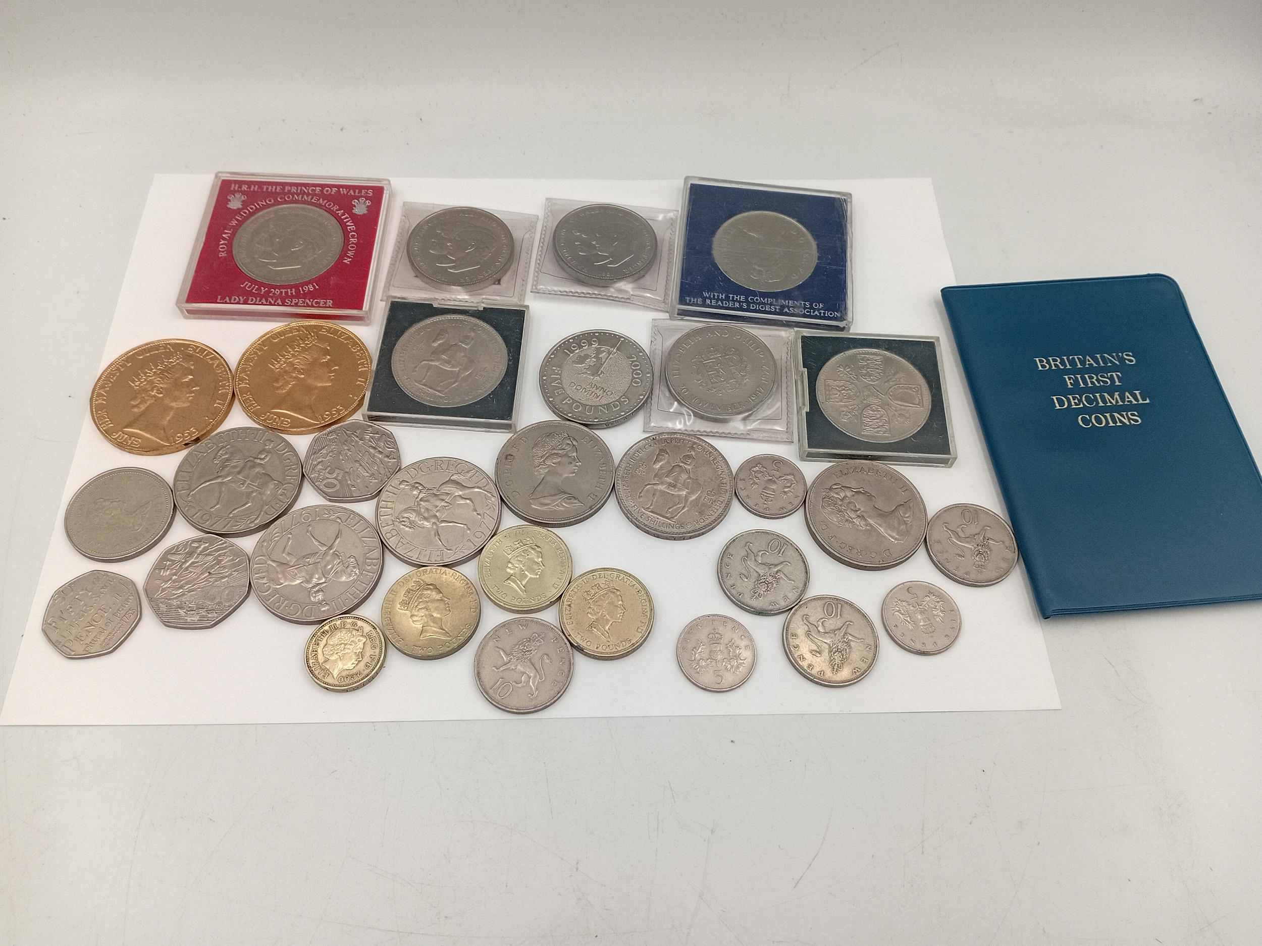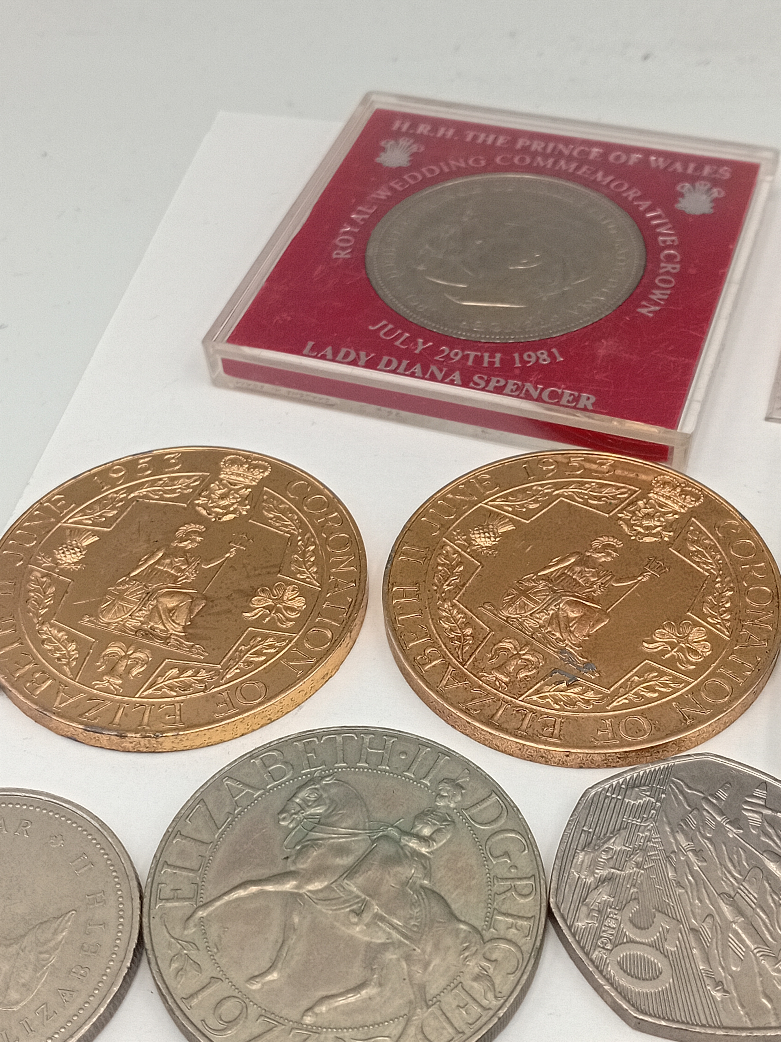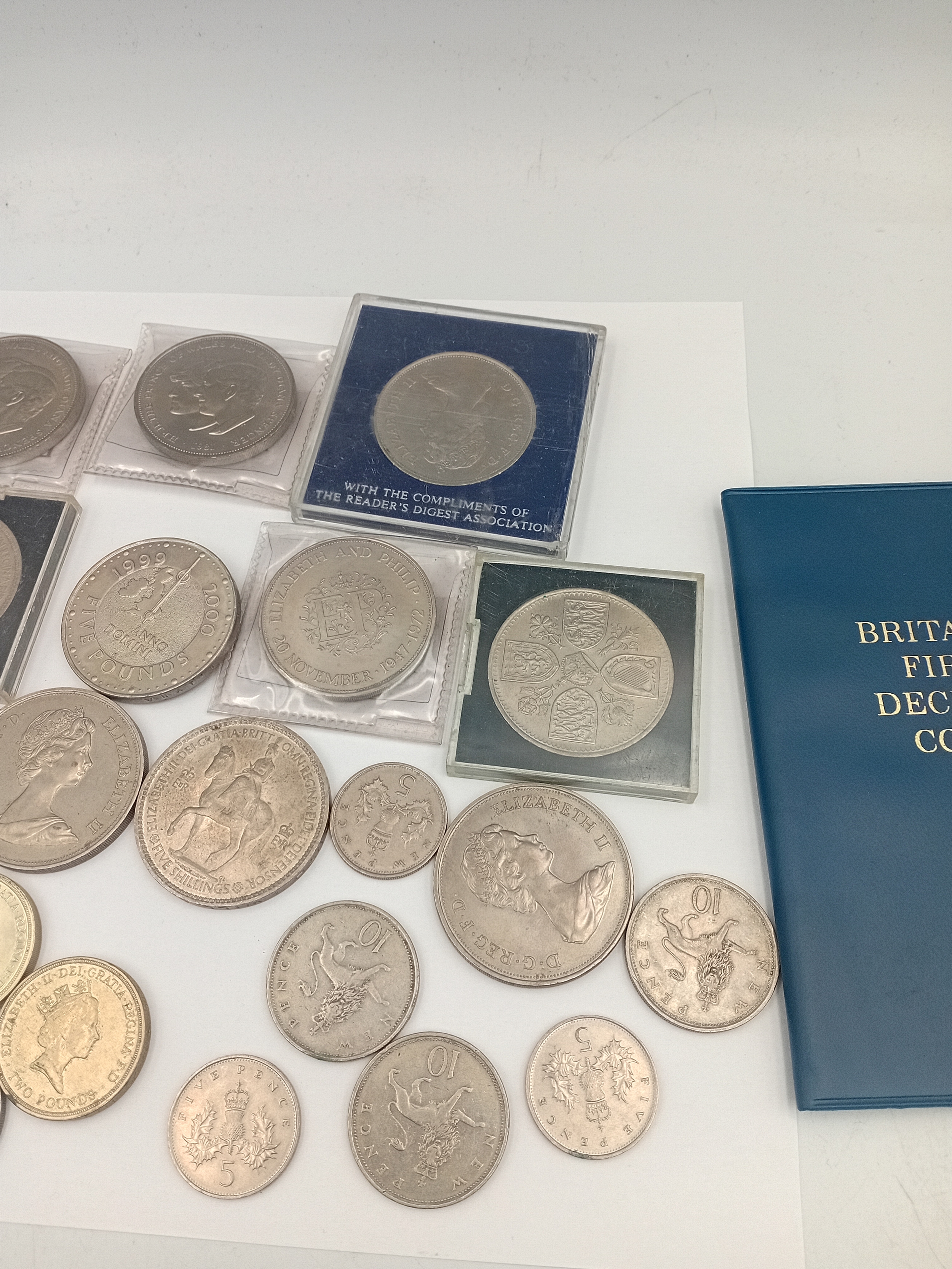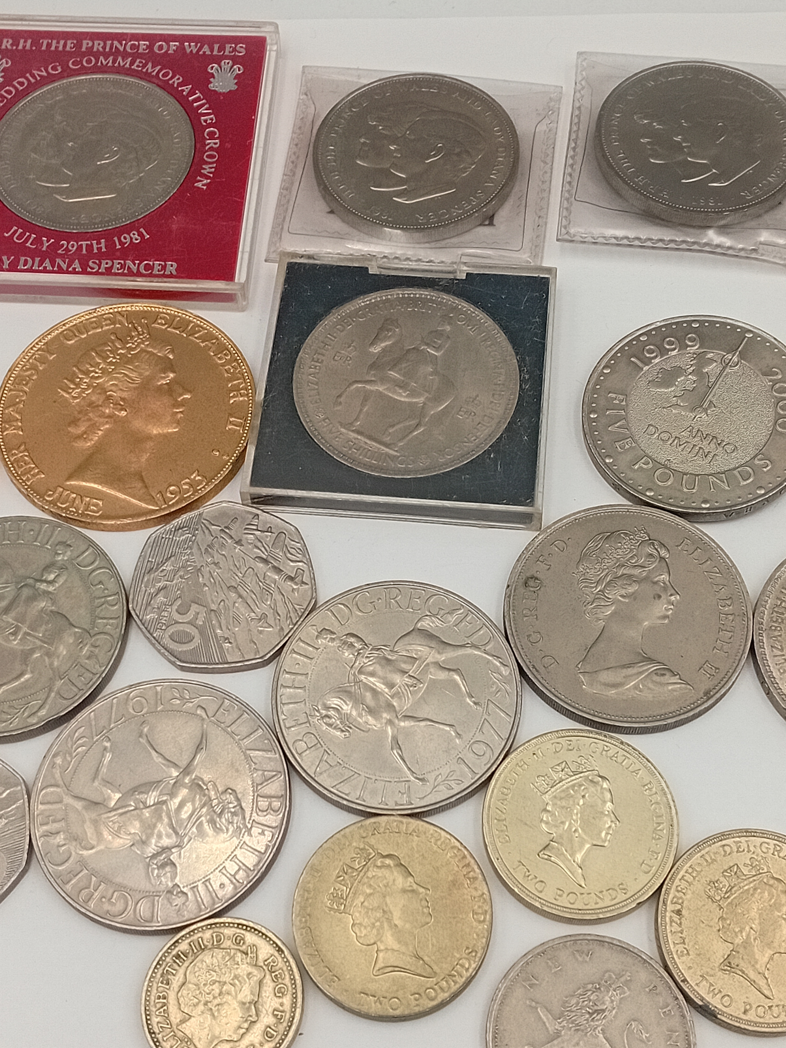 Vintage and modern commemorative and collectible coins to include crowns, 5 pound, two pounds, 50 pence etc.