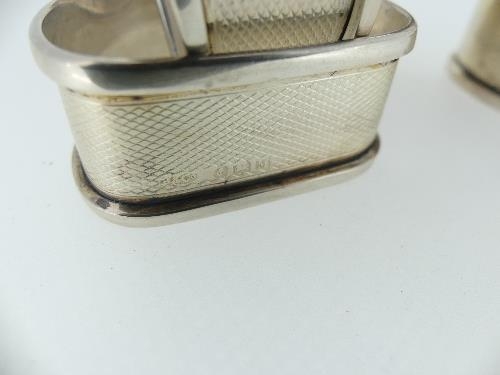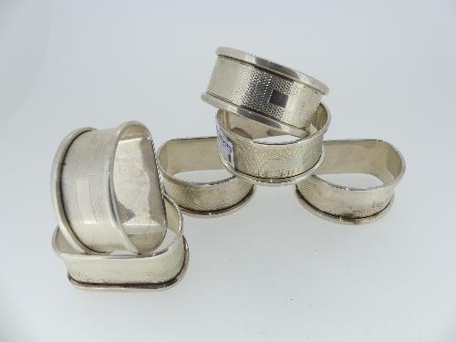 A set of six Edward VIII silver Napkin Rings, hallmarked Birmingham, 1936, of semi-circular form with engine turned decoration, vacant cartouche, approx total weight 2.1ozt (6)
