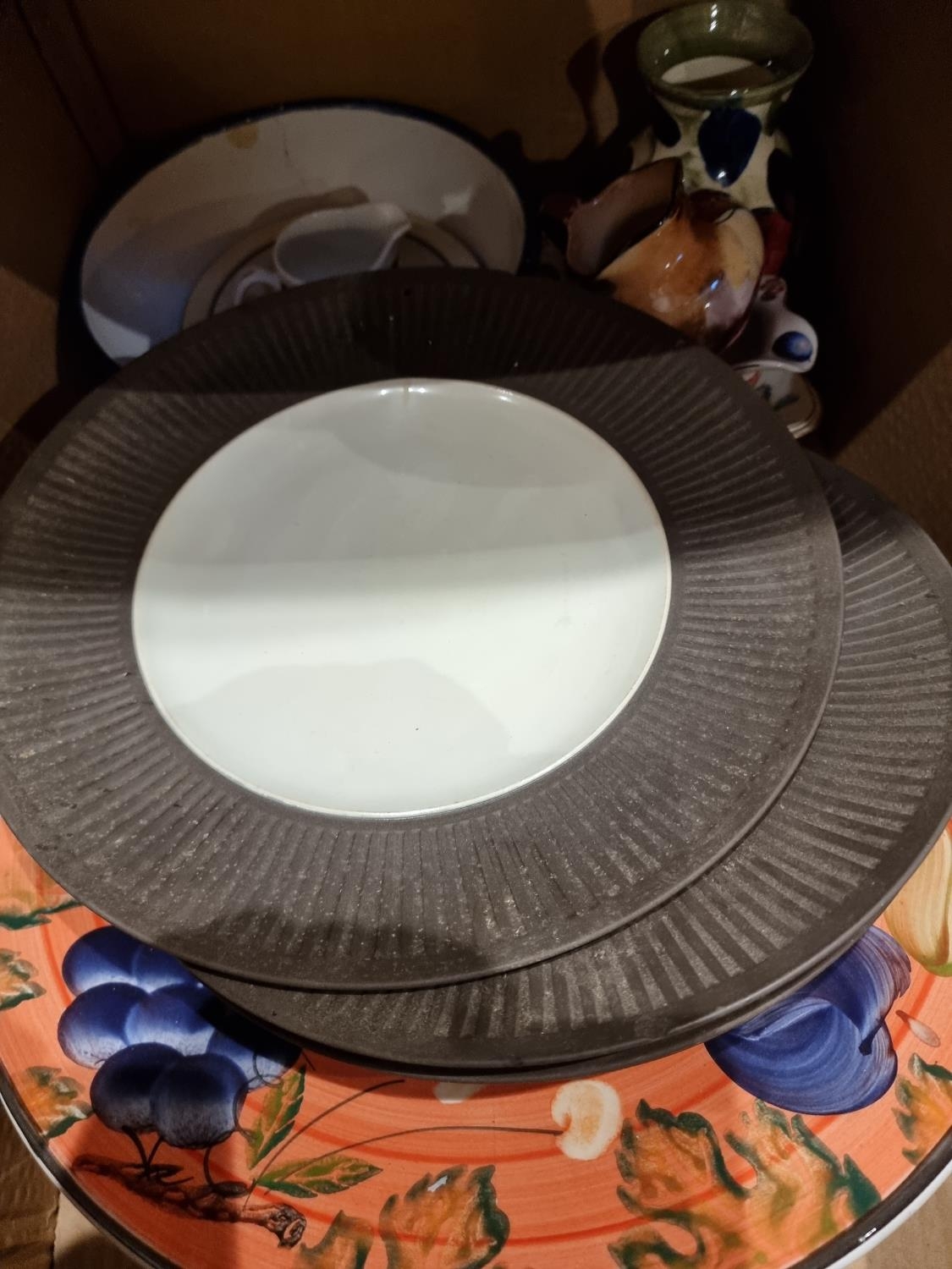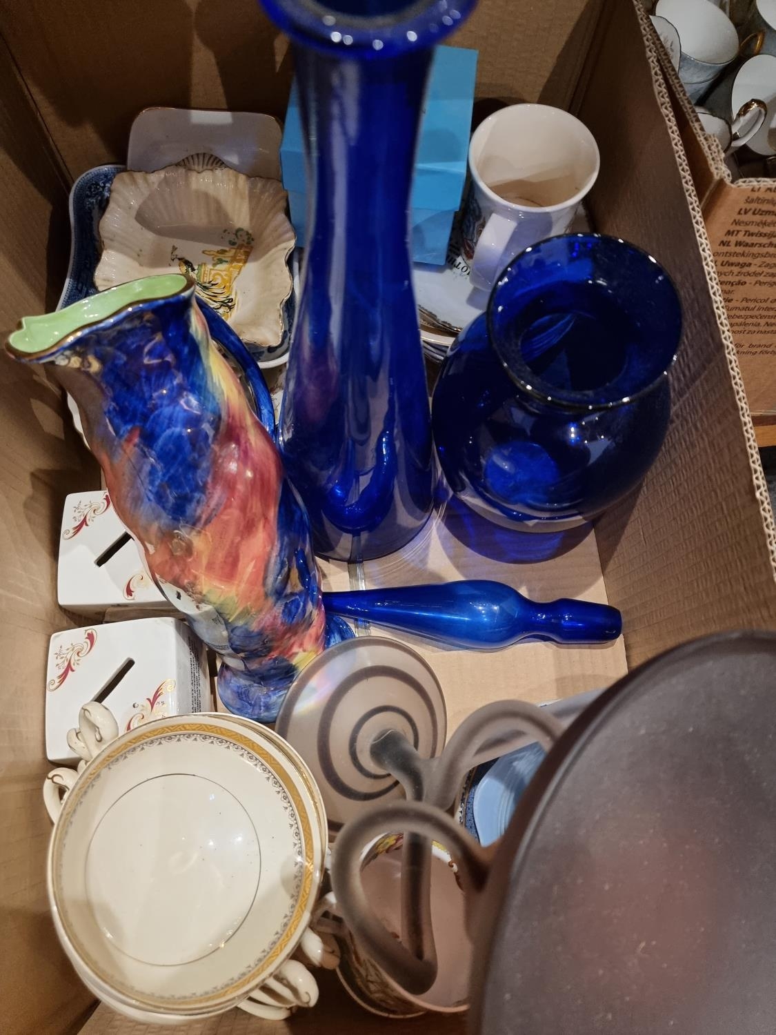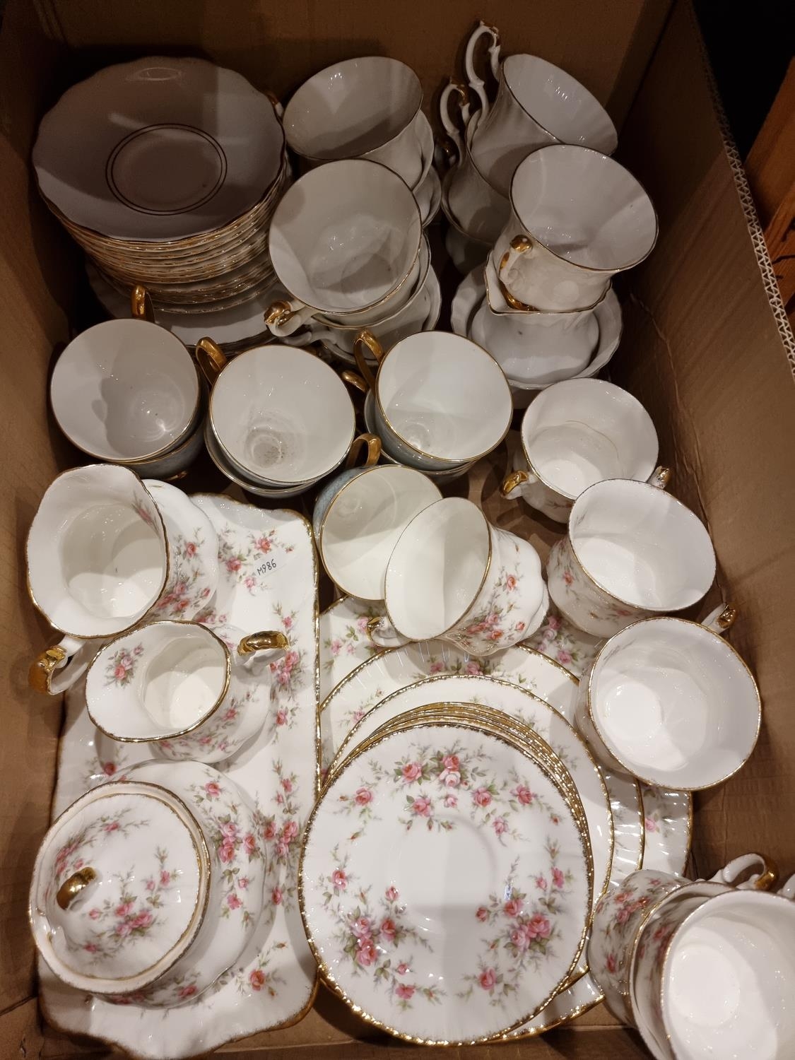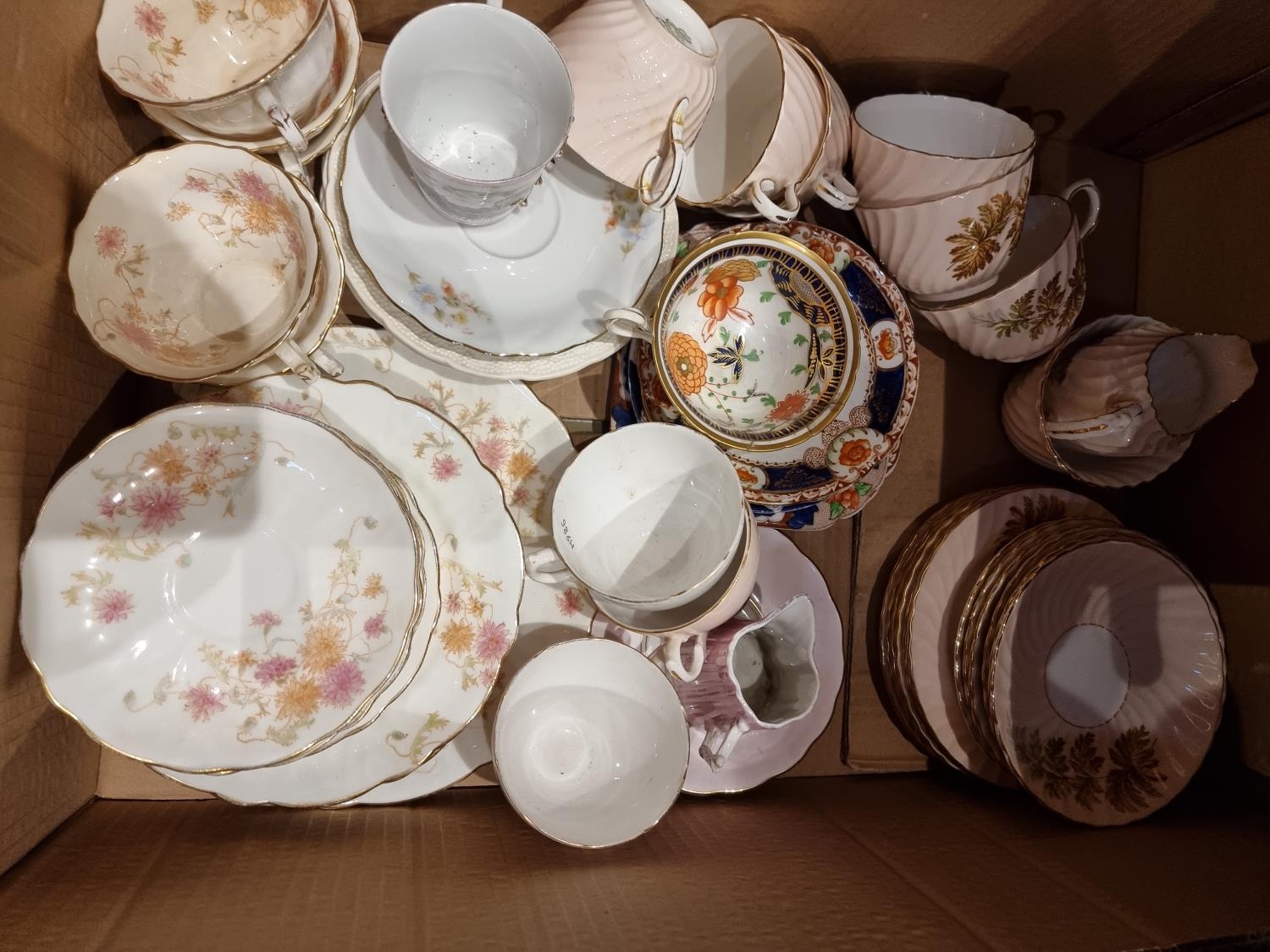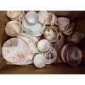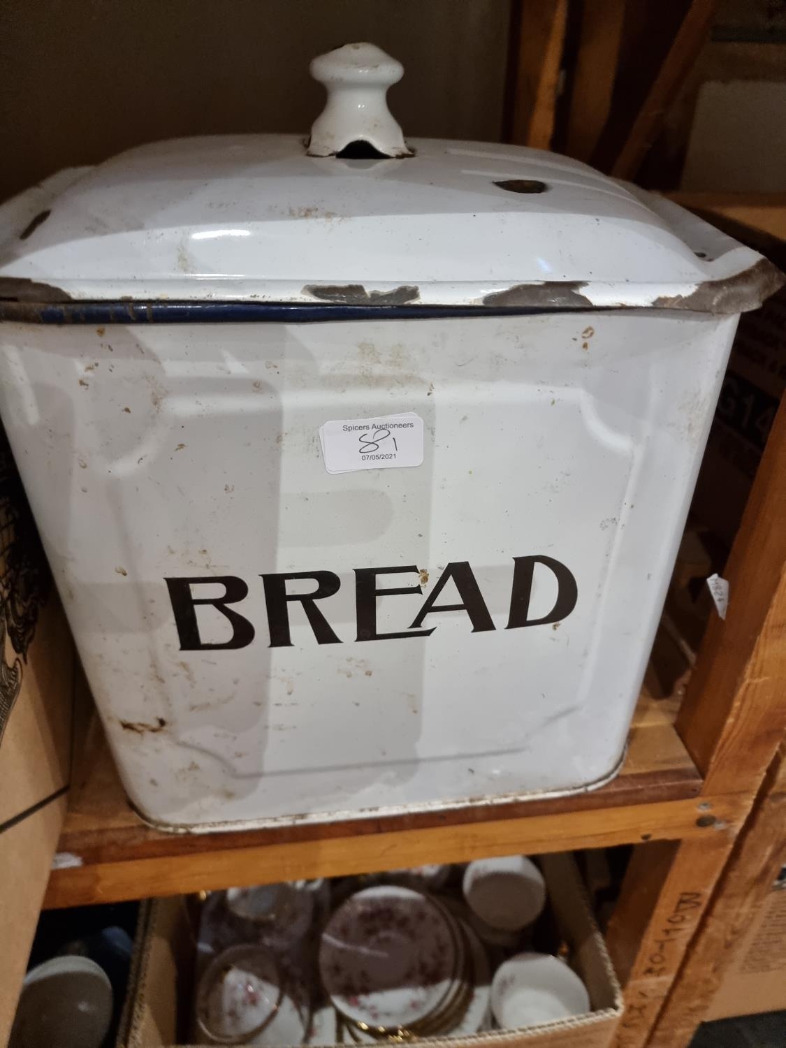 An early enamel white bread bin together with, a quantity of dinner/teaware makers to include- Paragon, Myott and Aynseley (4)