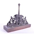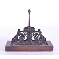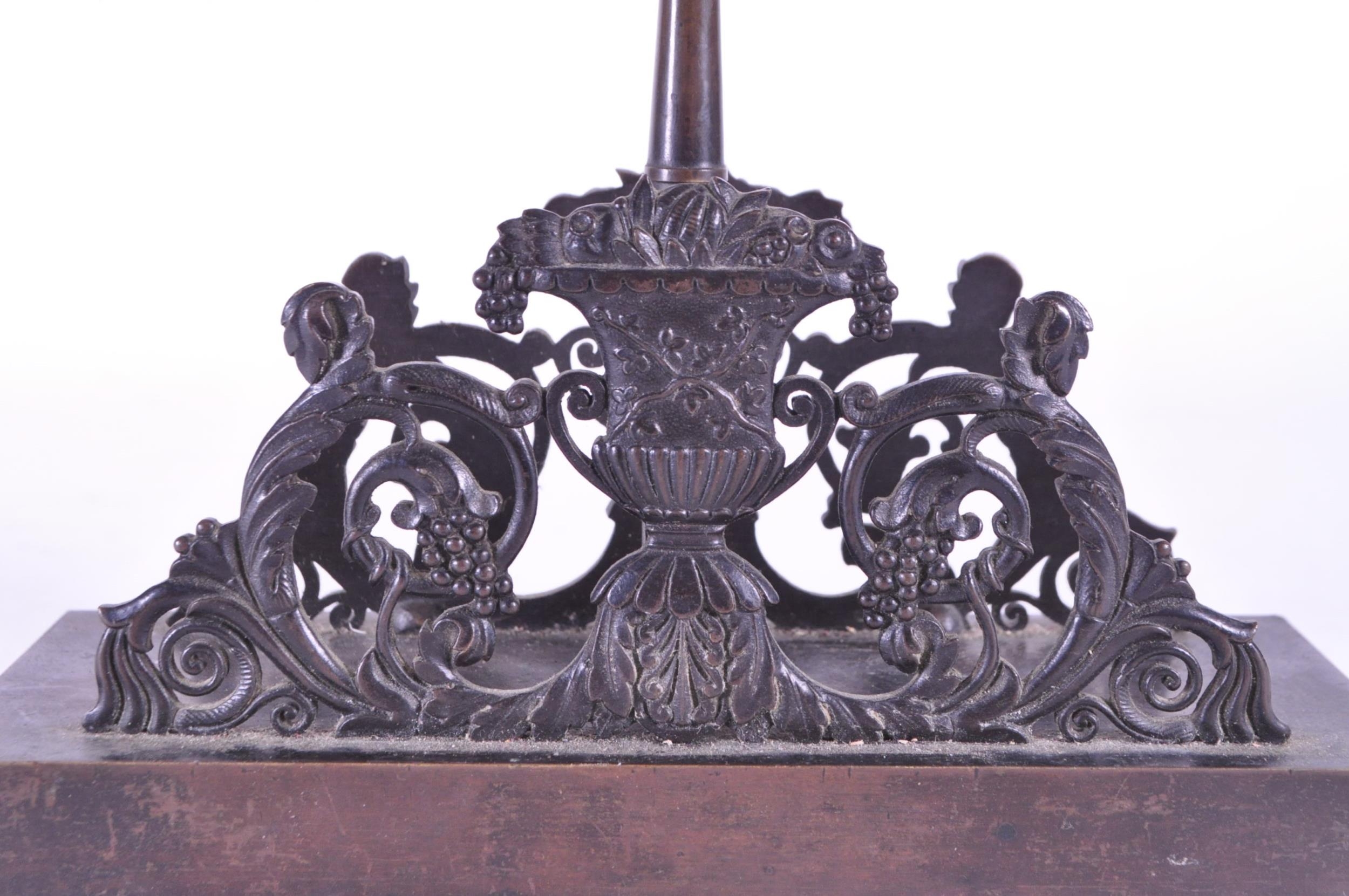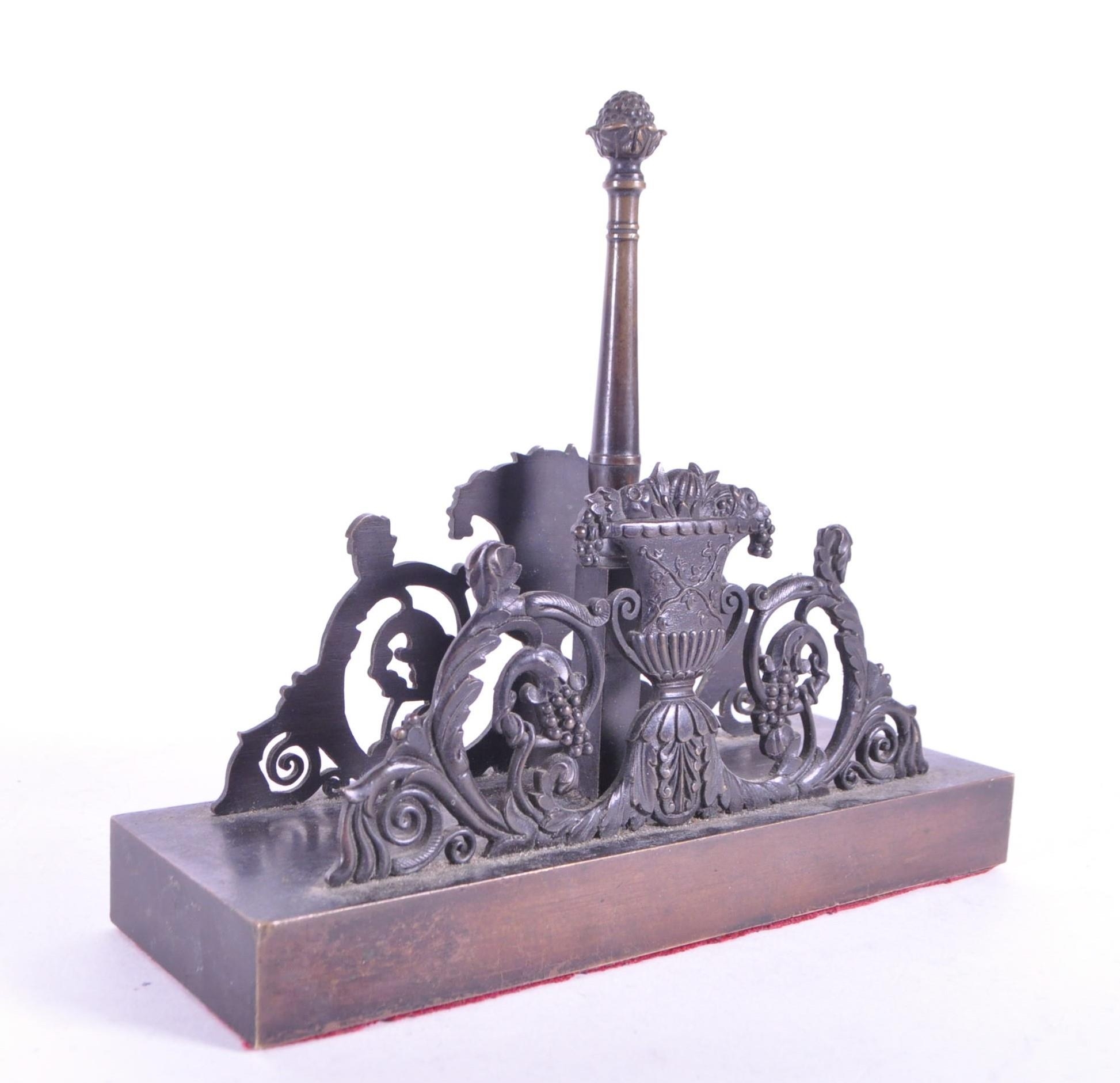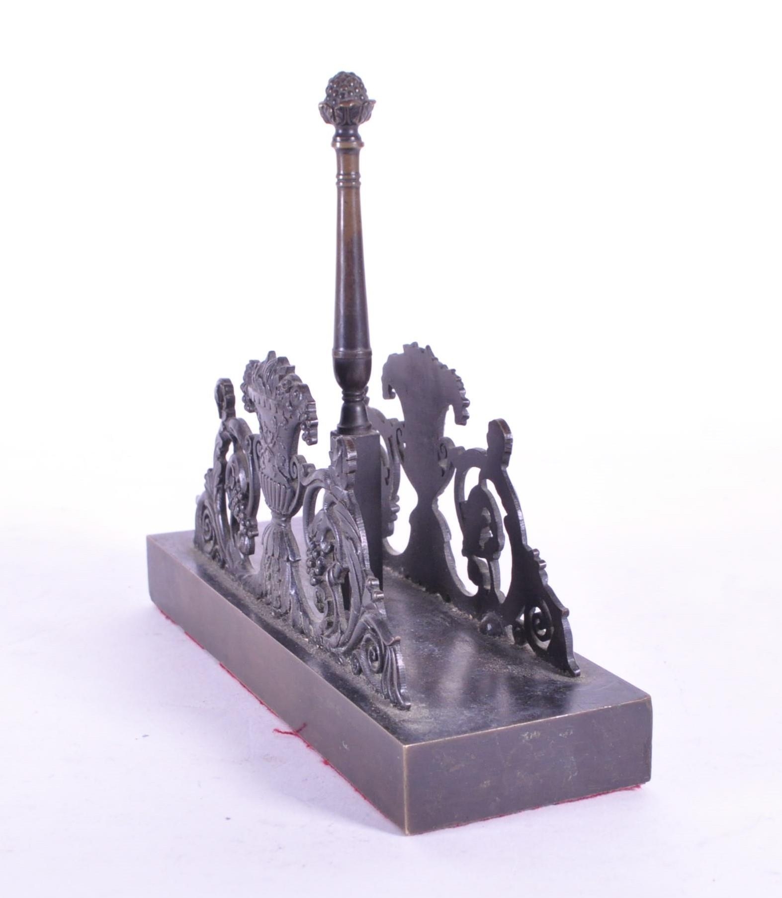 A 19th century bronze letter magazine rack / desk tidy. Neoclassical design with acorn finial to central column. With fruiting vine design and vase to central.Raised on a plinth base.