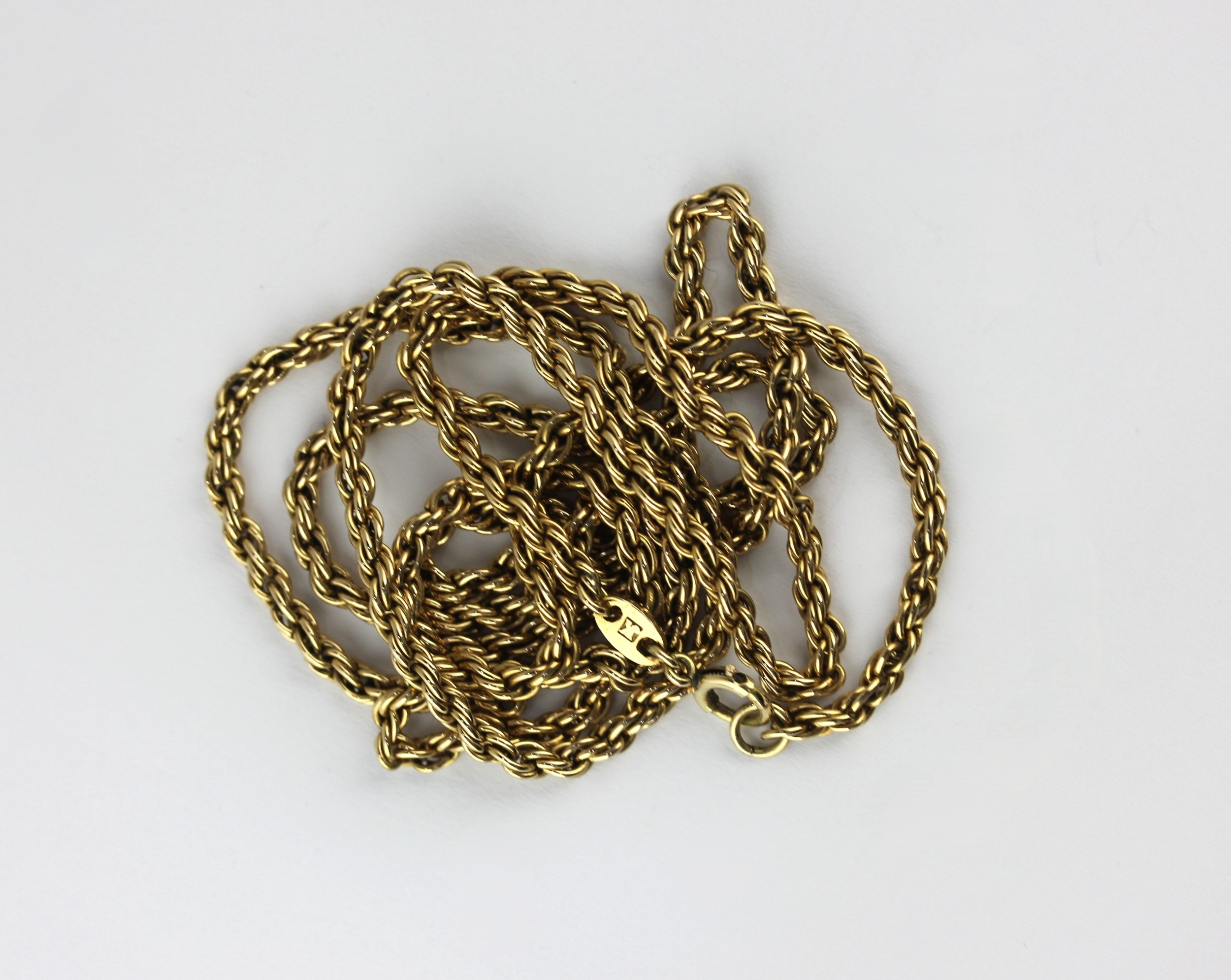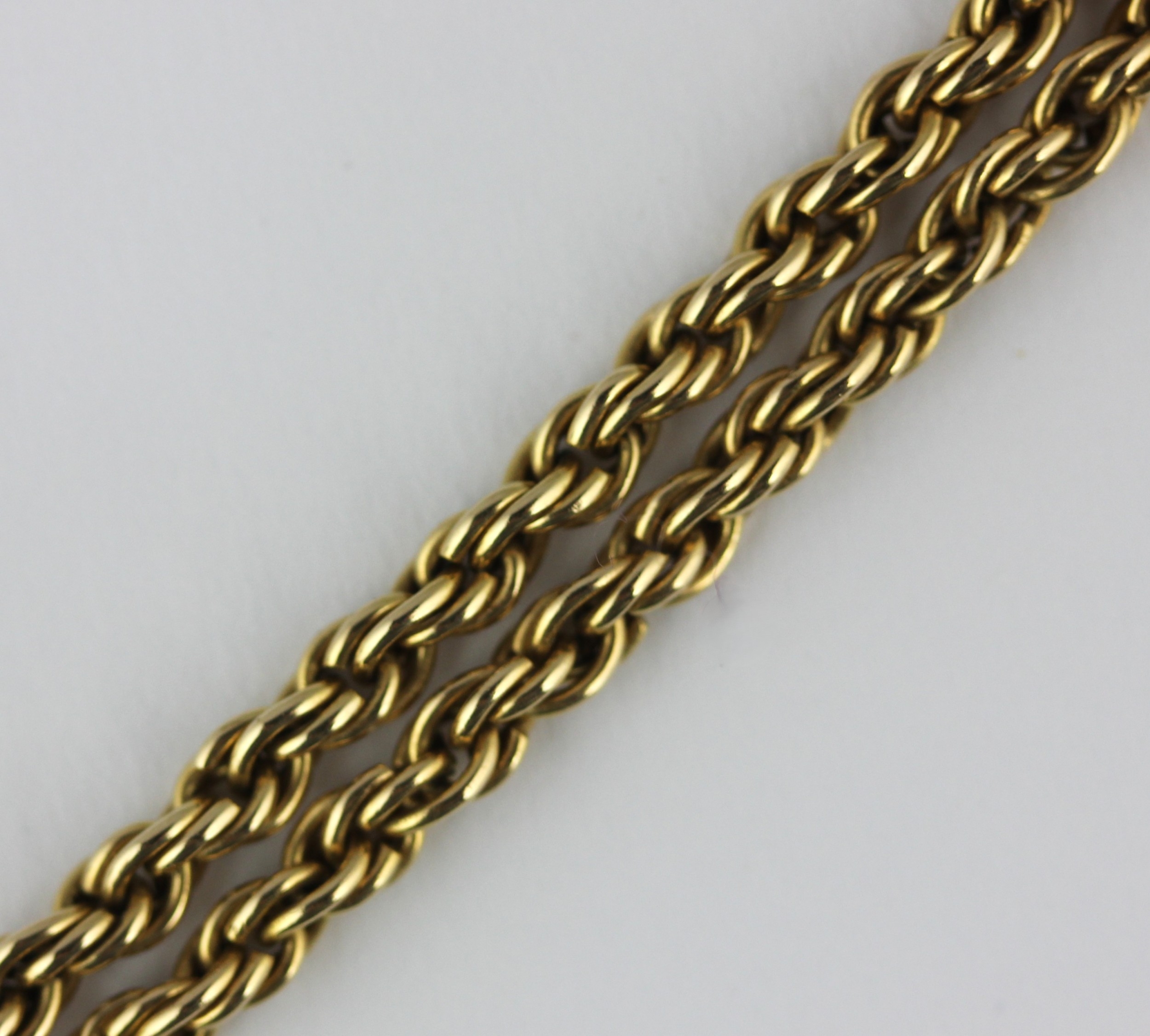 A gold rope twist neck chain detailed 14k 585, on a bolt ring clasp, weight 28.9g.