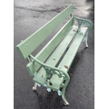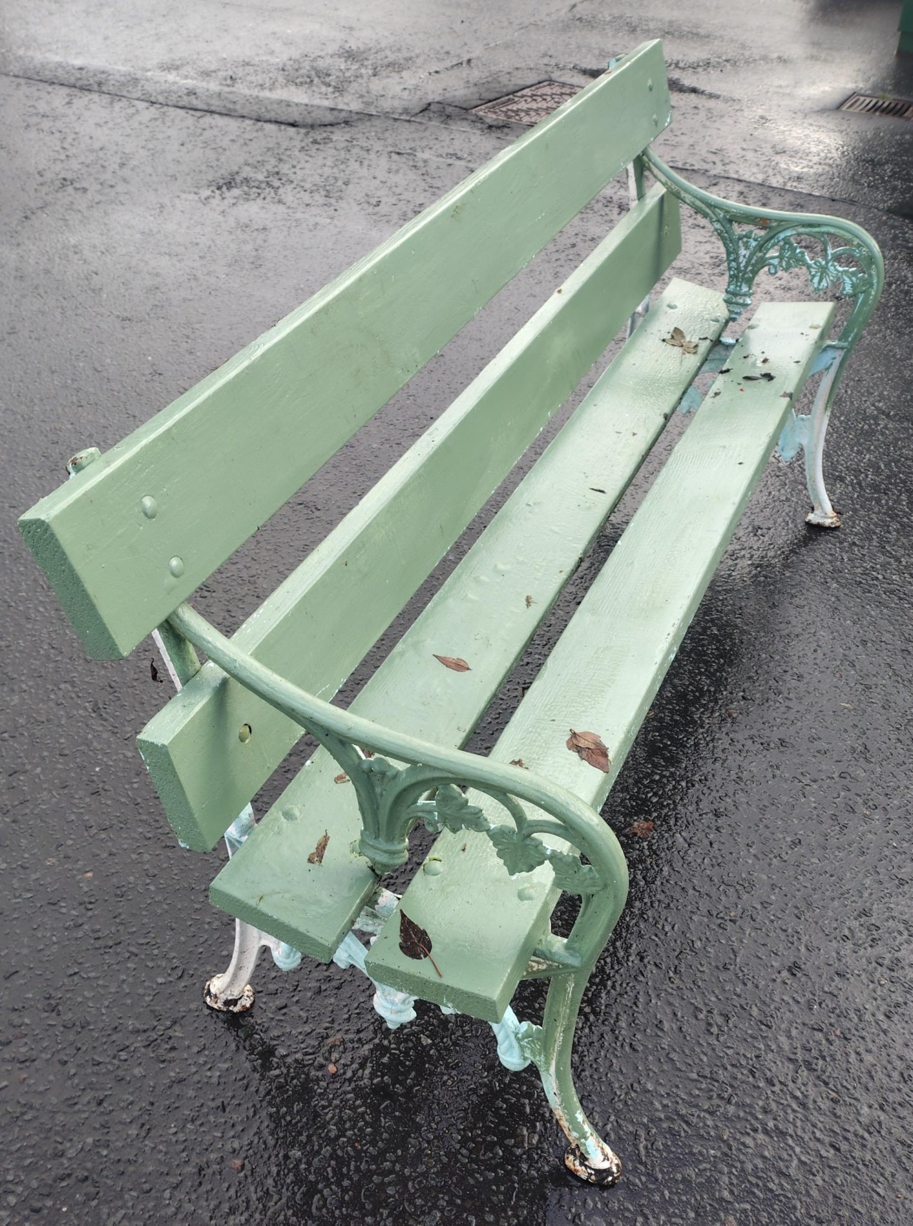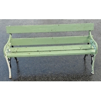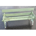A wrought iron two seater garden bench in good usable condition painted green
