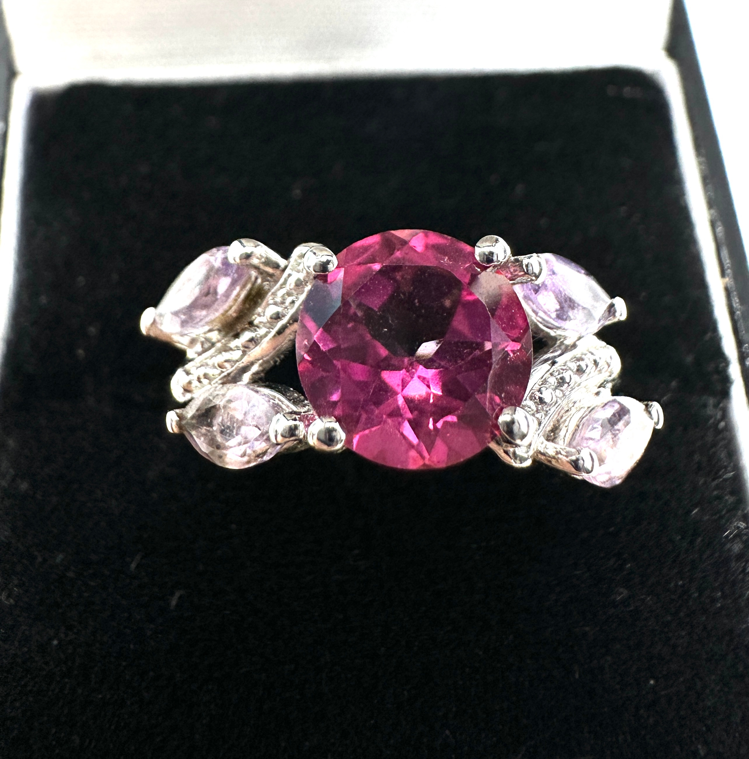 Gemporia Pink Topaz Ring with Rose De France Amethyst in Sterling Silver 3.24cts with c.o.a