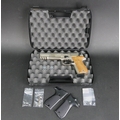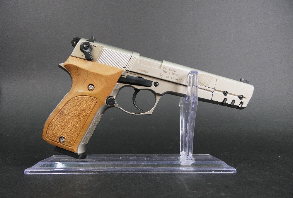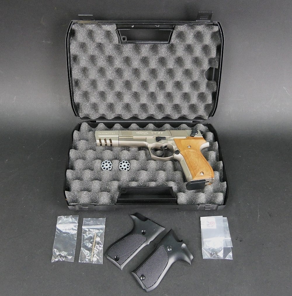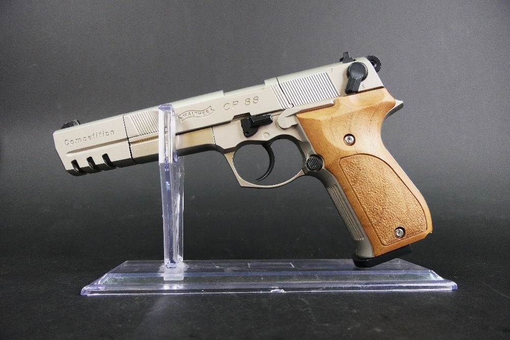 Walther CP88 Competition cal 177 CO2 air pistol, nickel plated with wooden grips and spare black grips, comes with two magazines and case. Serial No. A150829688. WE CANNOT POST AIR GUNS TO PRIVATE ADDRESSES. POSTAGE TO REGISTERED FIREARMS DEALERS ONLY.