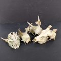 A small group of deer skulls and antlers