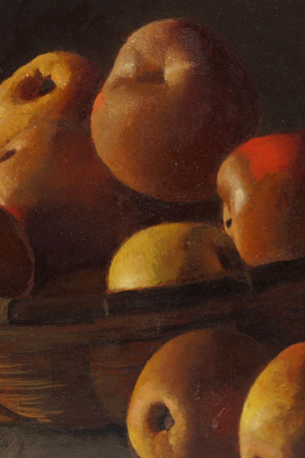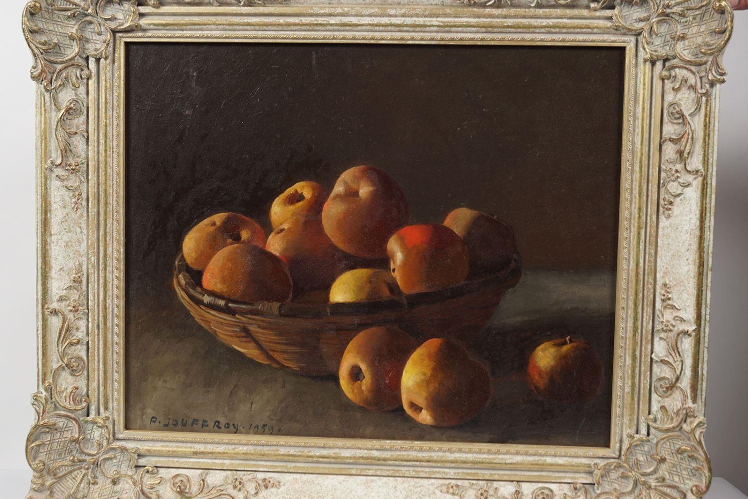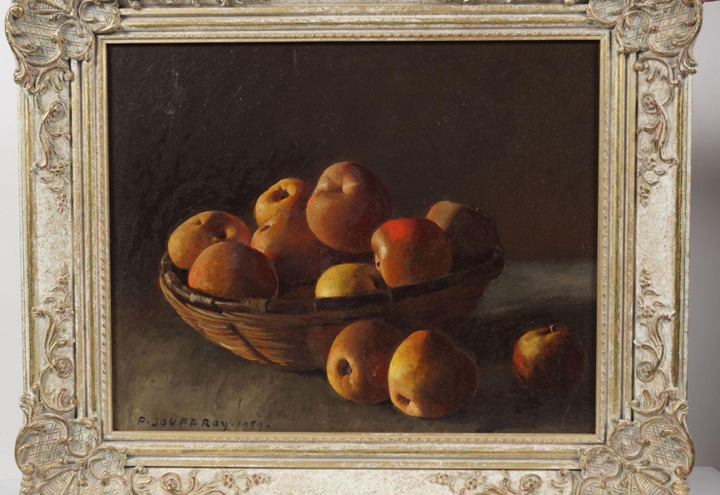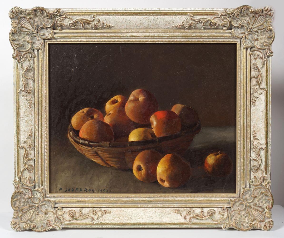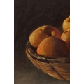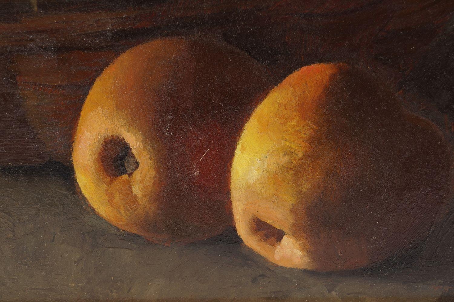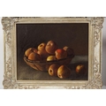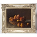Still life of fruit. Signed oil on board. Dated 1959. Enclosed in a gilt frame. 40 x 52 cm.