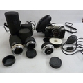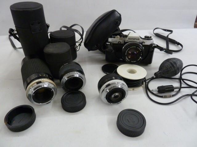 Olympus10 camera, cased, a Hoyer HMC Zoom 80-200mm 1:4 lens no.331954, a Hoyer Auto Teleconverter 3x cased and a Hoyer HMC Wide-Auto lens no.213520 cased, in carrying case
