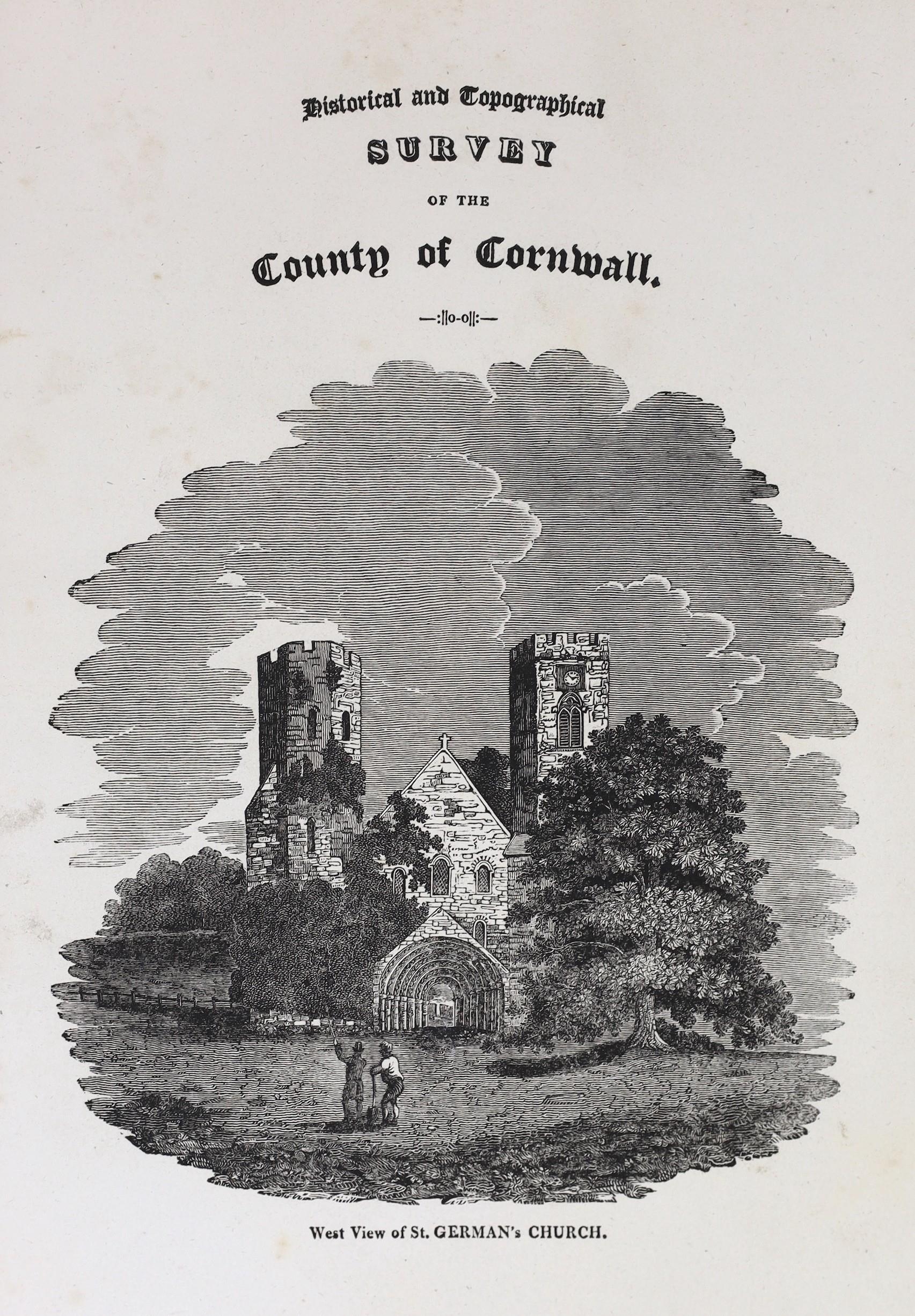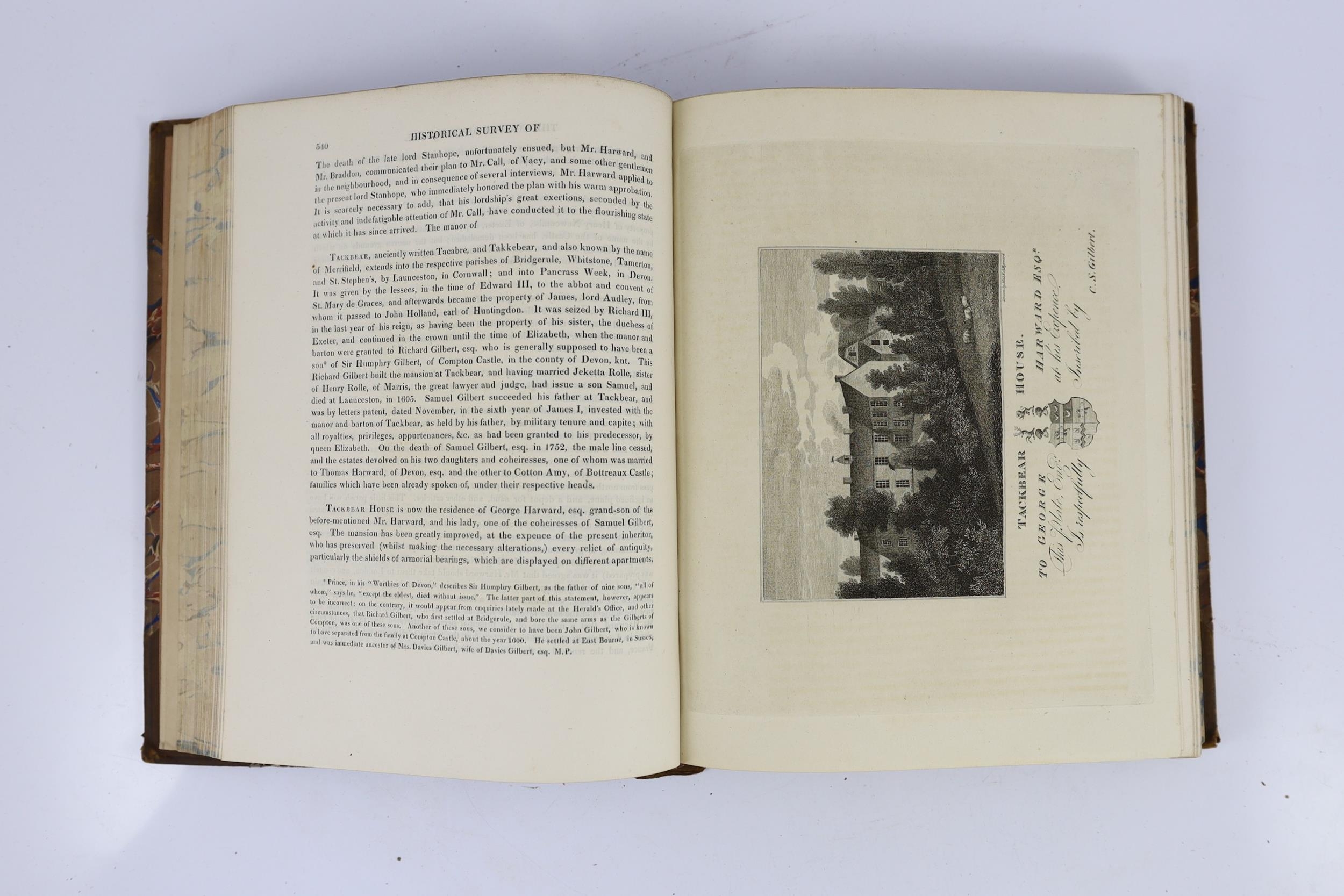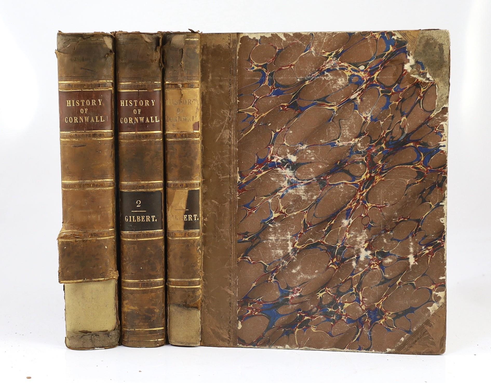 ° ° CORNWALL: Gilbert, C.S. - An Historical Survey of the County of Cornwall: to which is added, a Complete Heraldry ... 2 vols. (in 3). engraved pictorial and printed titles and additional pictorial title (vol.1), printed title (vol.2), engraved dedication, 71 (ex 72) plates (incl. d-page chart), 2 folded tables and engraved text illus.; contemp, half calf and marbled boards, gilt-ruled and panelled spines with red and blck labels, marbled edges. 4to. Plymouth - Dock & London, 1817-20 (3)