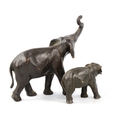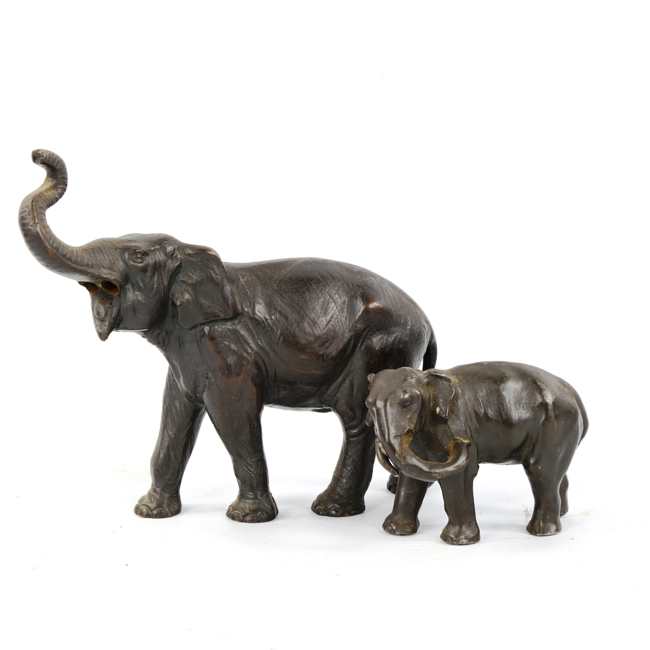 2 patinated bronze elephant sculptures, largest length 14cm (2)