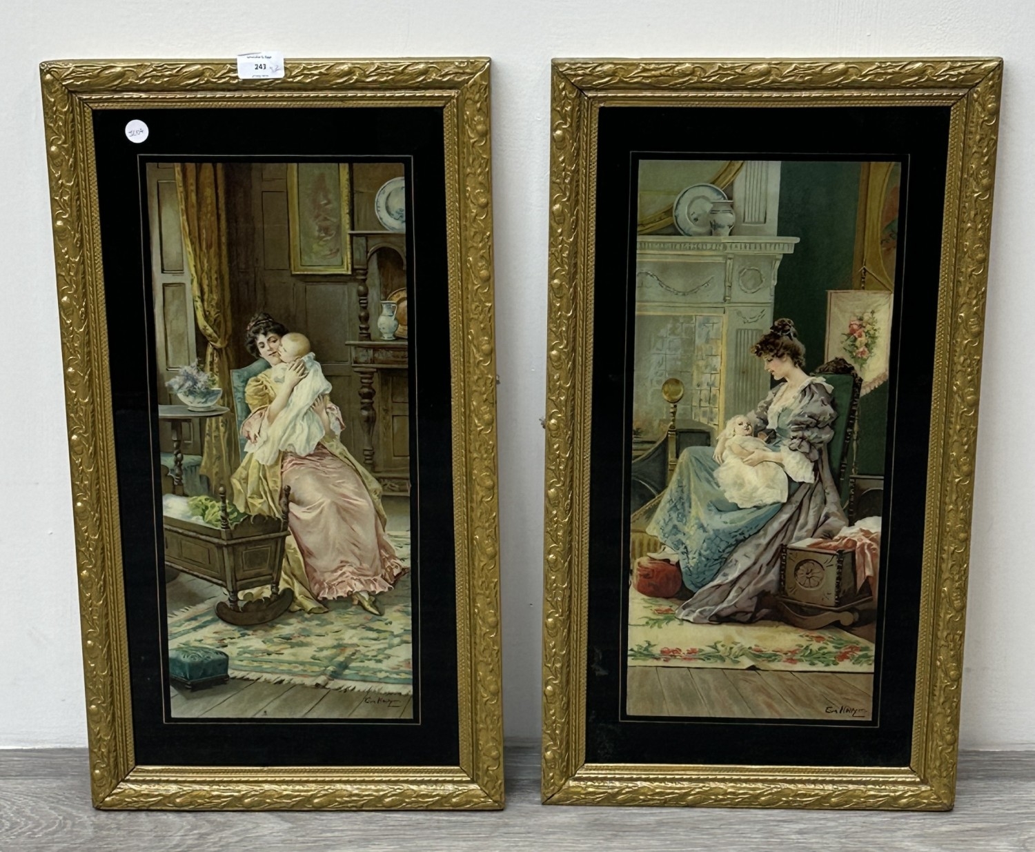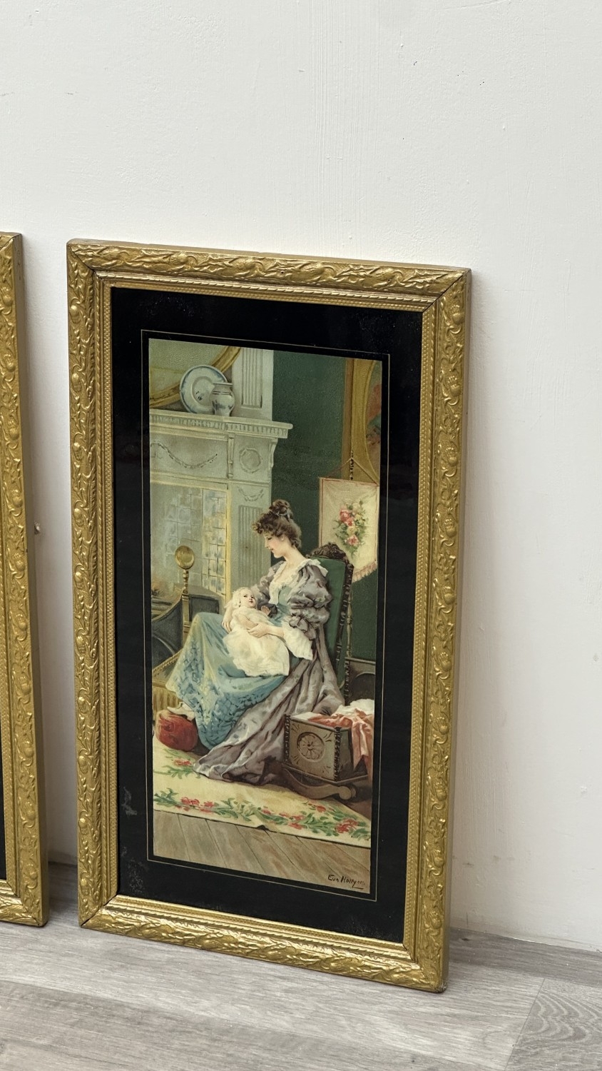 Two late 19th/early 20th century gilt framed Eva Hollyer prints depicting mother and child - approx. 67cm high x 37cm wide