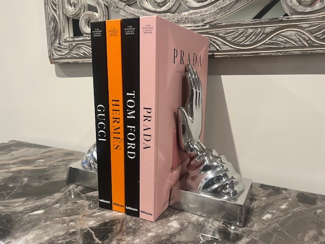 BOXED NEW MATCHING PAIR OF NICKEL BOOKENDS