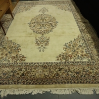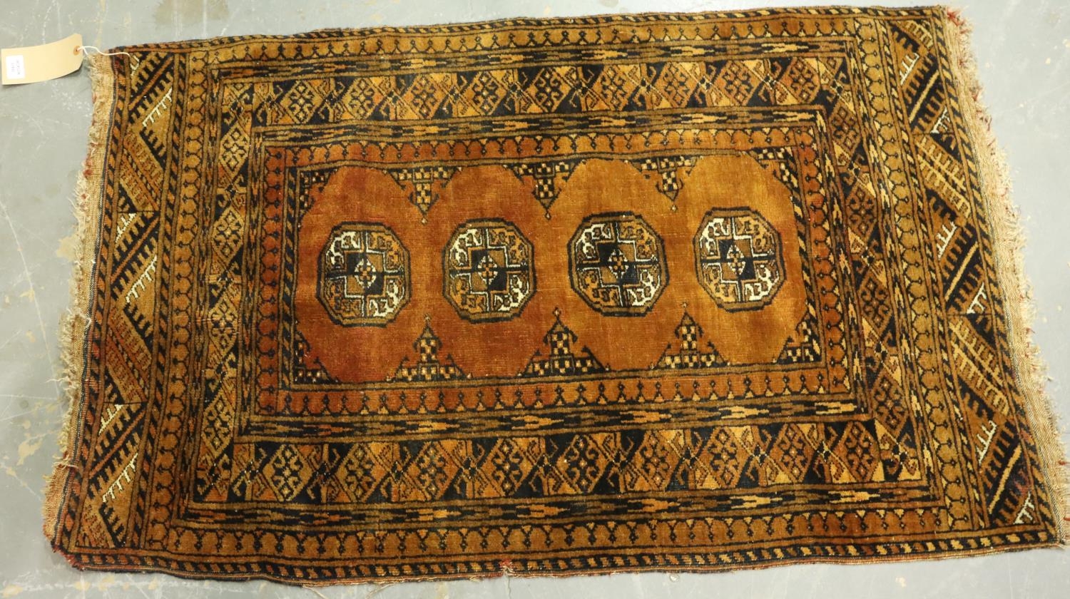 Antique silk brown ground rug, 120 x 75 cm. Not available for in-house P&P, contact Paul O'Hea at Mailboxes on 01925 659133