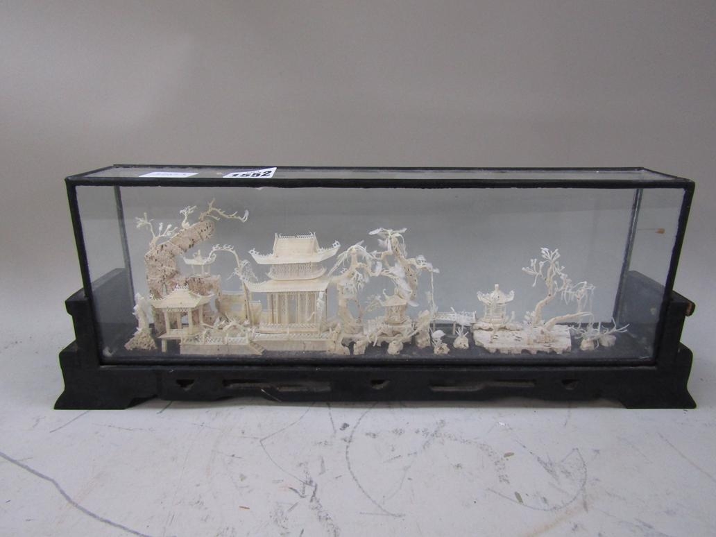 LATE 19c ORIENTAL BLEACHED CORK CASED DISPLAY OF A VILLAGE SCENE